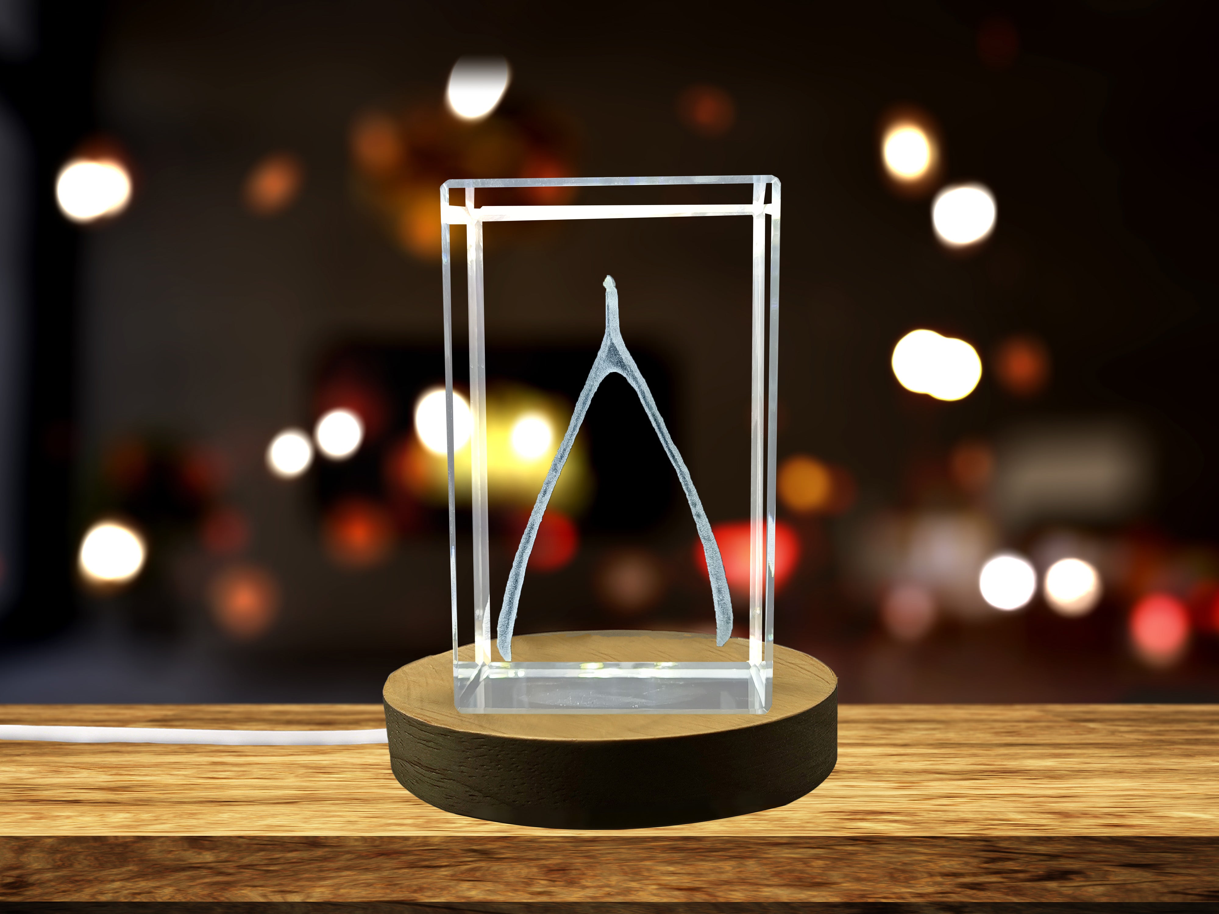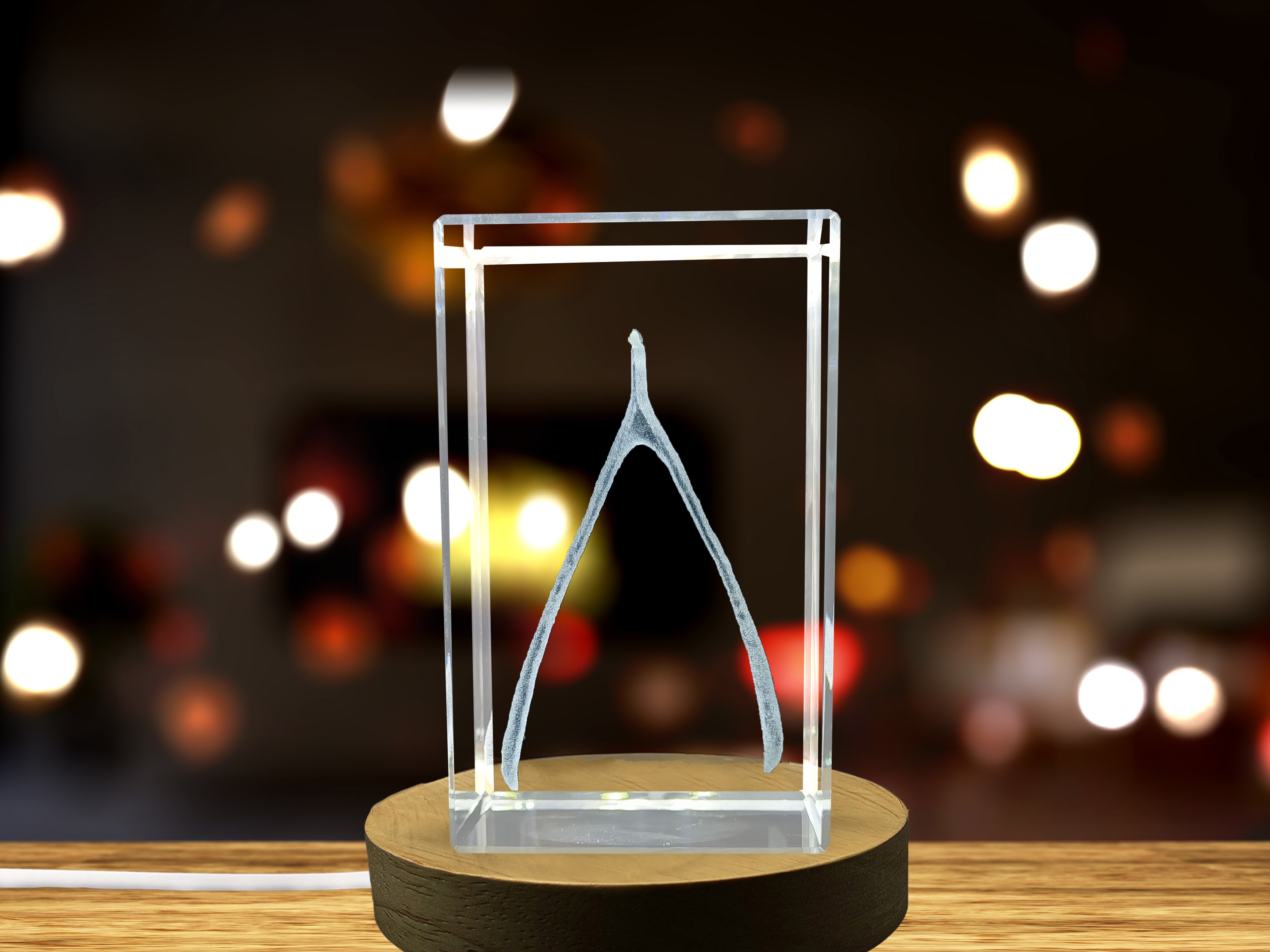 Recognition 3D Engraved Crystal Wishbone Lucky Charm Gift with LED Base Light and Keepsake Box