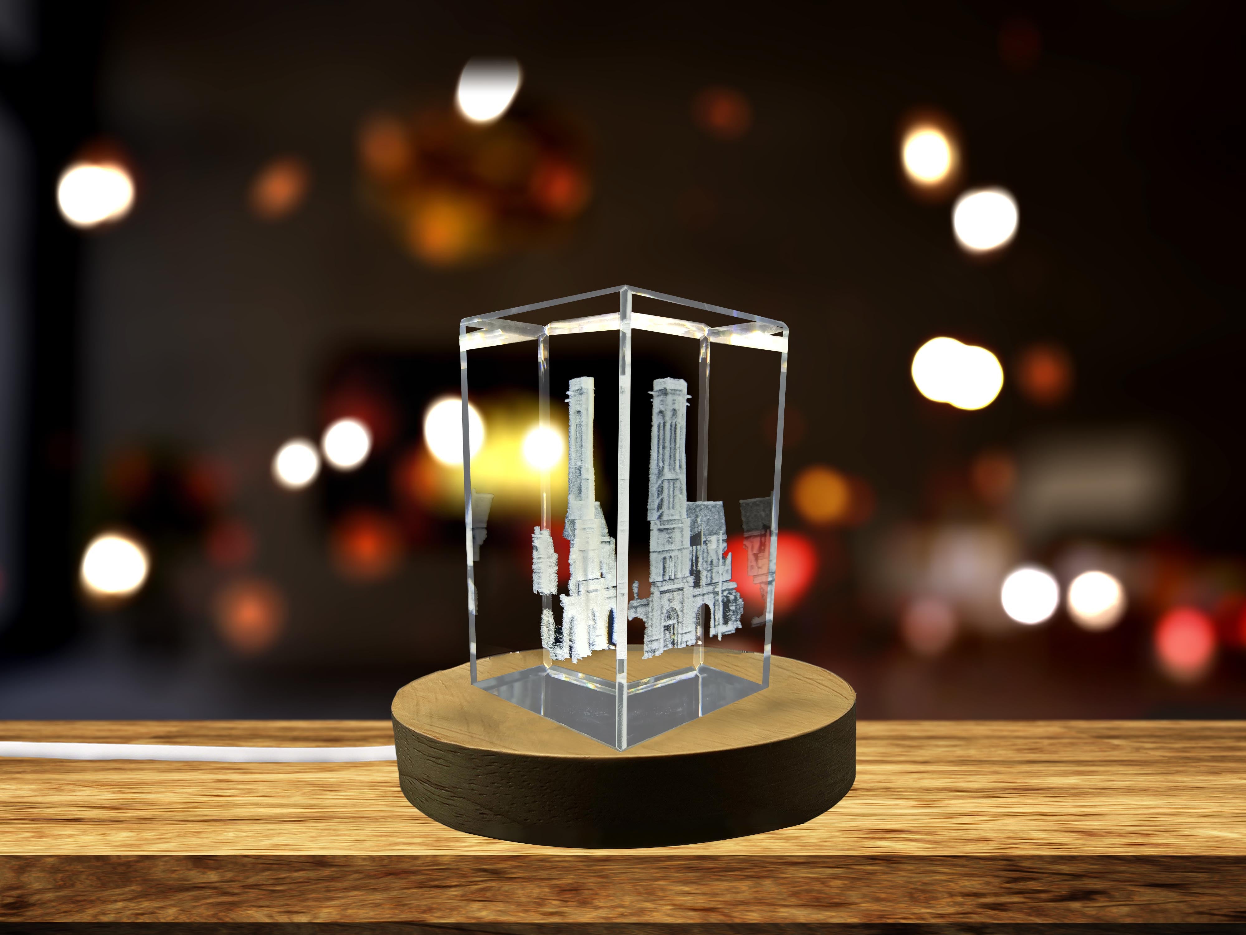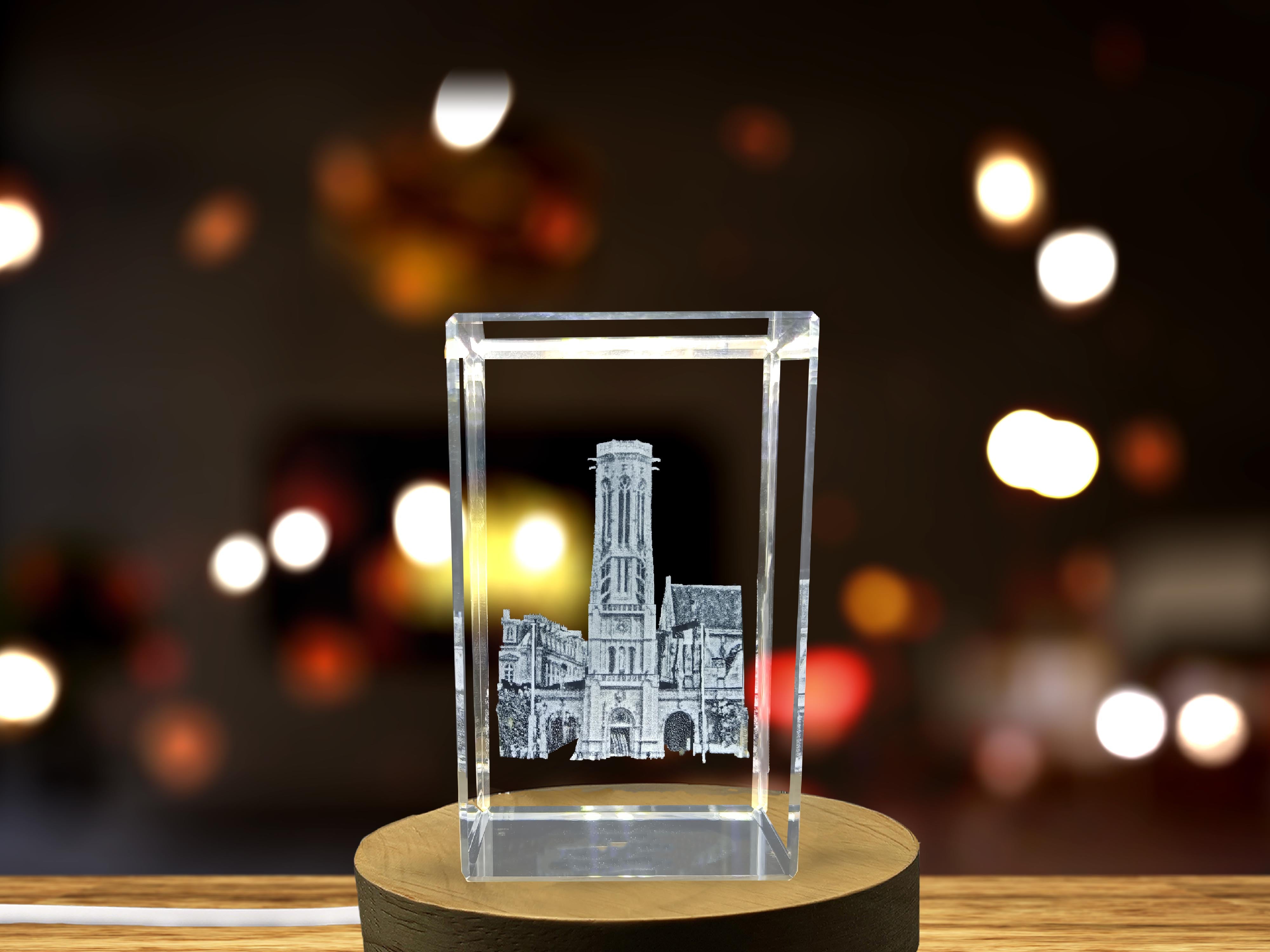 Belfry Of City Hall Paris 3D Crystal Trophy Award Recognition - Architectural Masterpiece With LED Base