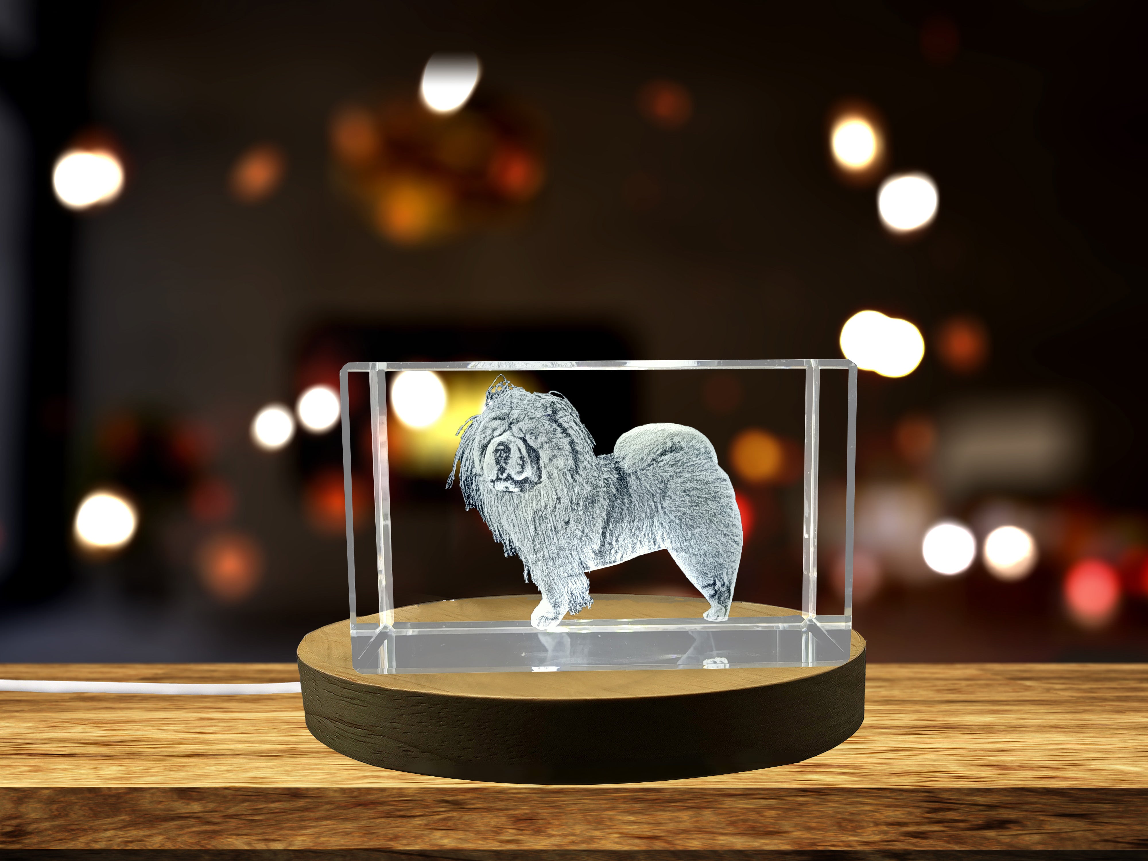 Chow-Chow Recognition: Exquisite 3D Engraved Crystal Art with LED Base, Made in Canada