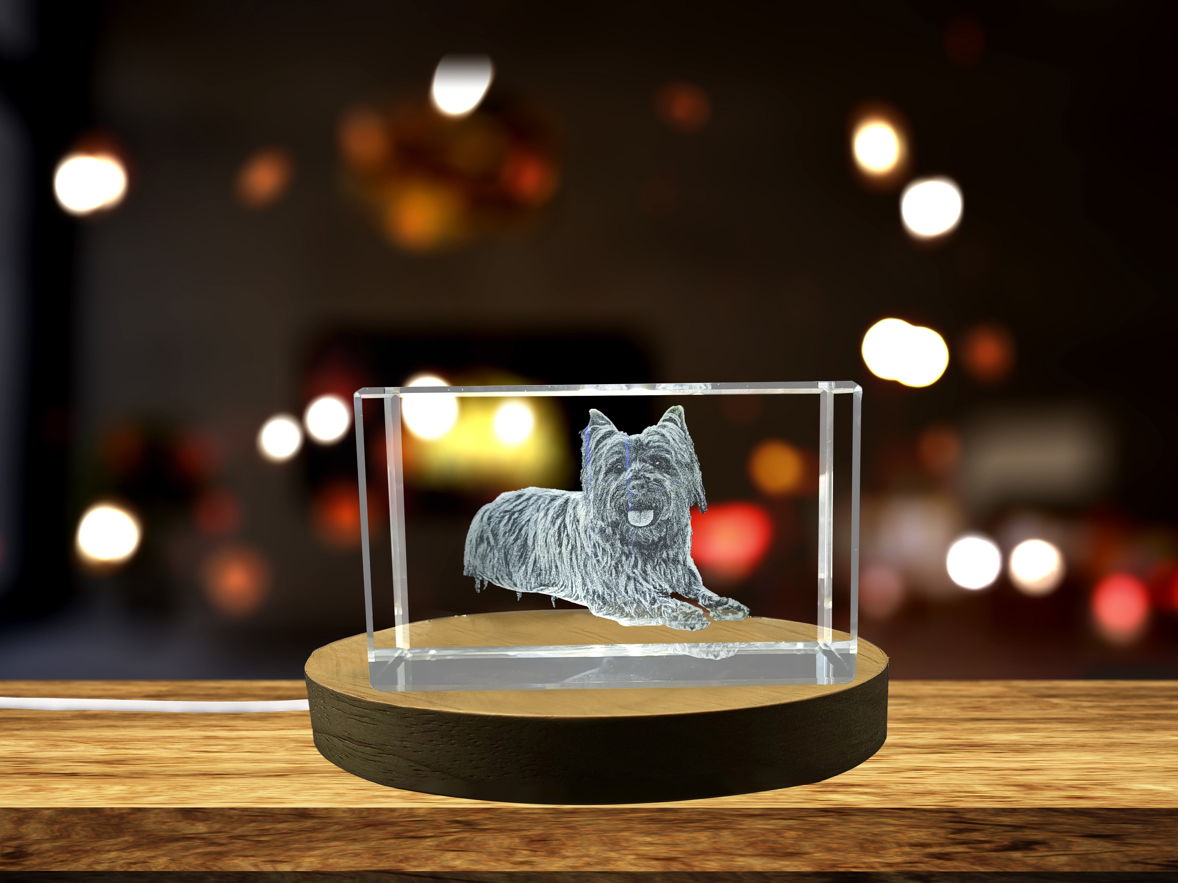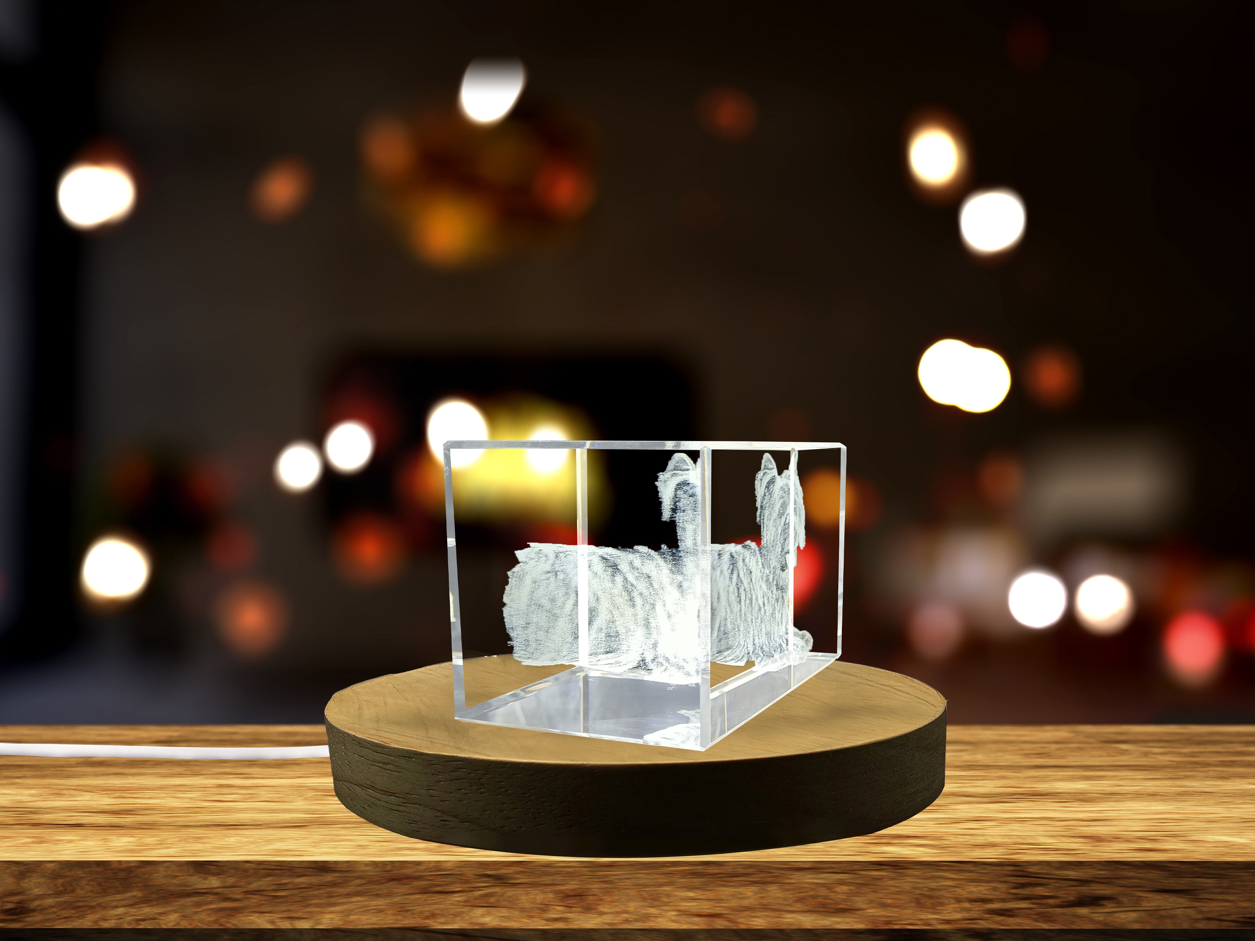 Recognition 3D Engraved Crystal Cairn Terrier Figurine with Free LED Base Light