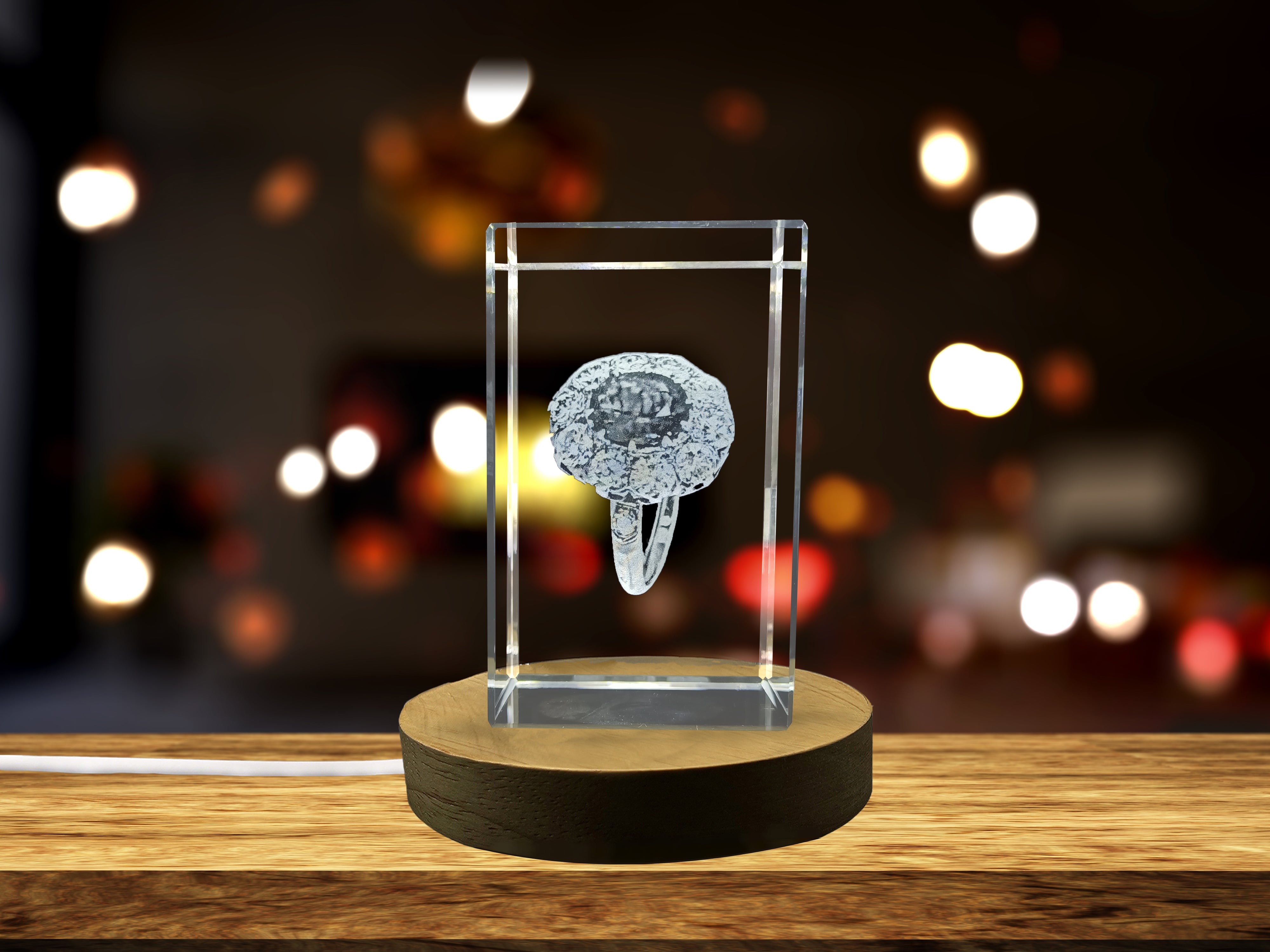 Recognition Beautifully 3D Engraved Crystal Cocktail Ring Keepsake Gift with Free LED Base Light