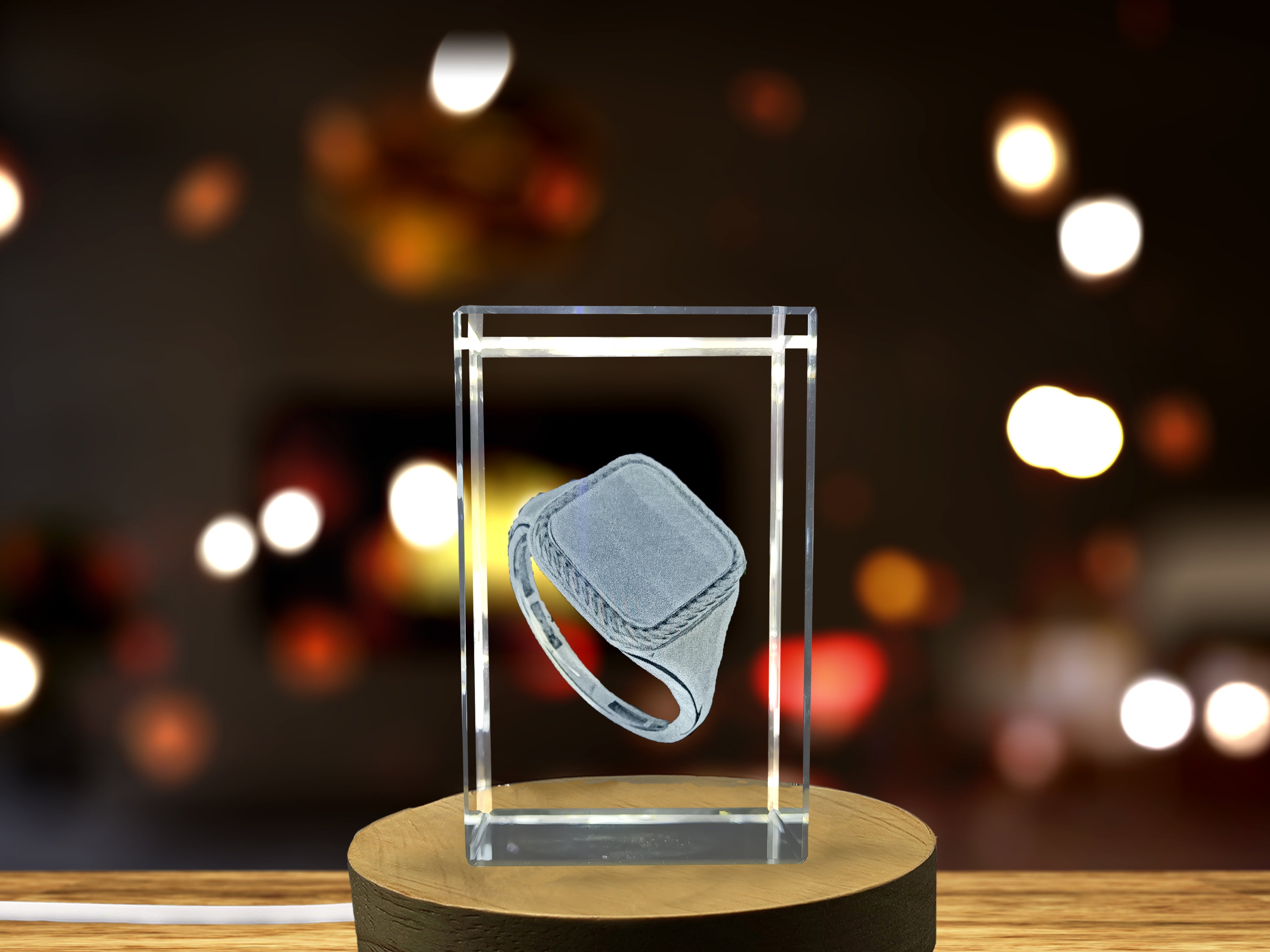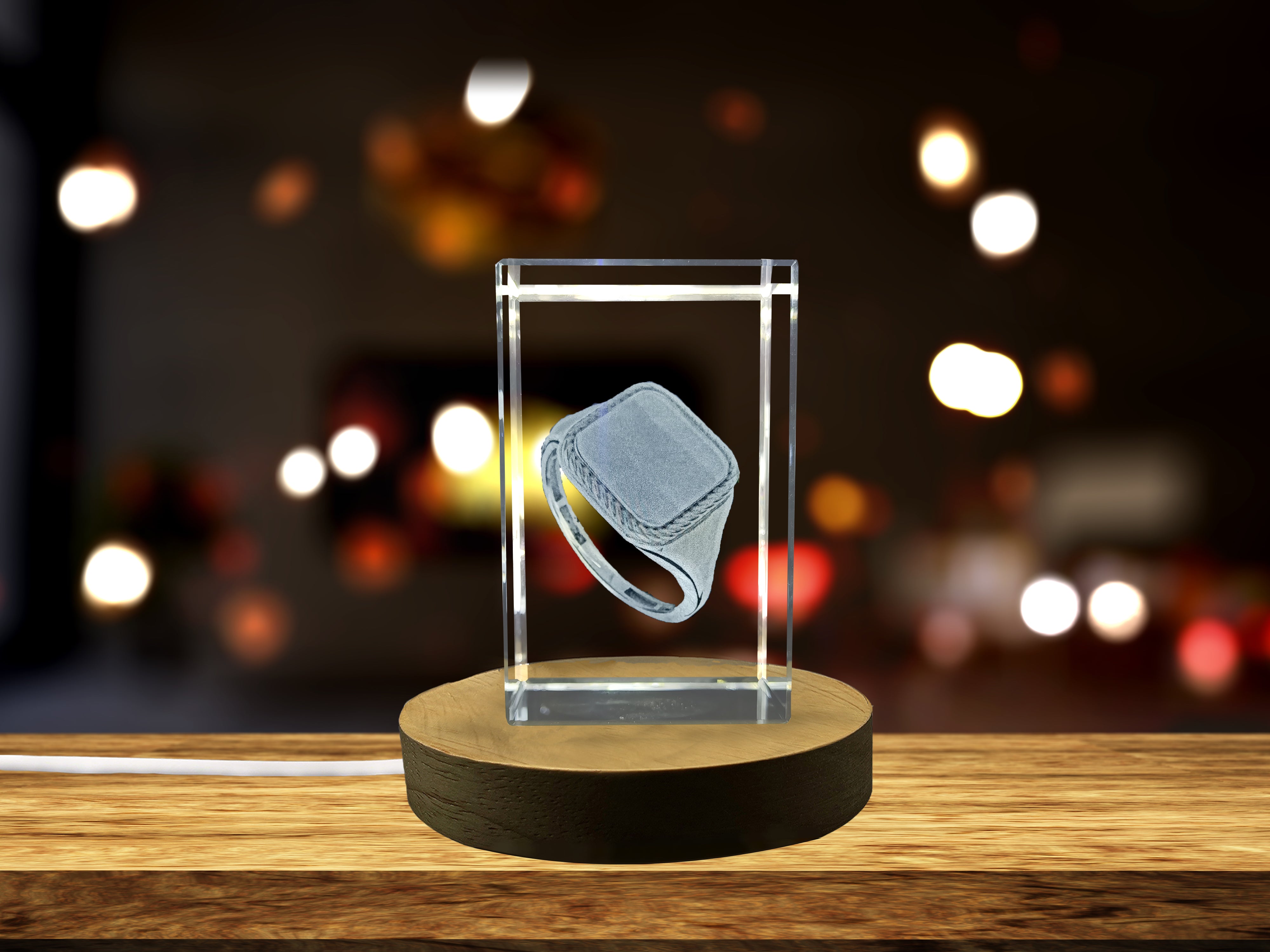 Recognition Classic Emblem 3D Engraved Crystal Signet Ring with LED Base Light