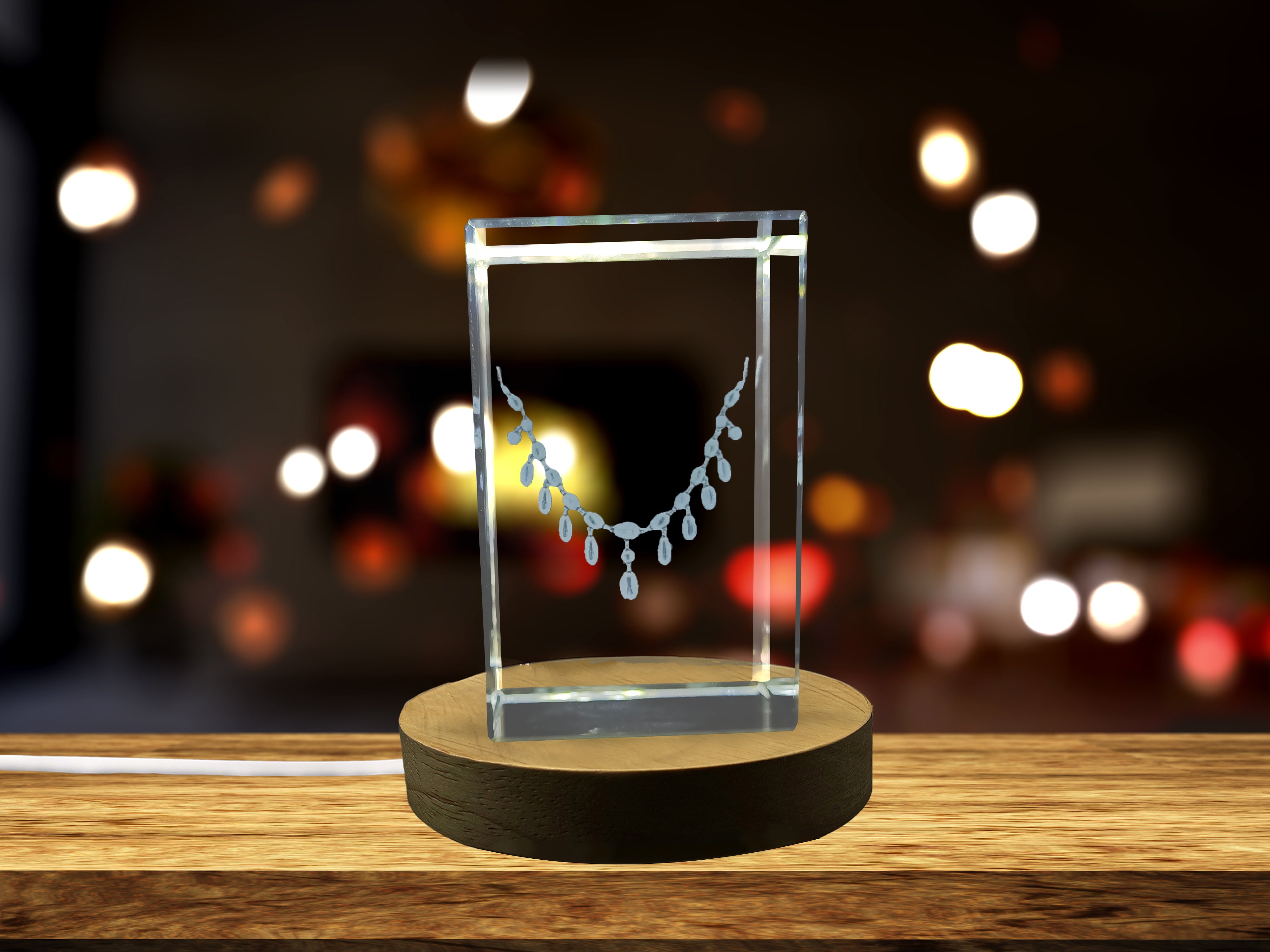 This necklace not only dazzles on its own but also comes with a complimentary LED base light. This plug-in feature transforms your necklace into a stunning display, highlighted beautifully, perfect for showcasing in your jewelry collection or gifting to a loved one.