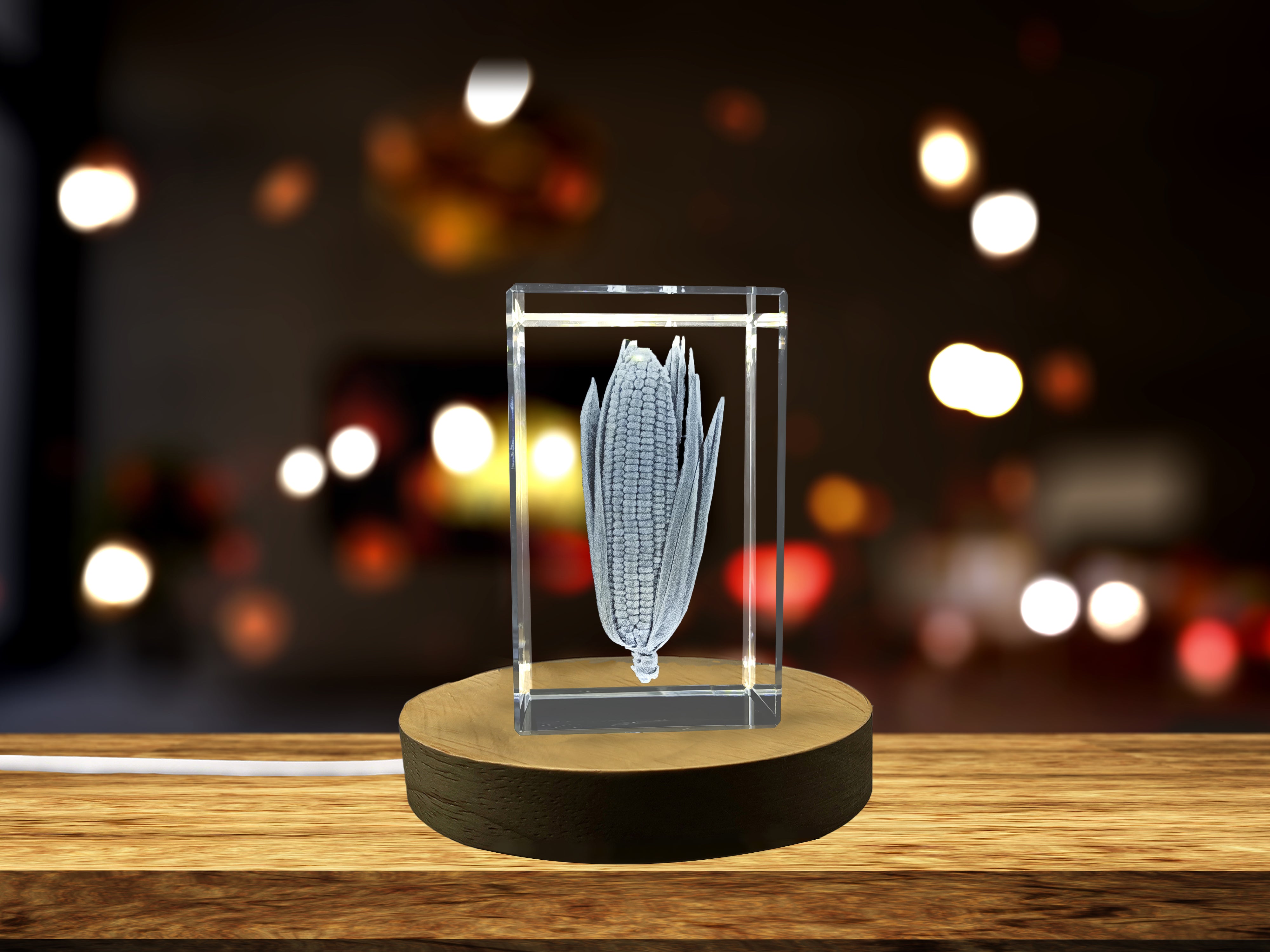 Recognition Elegant 3D Engraved Crystal Corn Gift with LED Base, Made in Canada