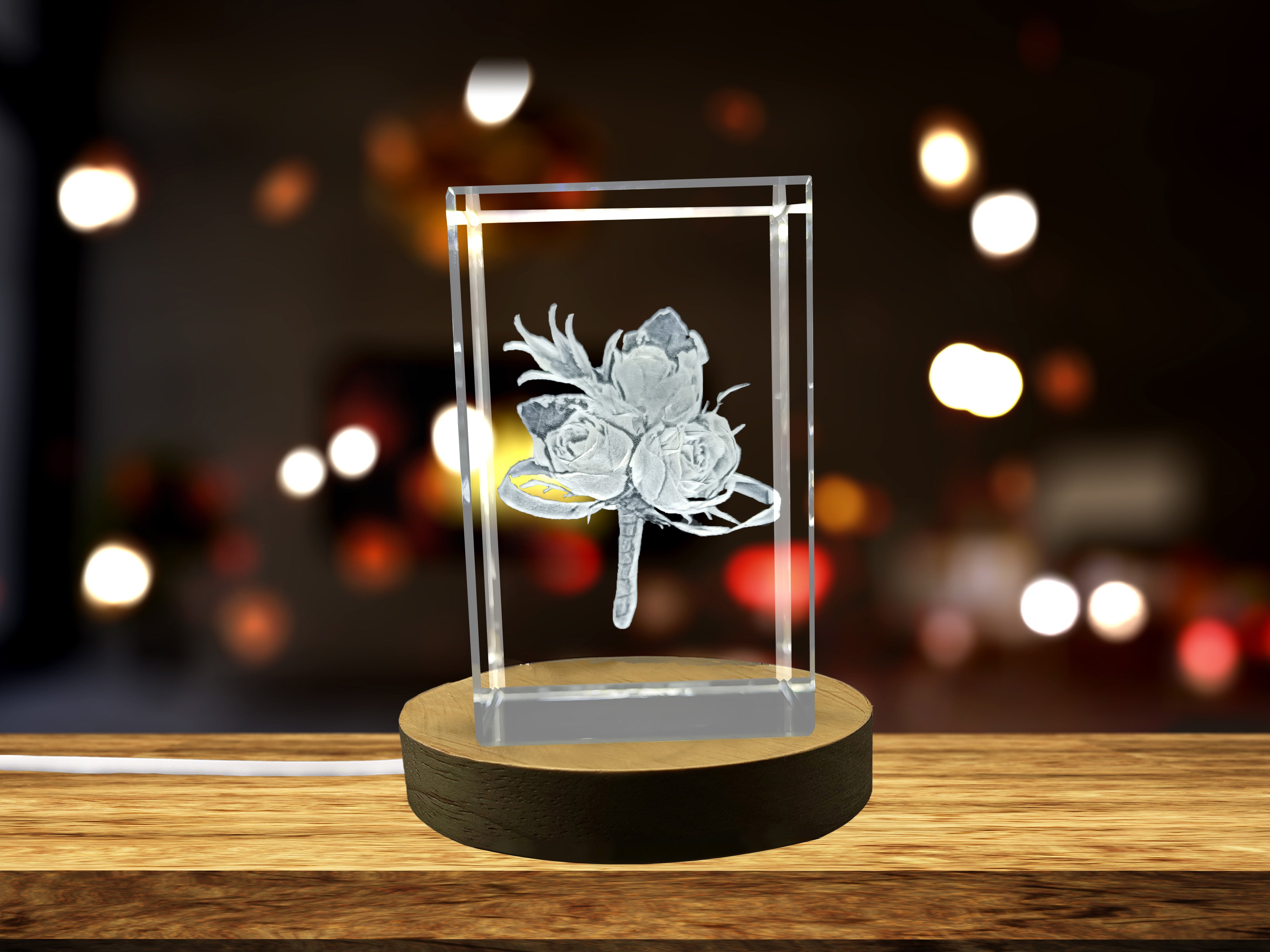 Dapper Detail Recognition: 3D Engraved Crystal Men's Boutonniere with LED Base Light