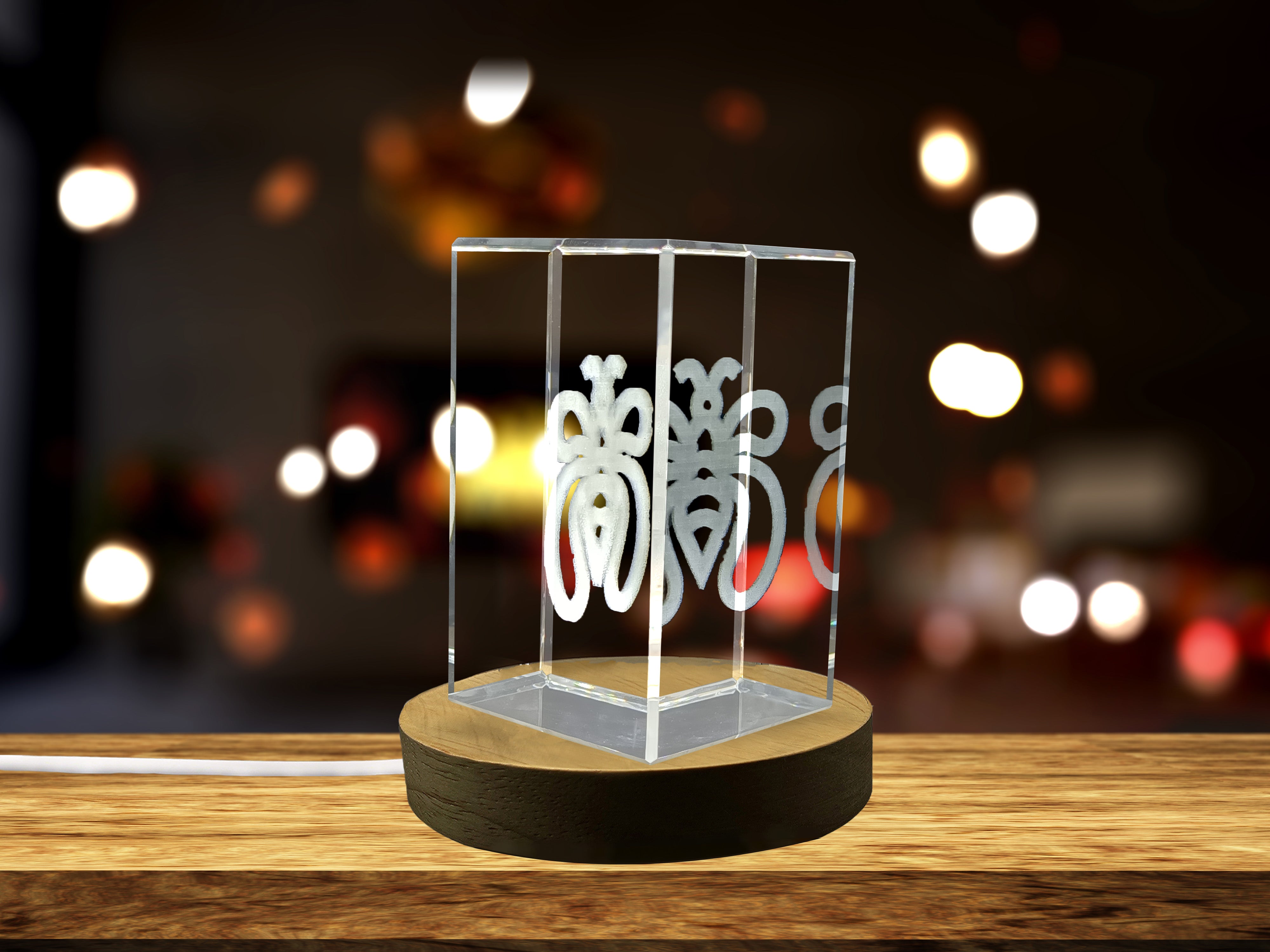 Fafanto Adinkra Crystal Trophy Award - Recognition Gift with 3D Engraving & LED Base