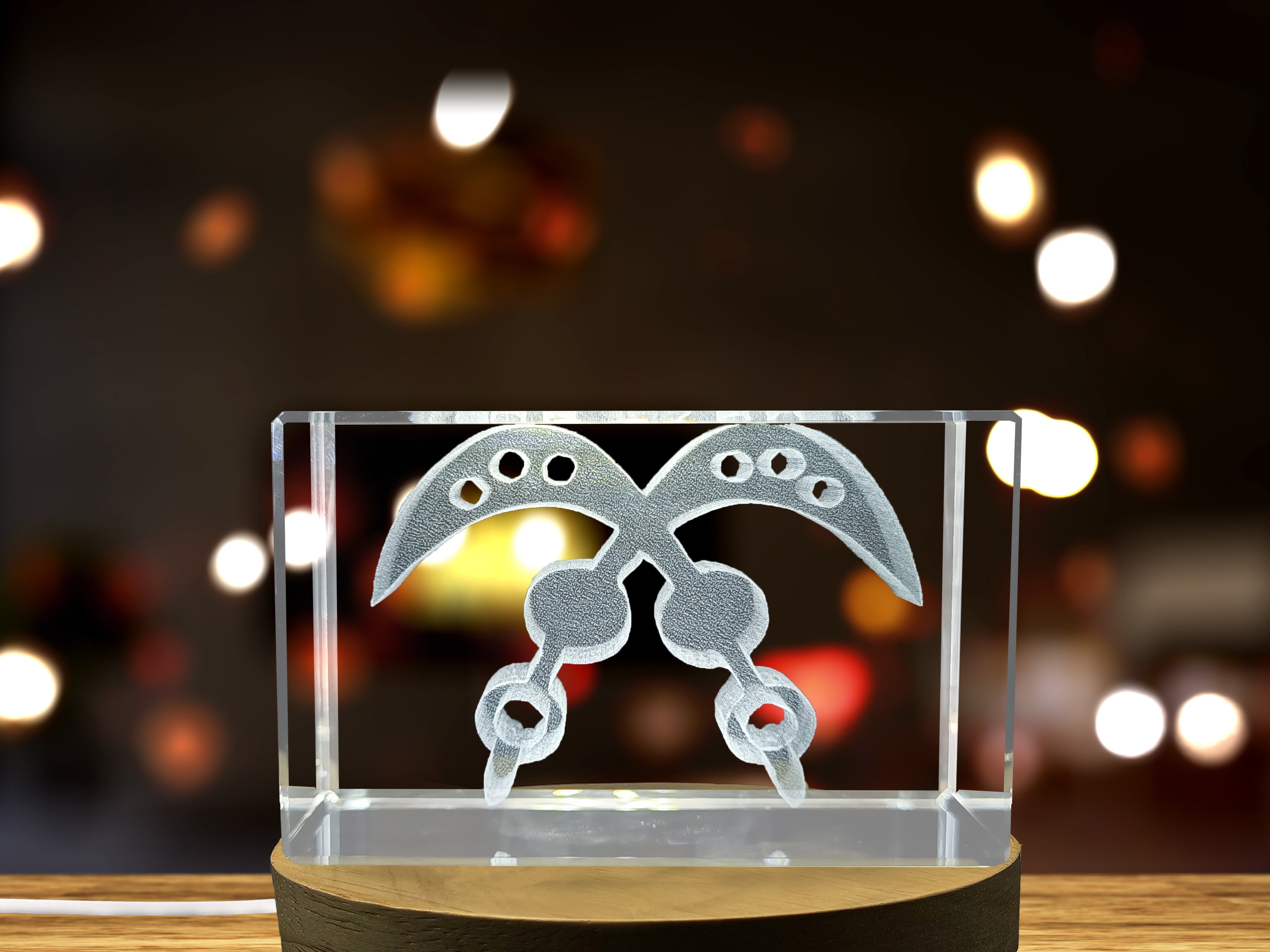 Recognition Strength And Courage Trophy Award - 3D Engraved Crystal Akofena African Symbol With LED Base