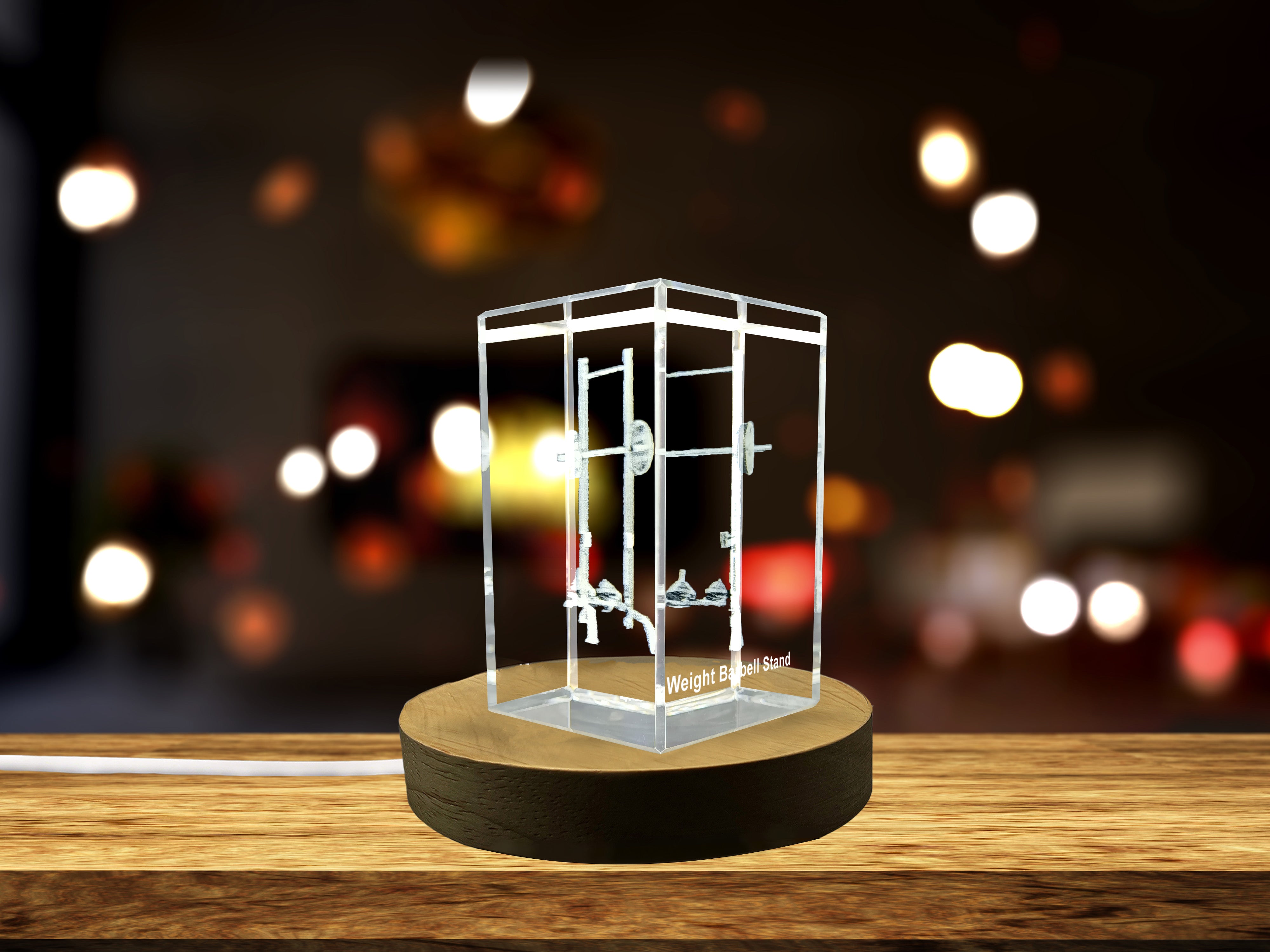 This weight barbell stand captures the essence of your dedication with its precision engraving. Our expert engraver meticulously replicates the solid metal structure, including every fine detail of ridges and weights, all within a flawless transparent crystal. This attention to detail results in a magnificent artwork that not only serves as a trophy but as a symbol of excellence and perseverance.