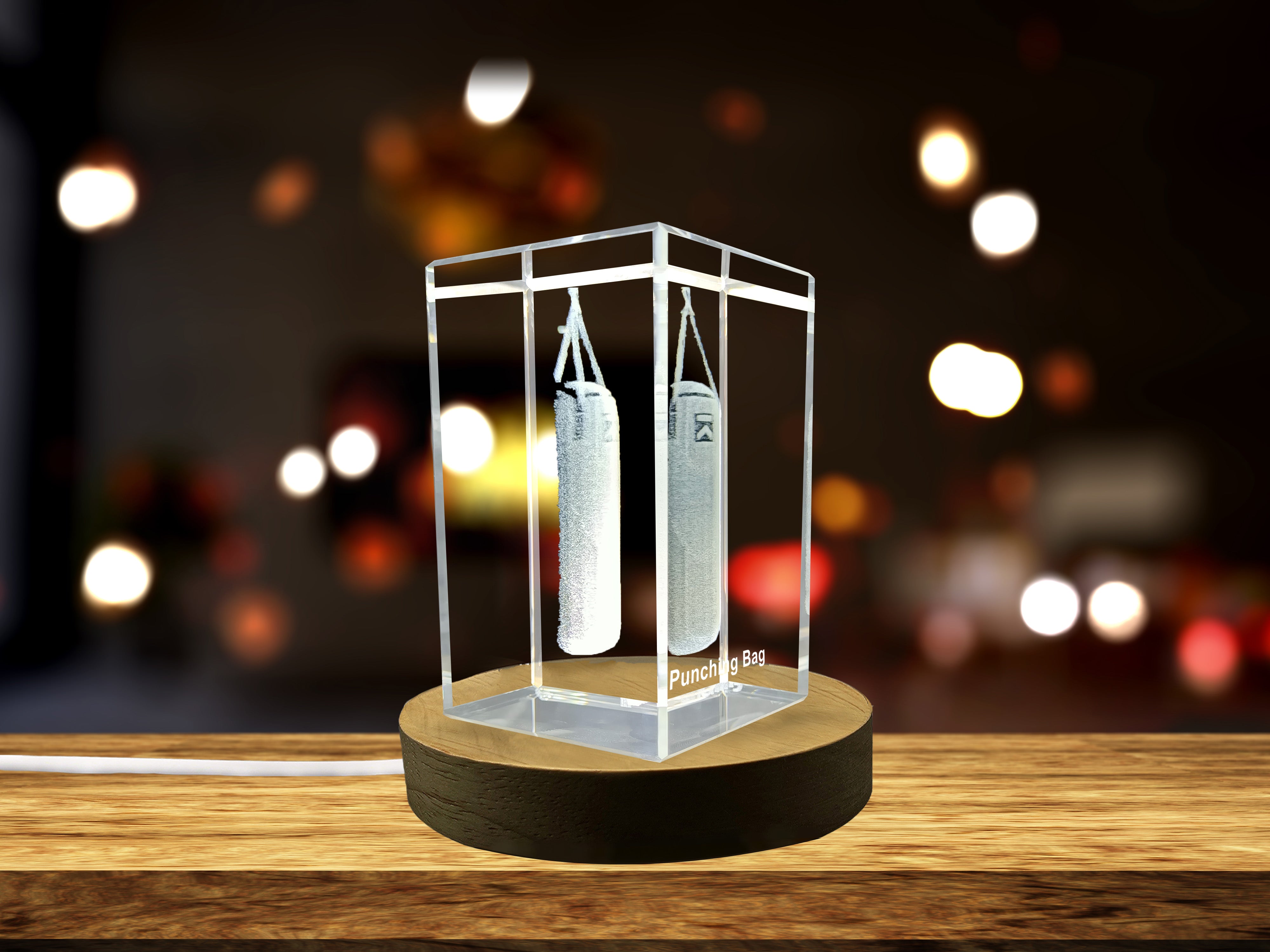 Recognition Crystal Punching Bag Sculpture - Intricately Engraved Artistry with LED Base