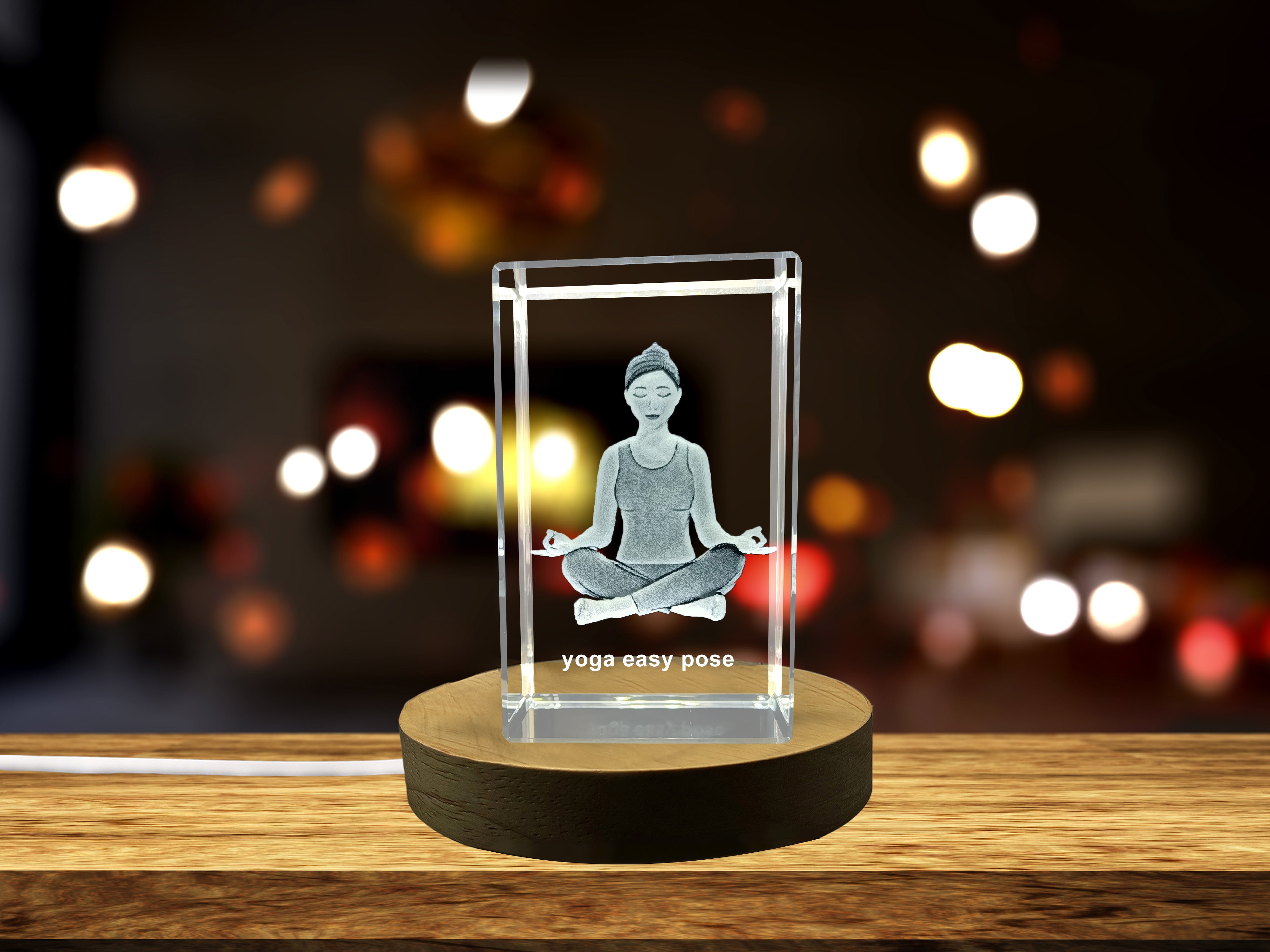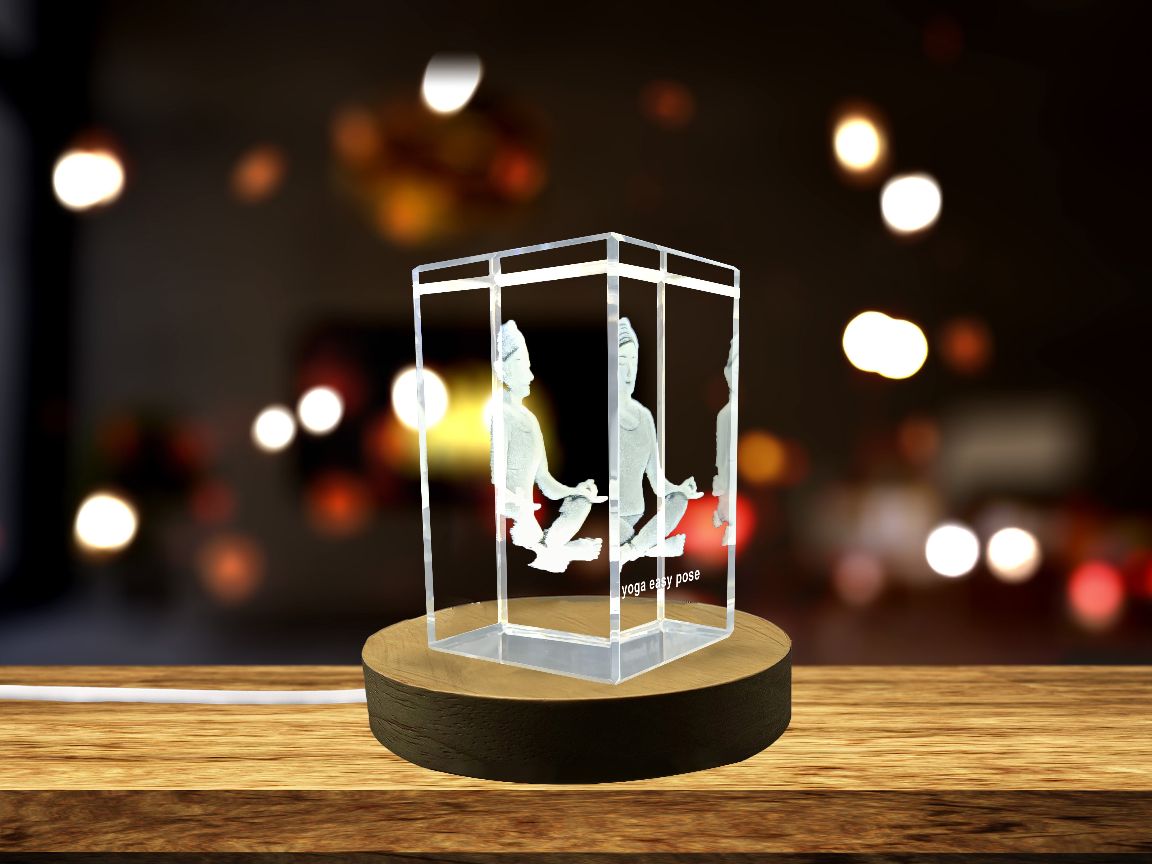 Yoga Pose Crystal Recognition - Sukhasana Meditation Statue with LED Base, Exquisite Gift Box