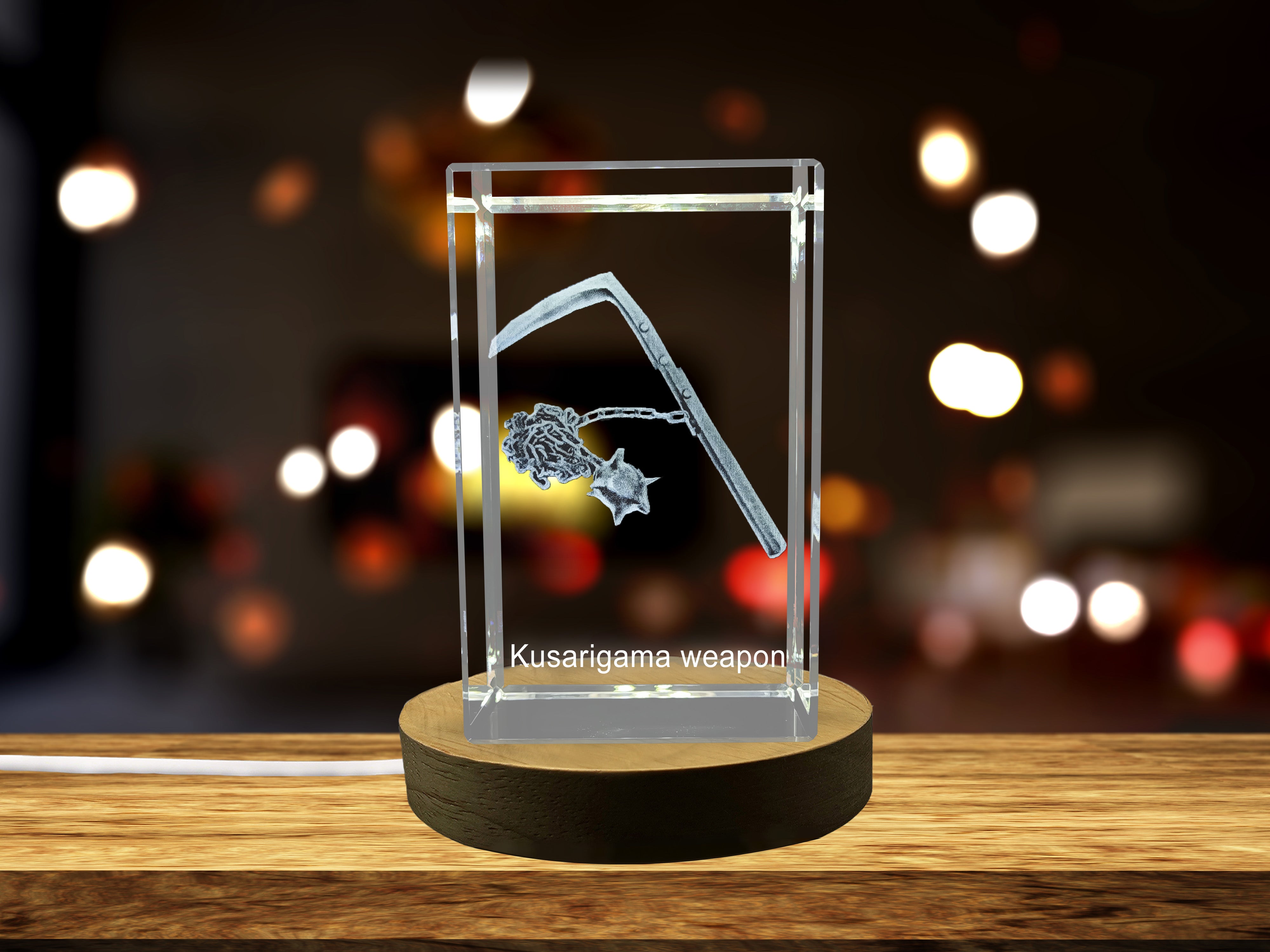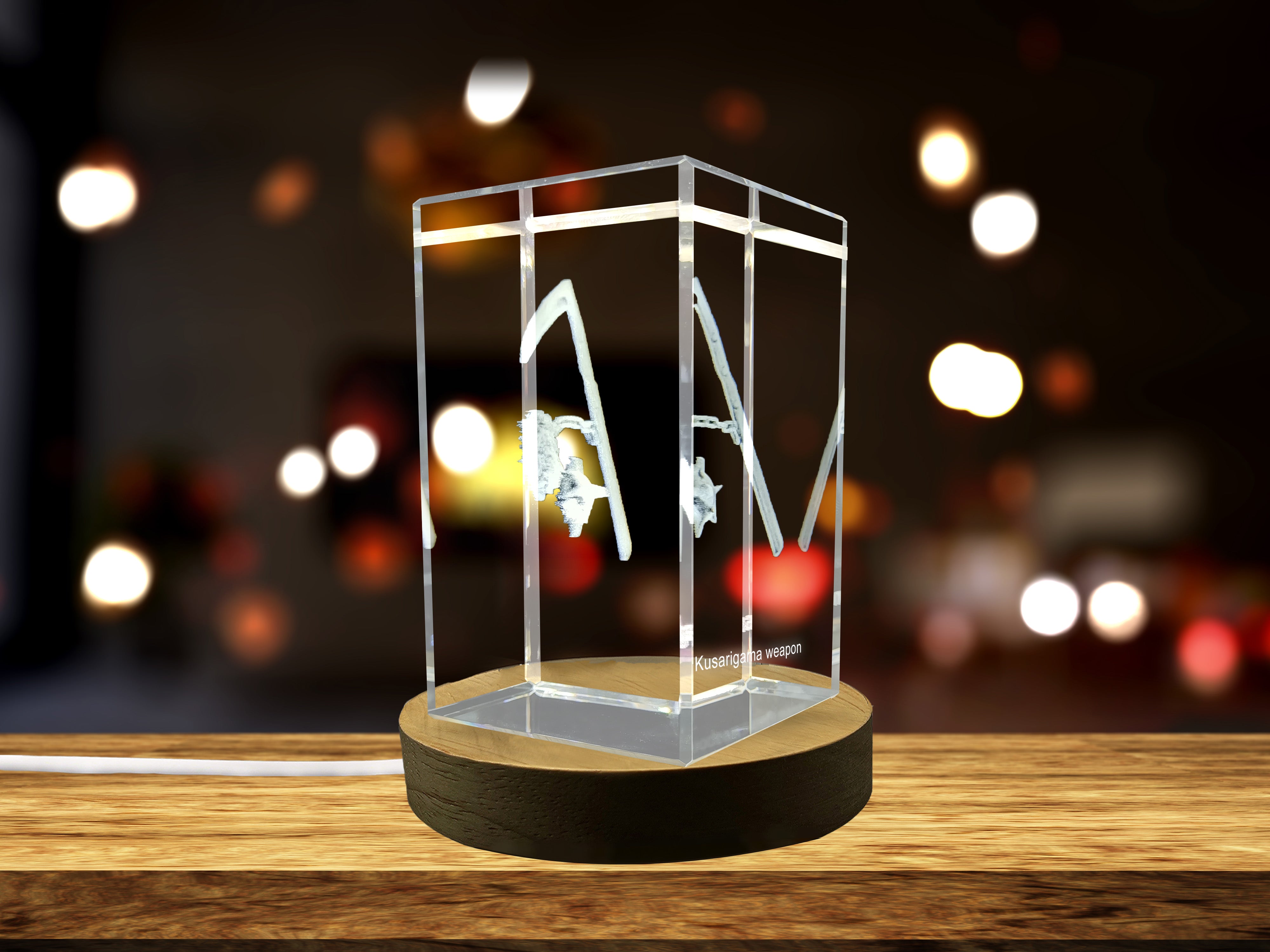 Recognition 3D Engraved Crystal Kusarigama - Exquisite Samurai Chain Weapon Replica with LED Base