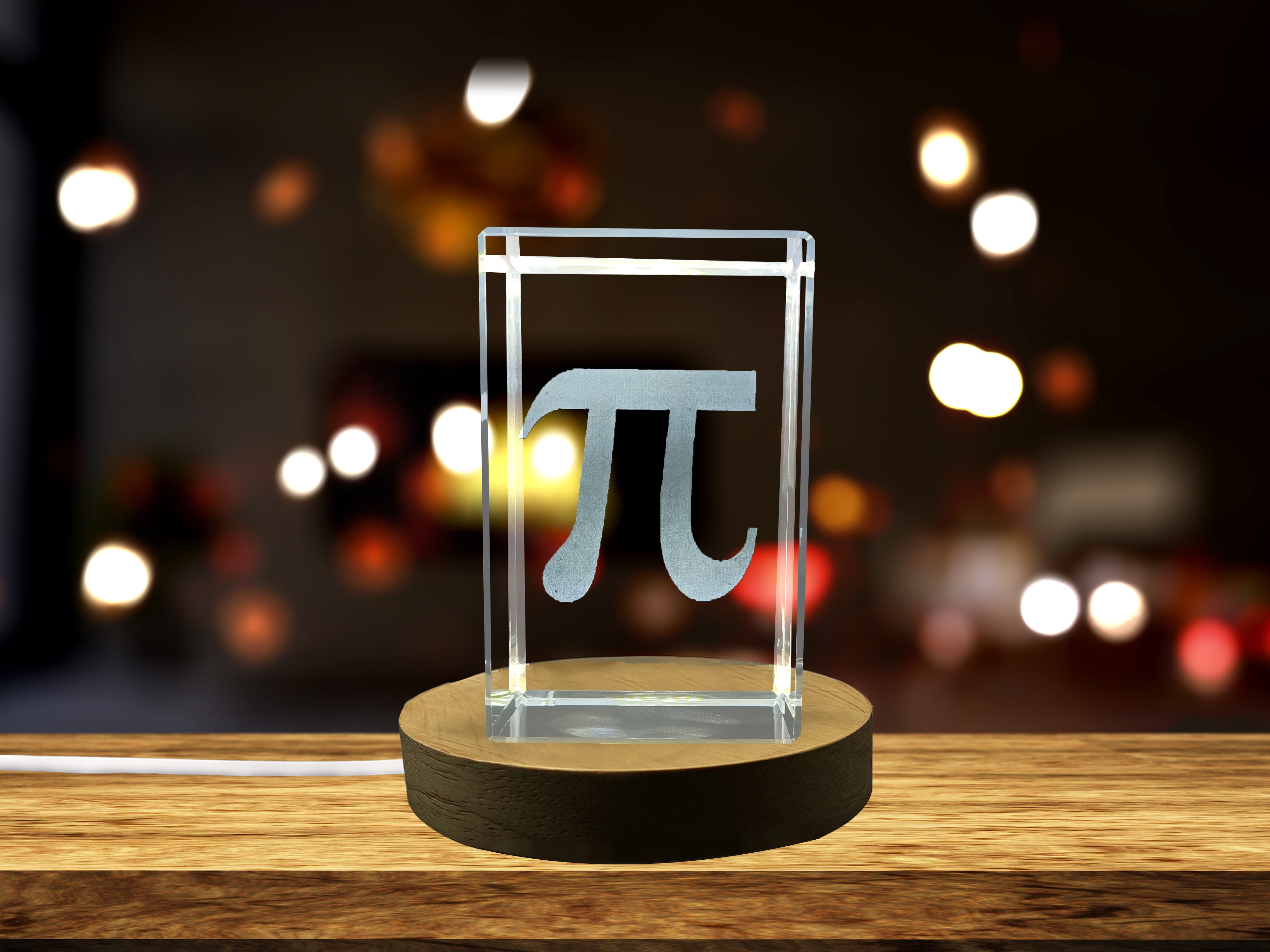 Crystal Recognition Award for Pi - Elegant Mathematical Sculpture with LED Base, Made in Canada