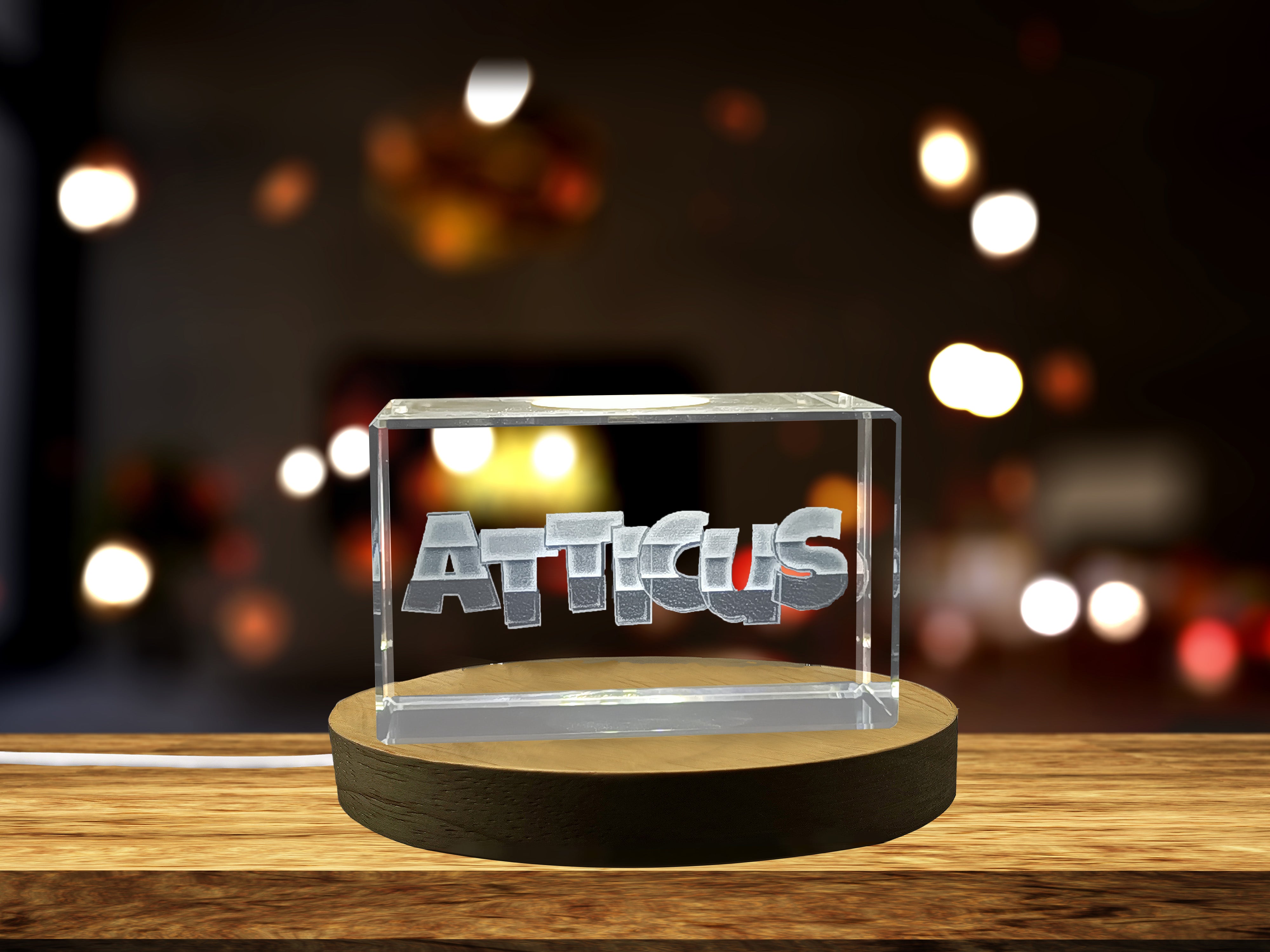 Atticus Recognition Trophy Award - Custom 3D Engraved Crystal Art with LED Base