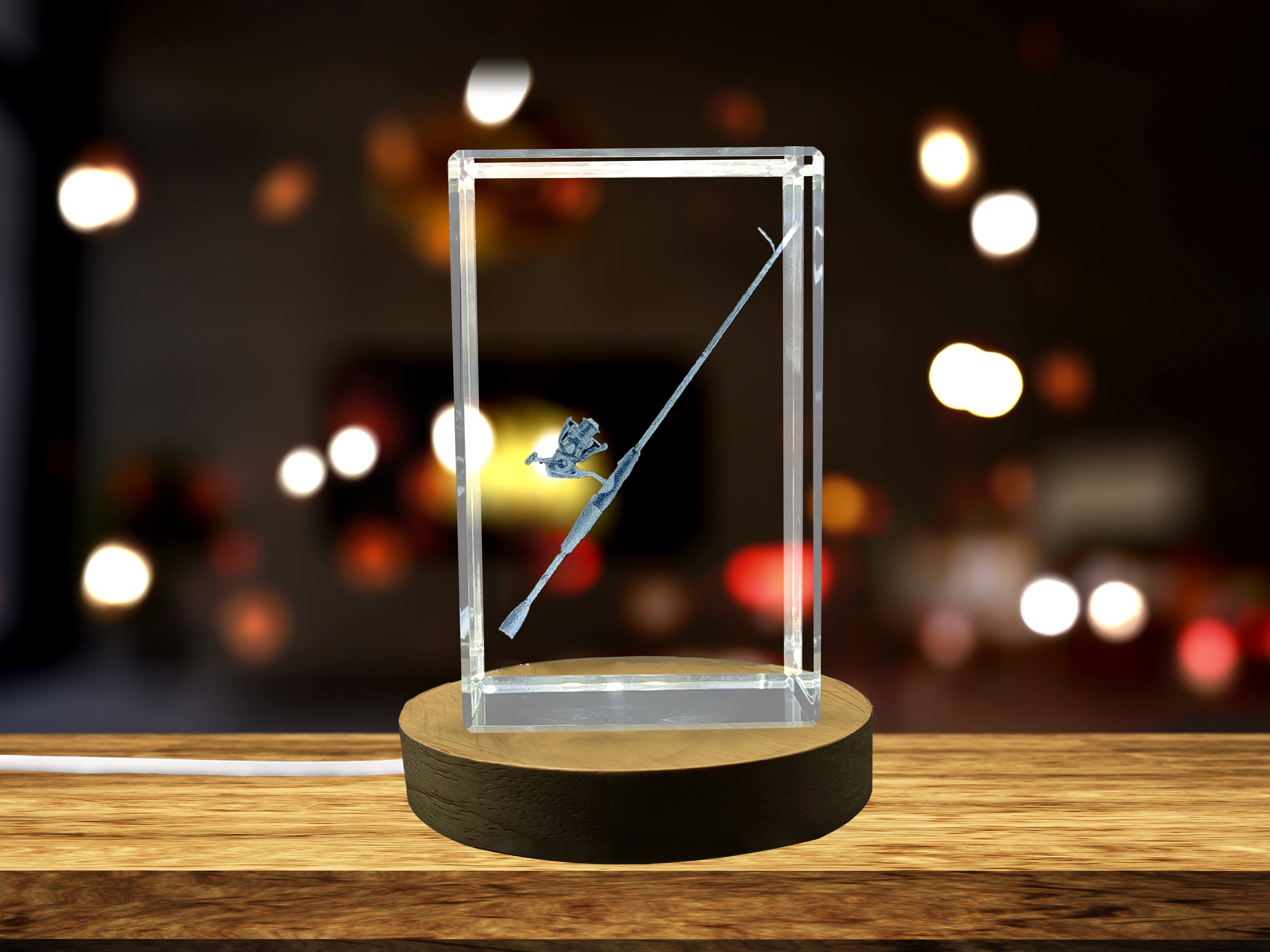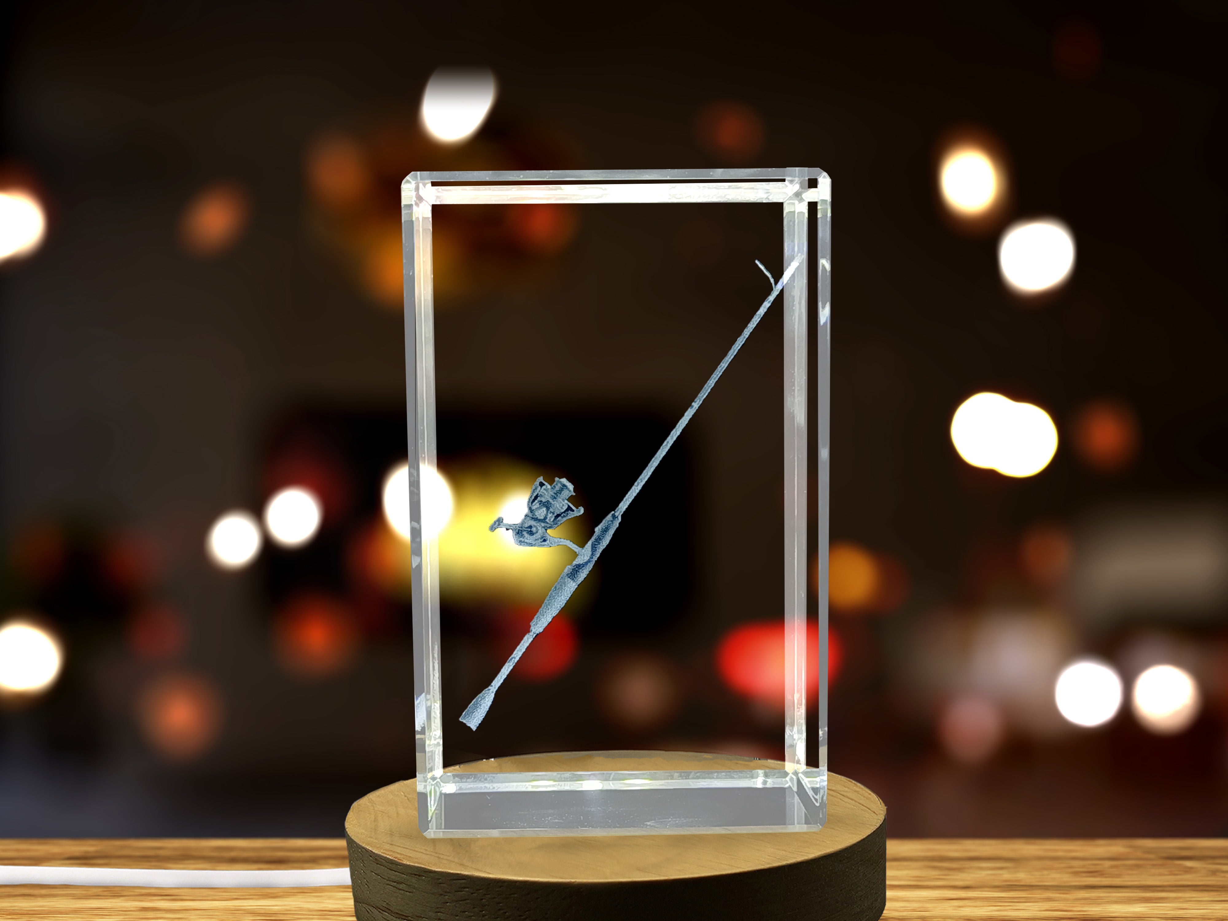 Recognition Exquisite 3D Engraved Crystal Fishing Rod Gift With Free LED Base Light