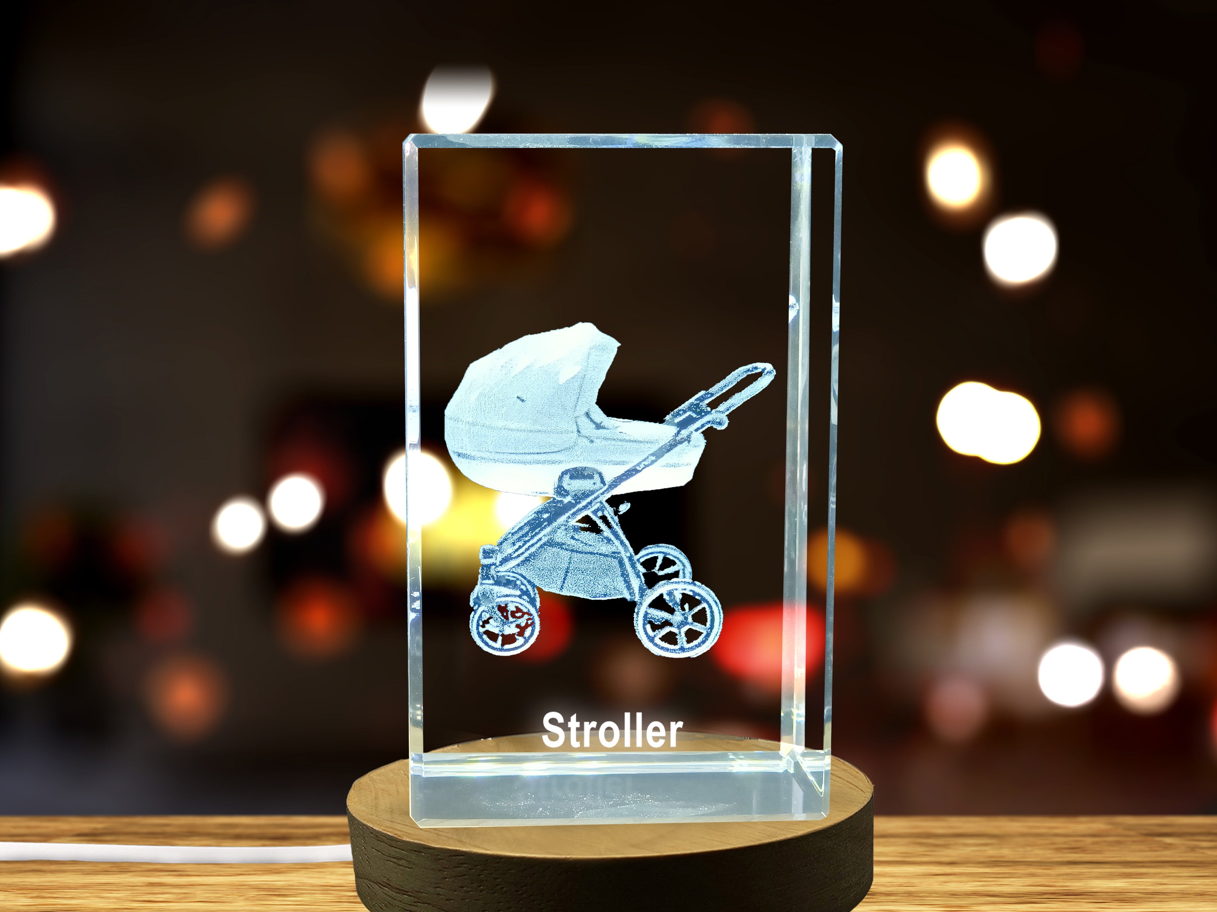 The Crystal Stroller Trophy Award comes with a FREE round LED base light, which beautifully illuminates the crystal, making it a perfect centerpiece for your home. It is not just a decorative item; it’s a symbol of love and the adventures you share with your baby. Each award is thoughtfully packaged in a keepsake gift box with a luxurious black silk inlay, making it an ideal gift for baby showers or new parents.