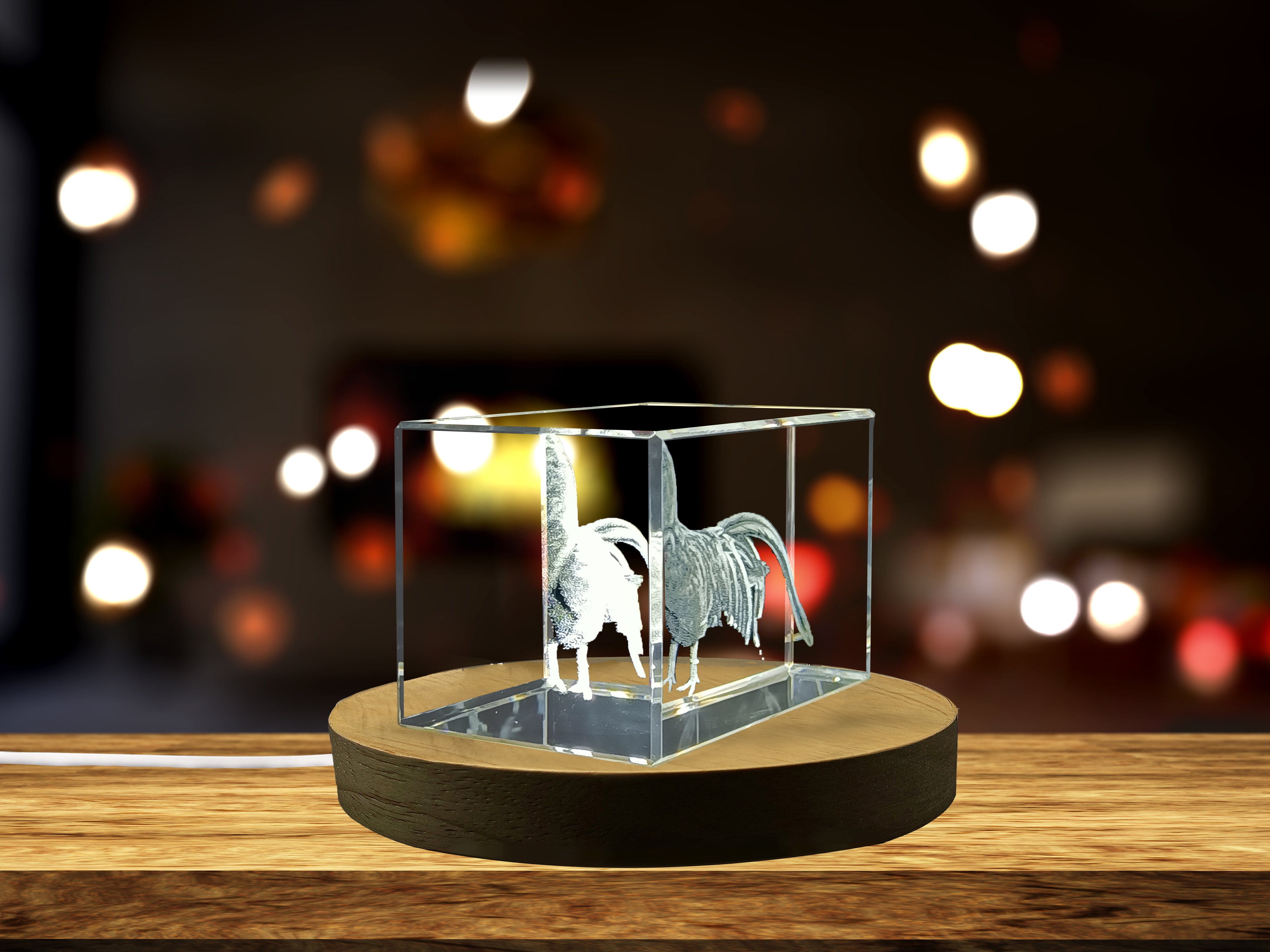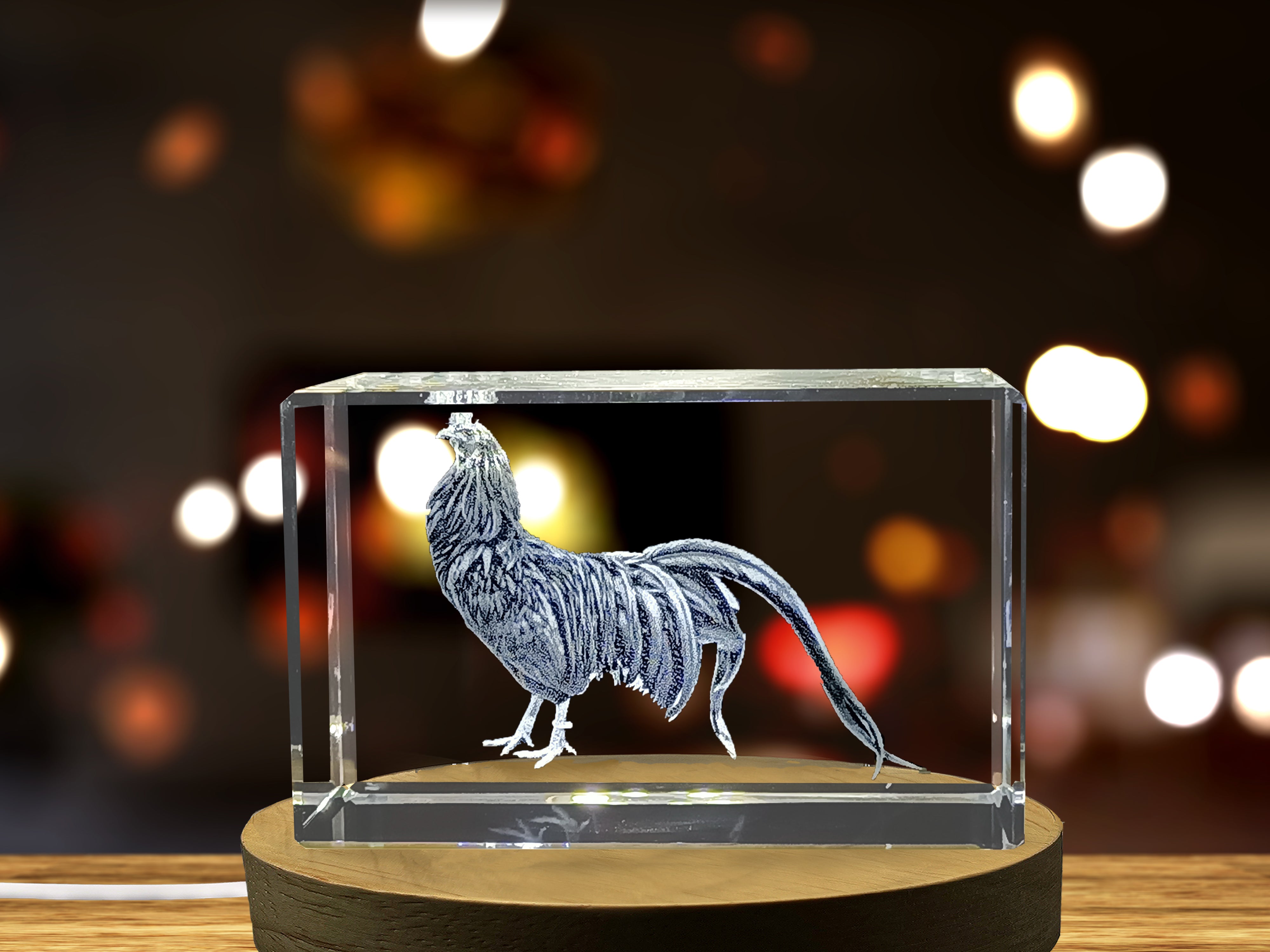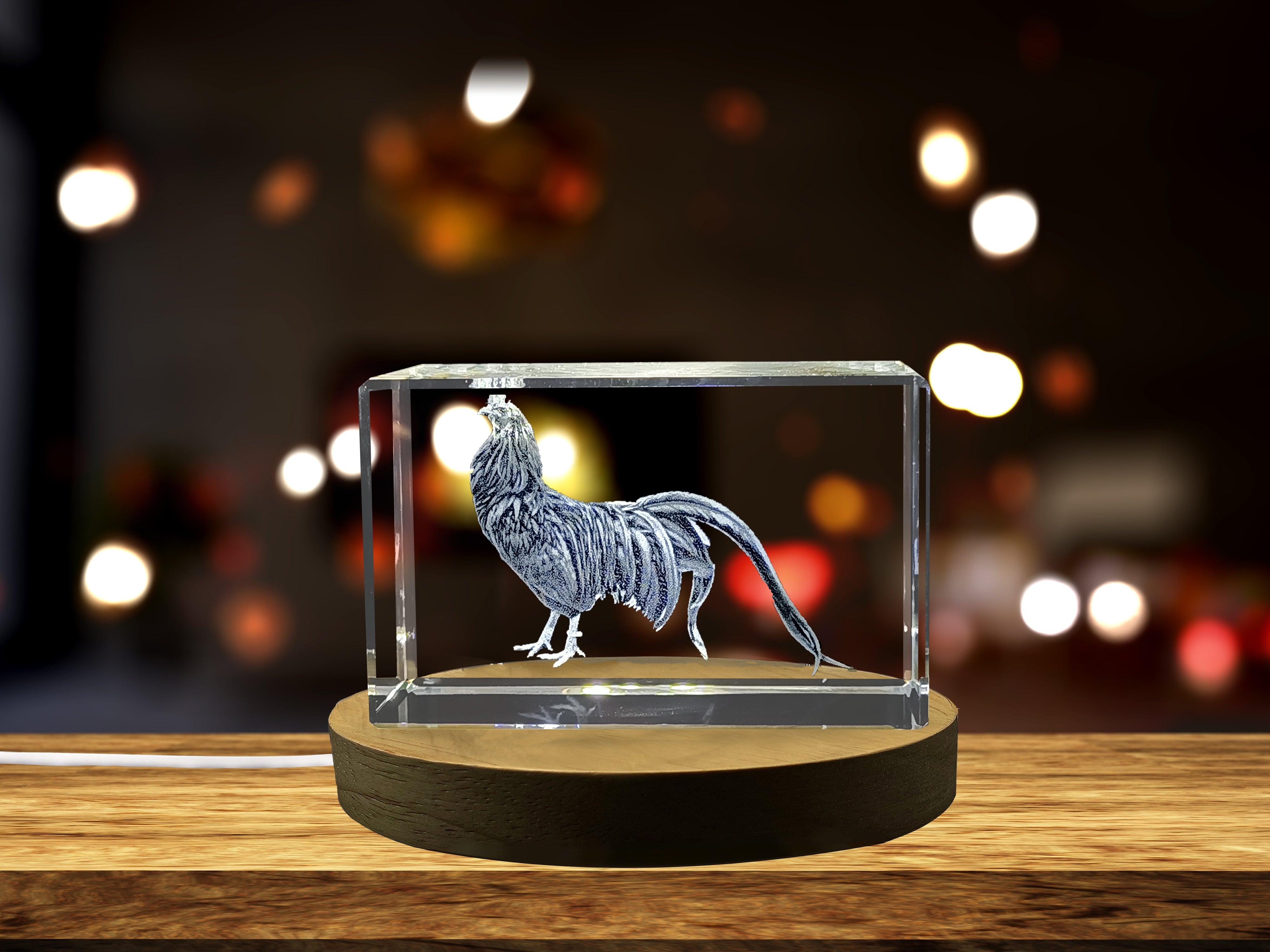 Recognition Sumatran Chicken 3D Engraved Crystal Trophy Award with LED Base - Elegant Gift