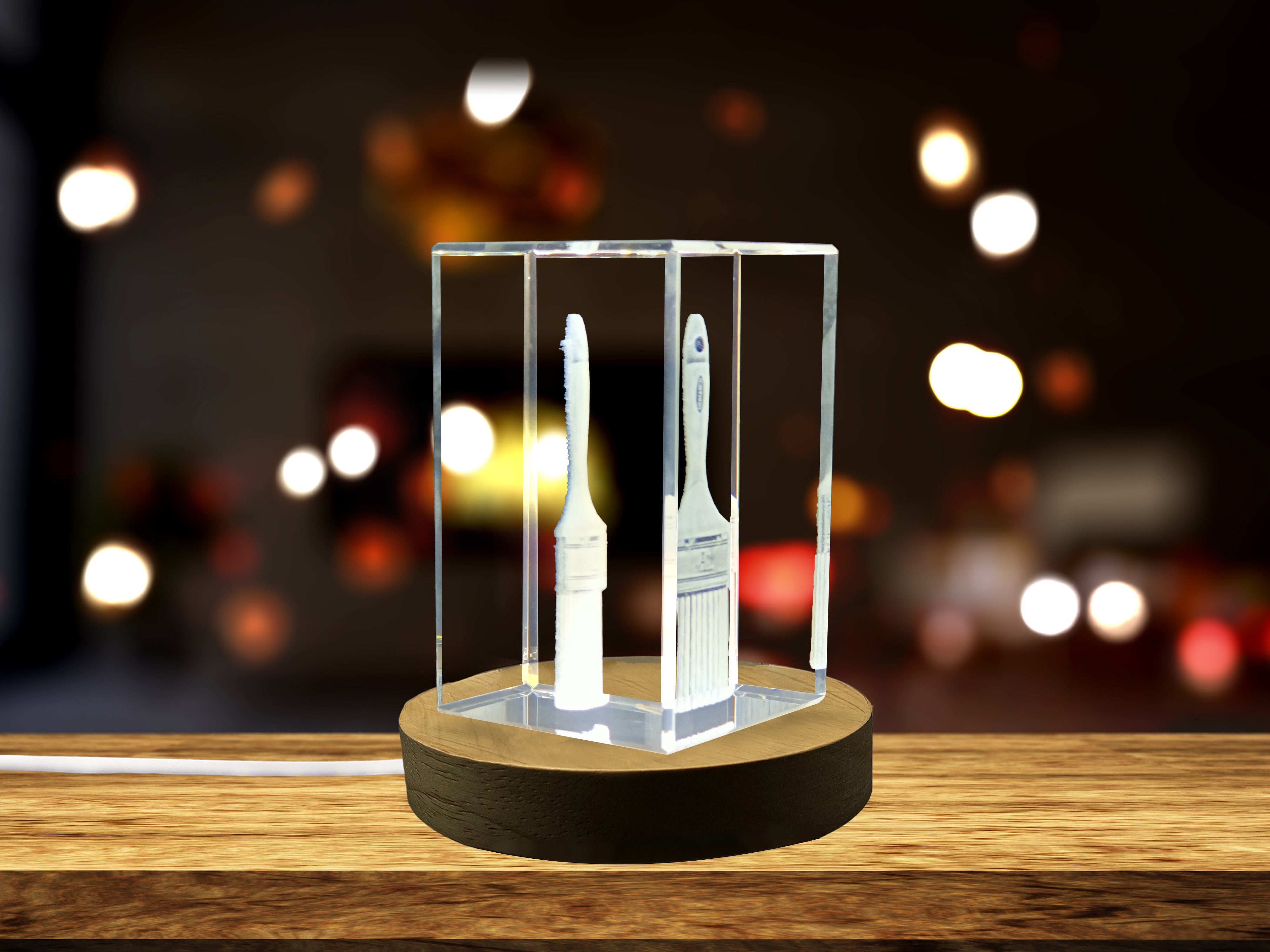 Premium Recognition Crystal Trophy Award Paint Brush - 3D Laser Engraved with LED Base Light