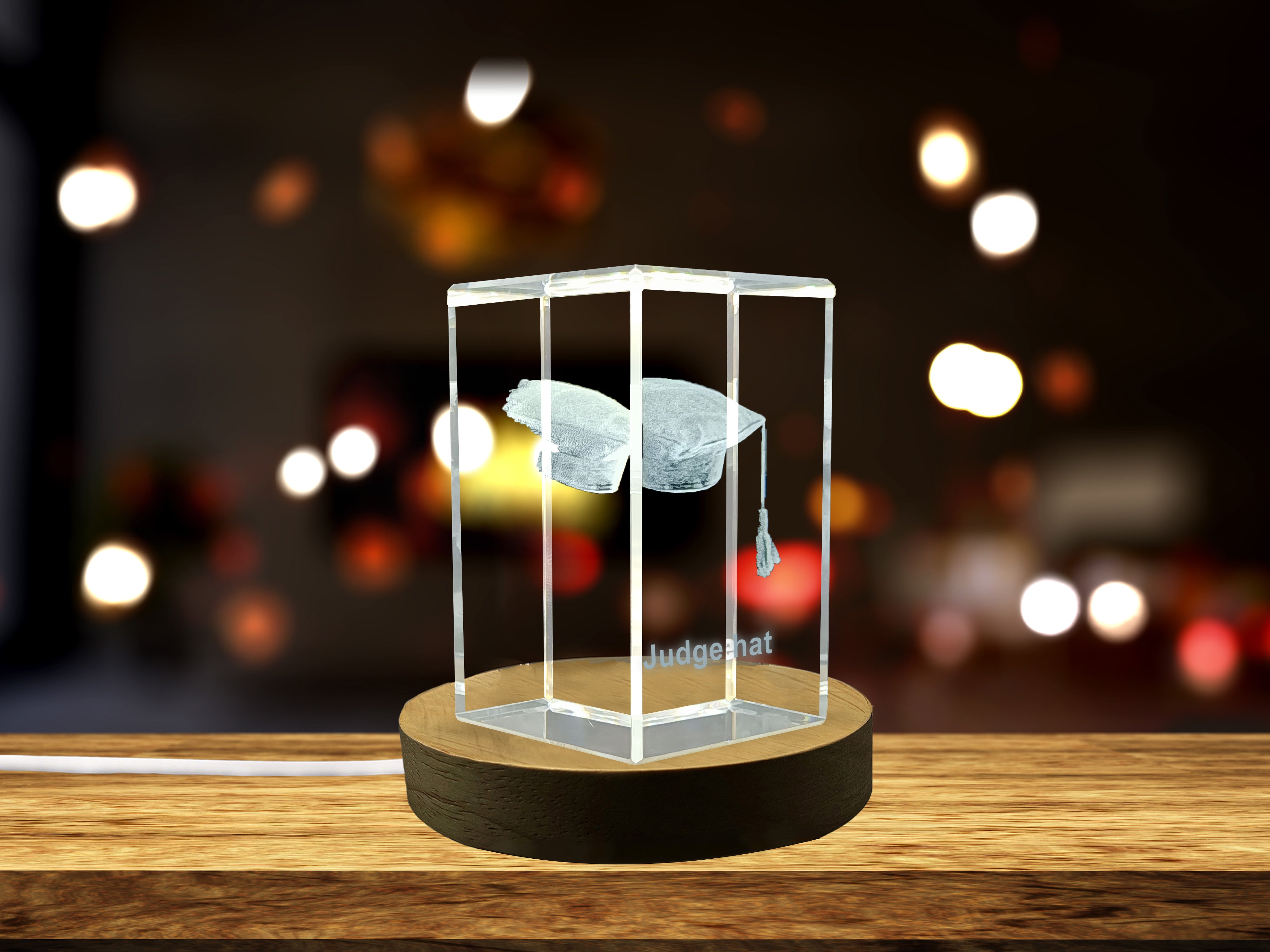 Recognition Crystal Sculpture: Intricately Engraved Judge's Robe Hat with LED Base Light