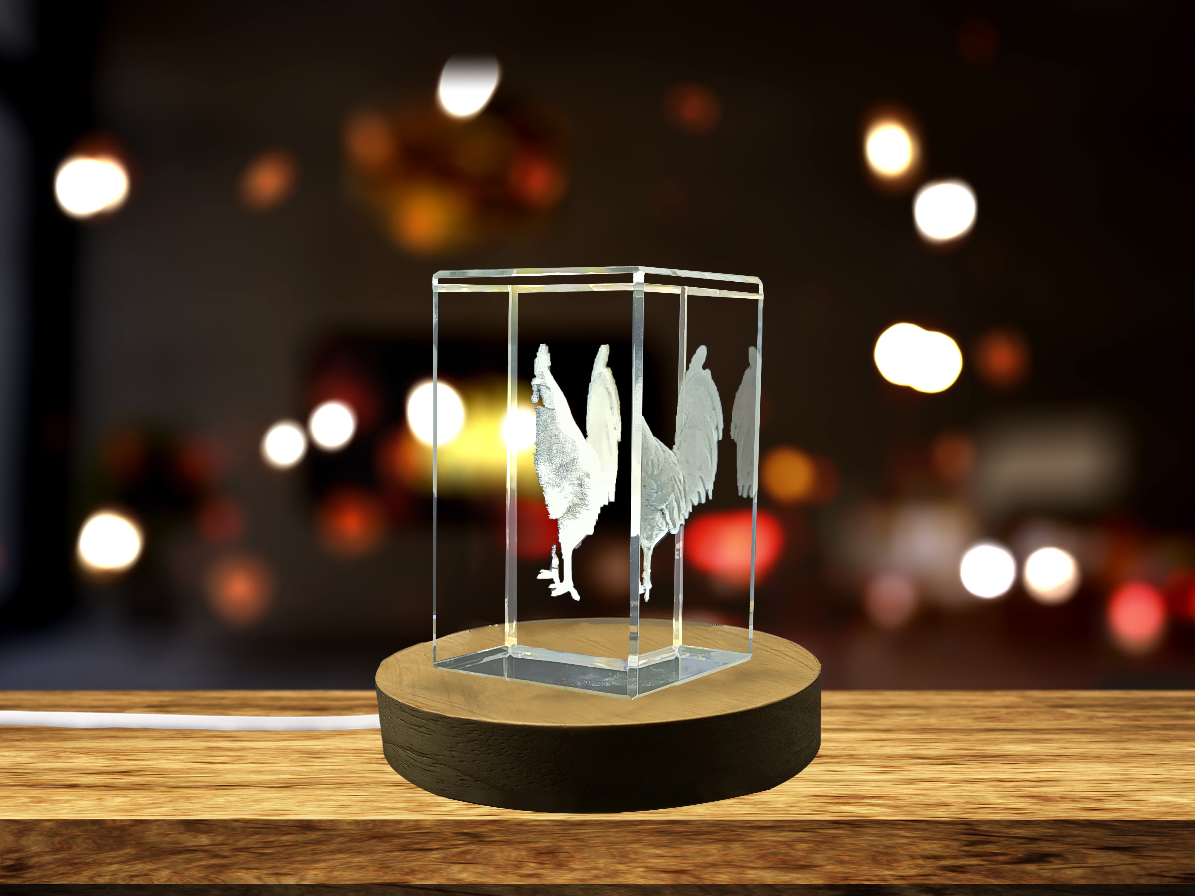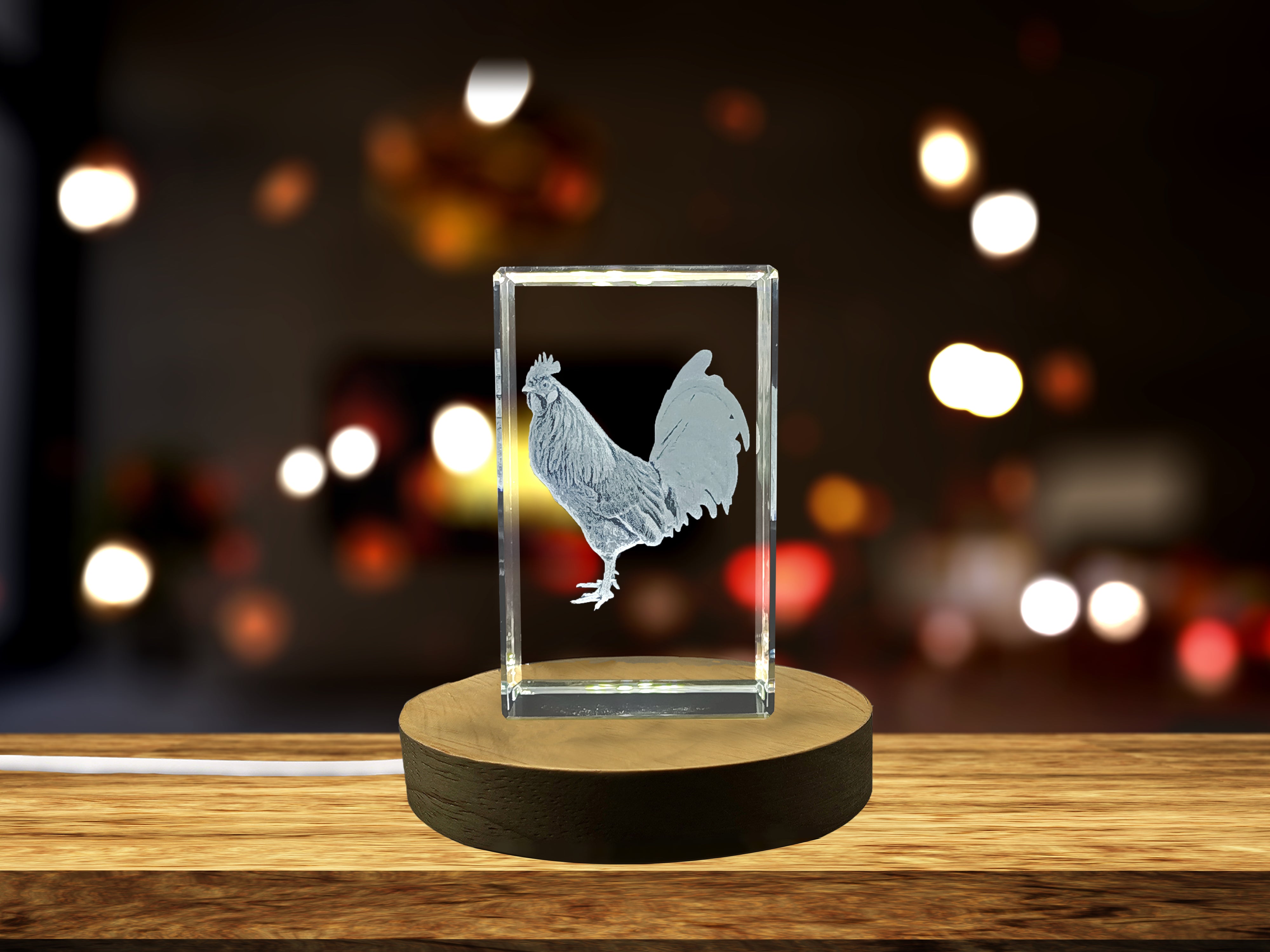 Recognition Crystal Friesian Chicken Trophy Award Statue with LED Base - Farmhouse Decor