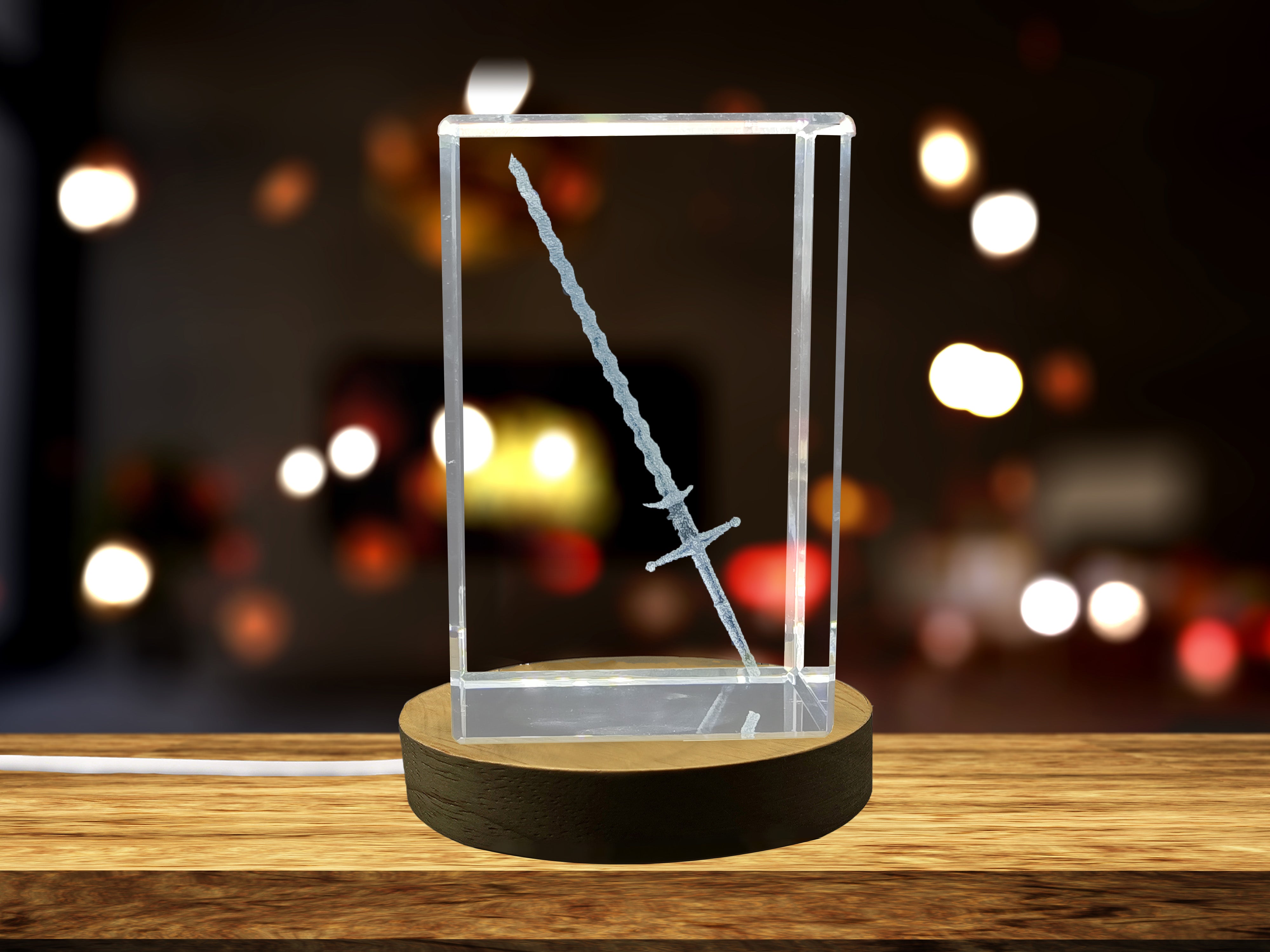 Flamberge Sword Crystal Recognition Art With 3D Engraving & LED Base Gift Box