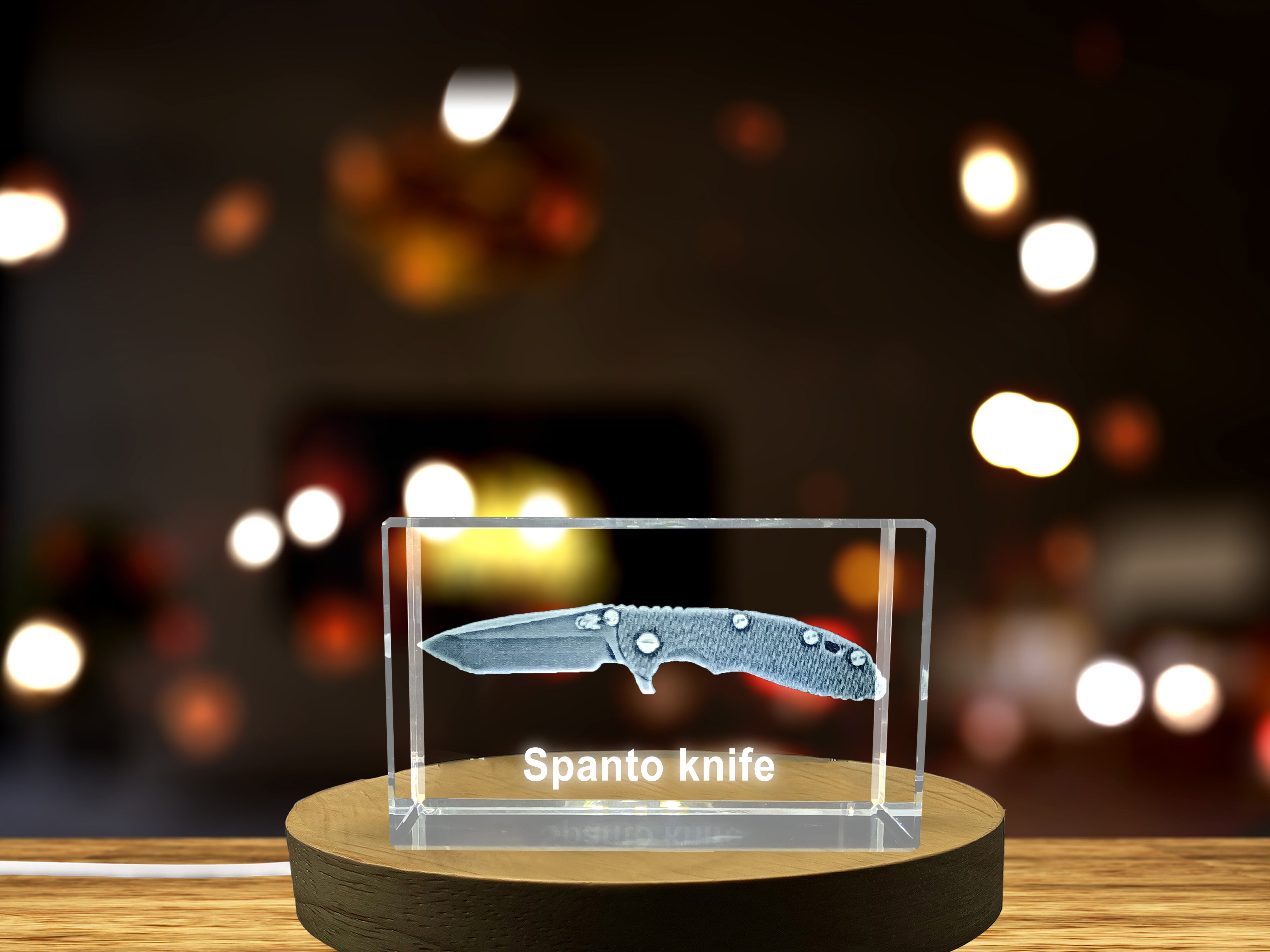 Recognition Spanto Knife with Intricate 3D Crystal Engraved Handle and LED Base Light