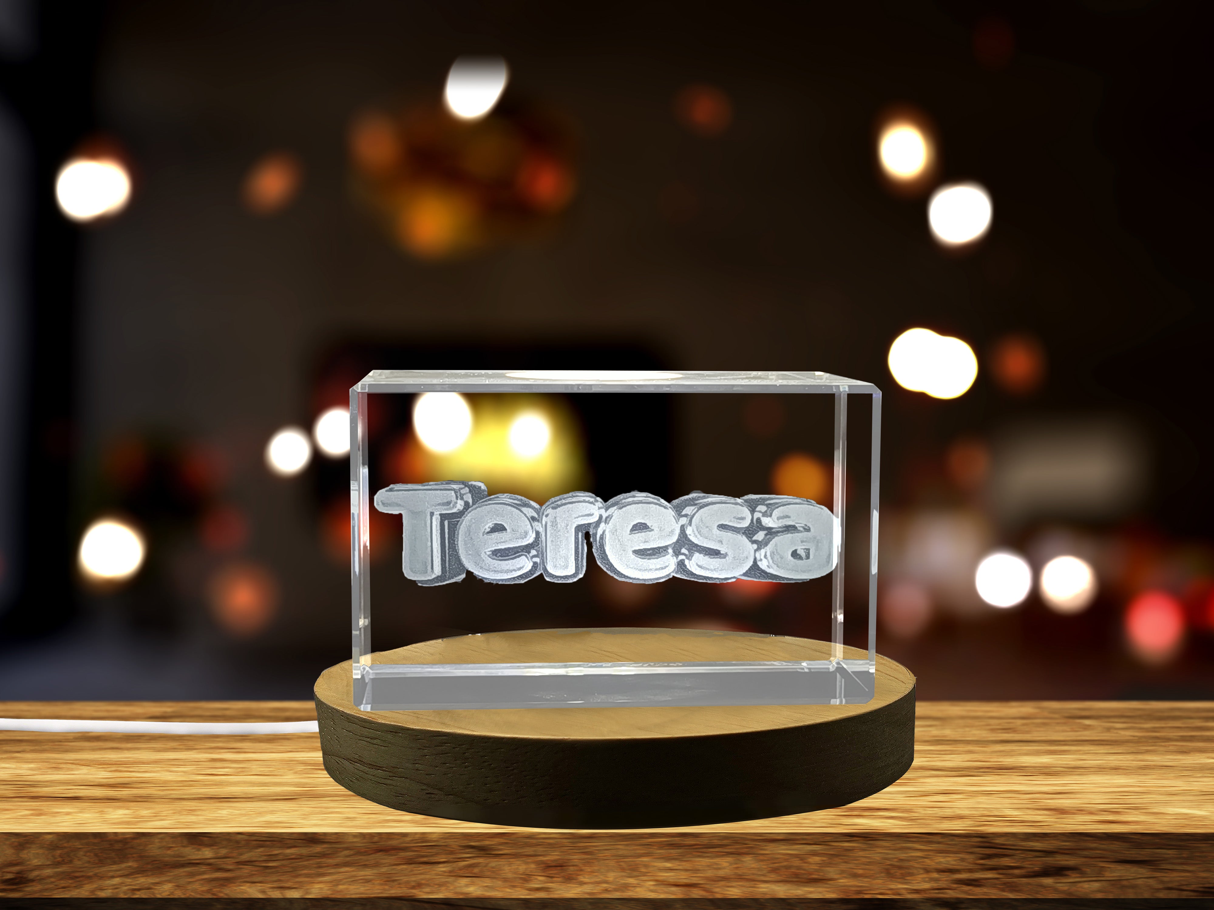 Recognition Teresa 3D Engraved Crystal Trophy Award - Personalized Name Art with LED Base