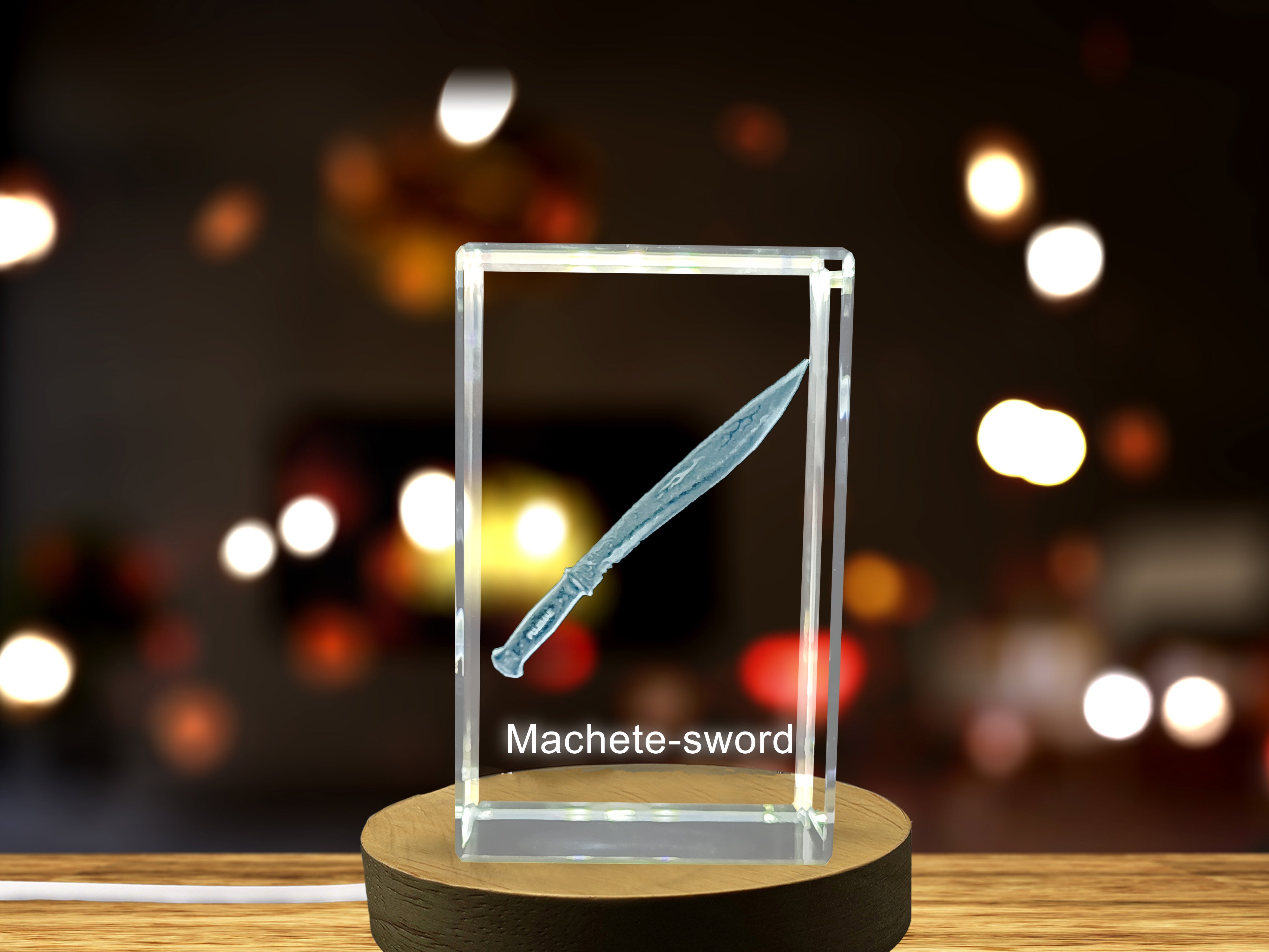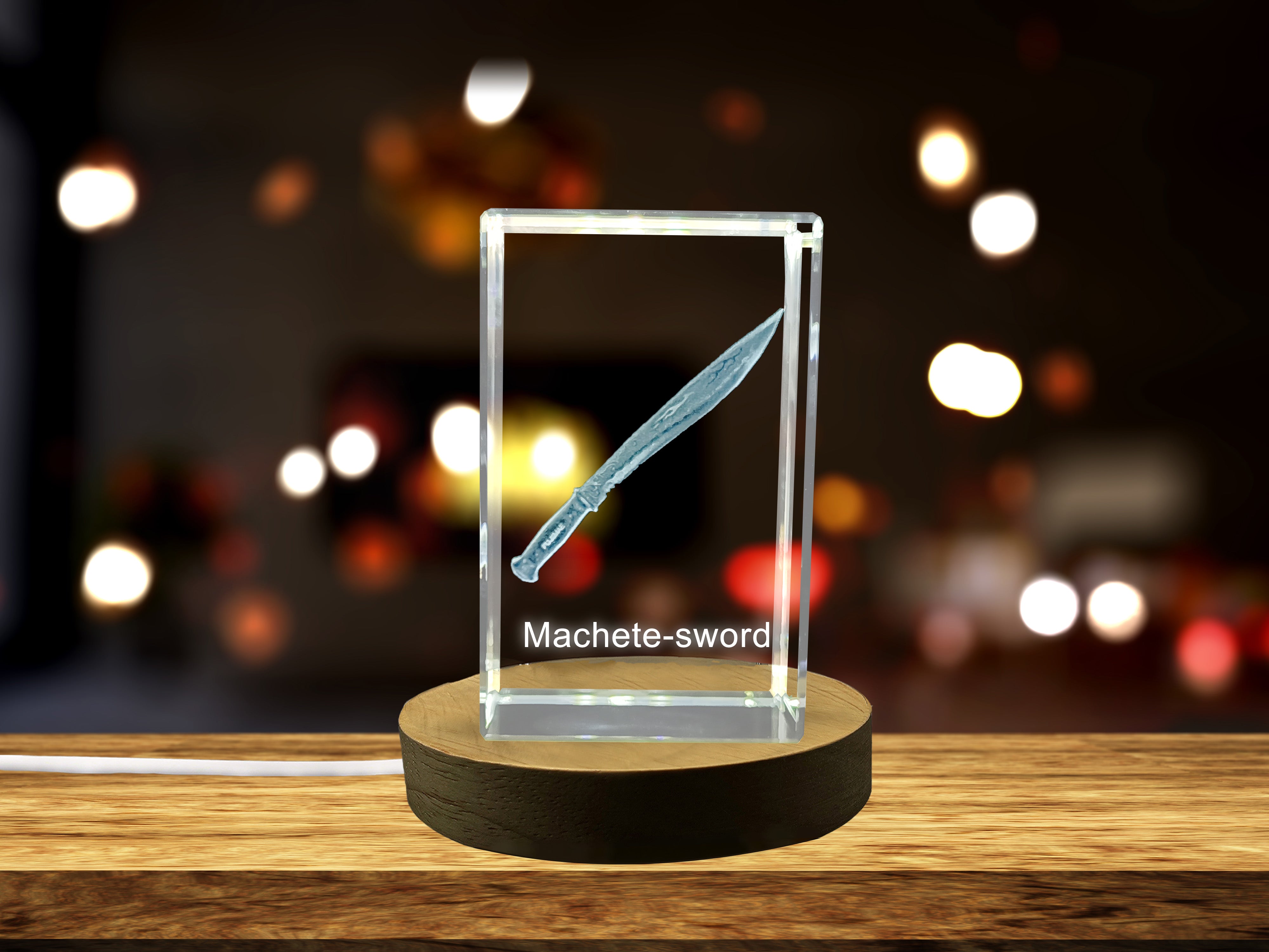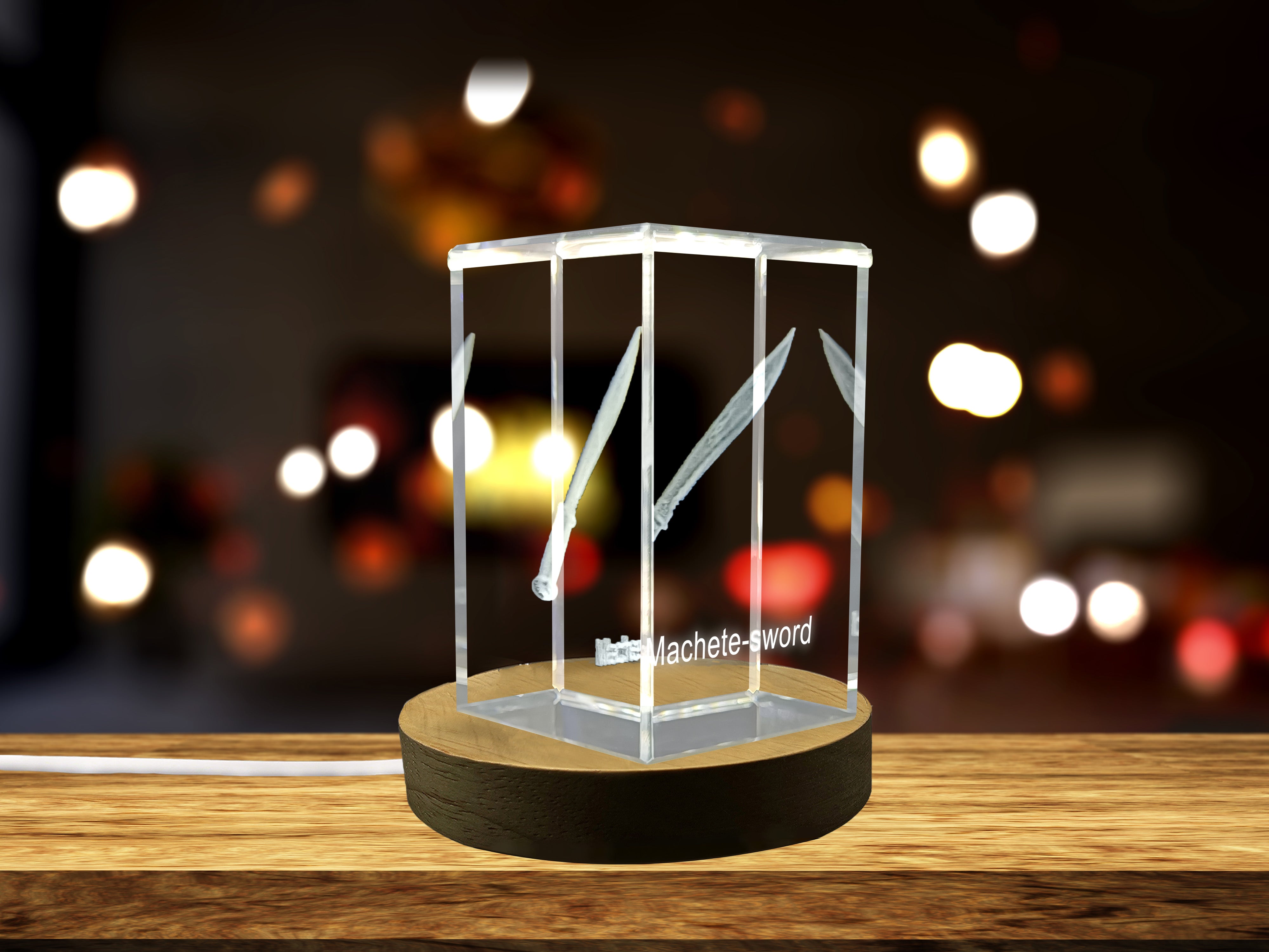 Recognition Unique 3D Engraved Crystal Machete Sword With LED Base - Artistic Keepsake Gift