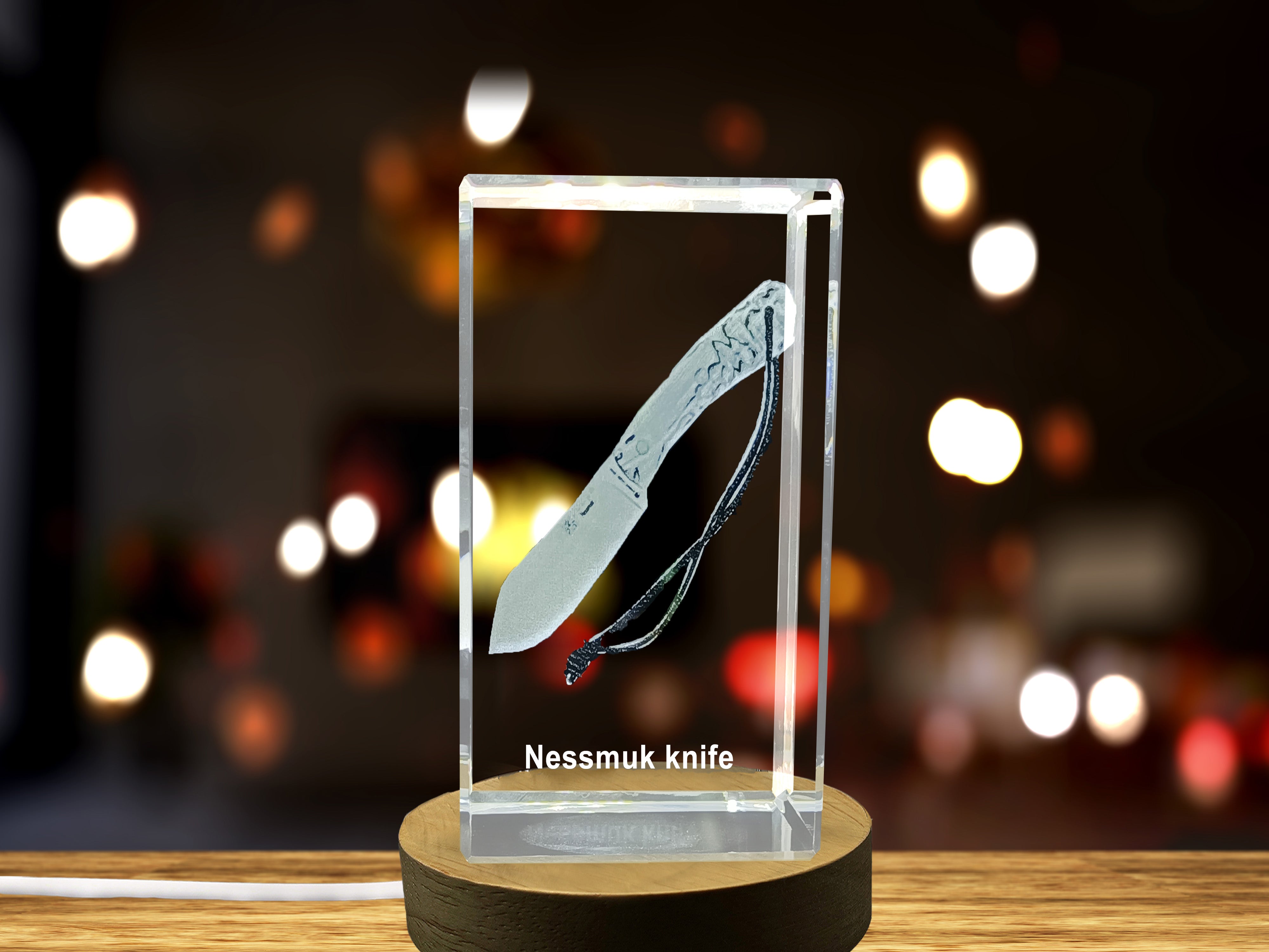 Nessmuk Knife Recognition - 3D Engraved Crystal Gift with LED Base Light
