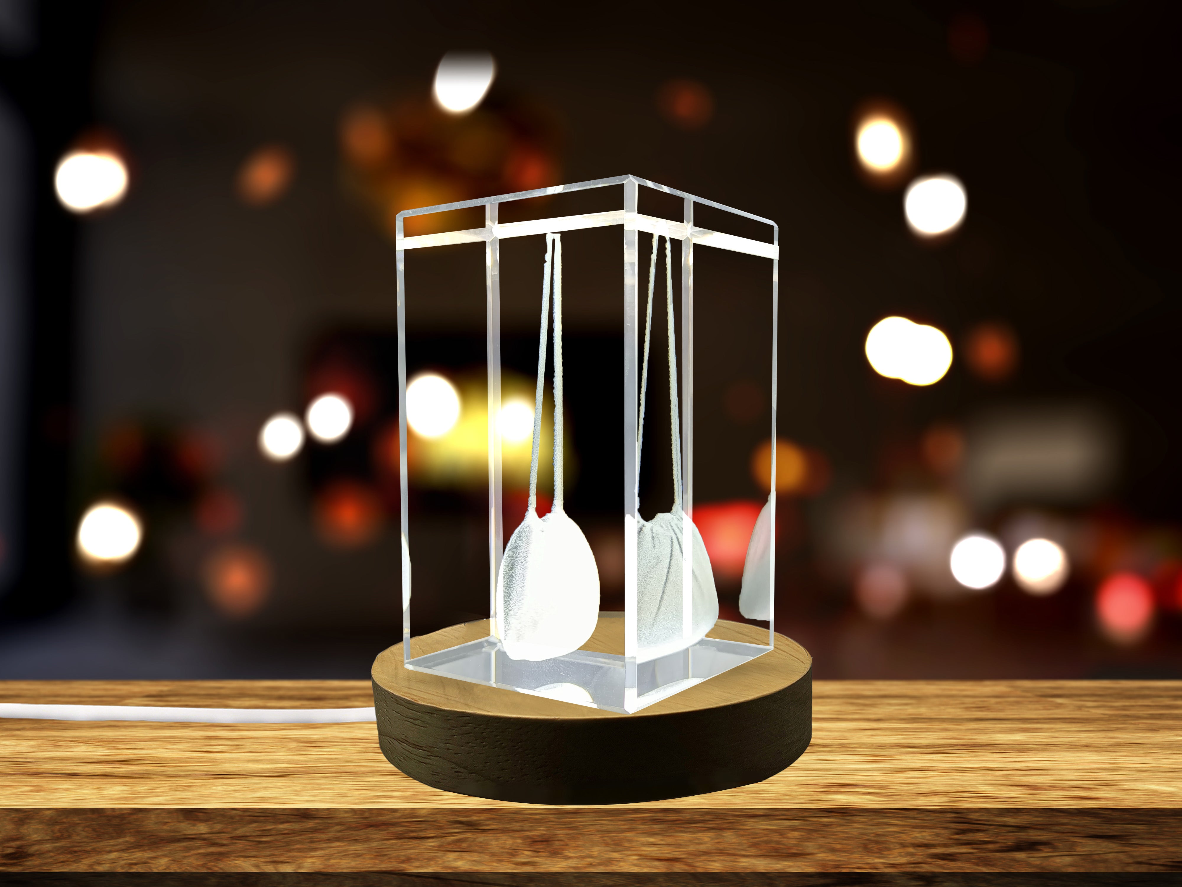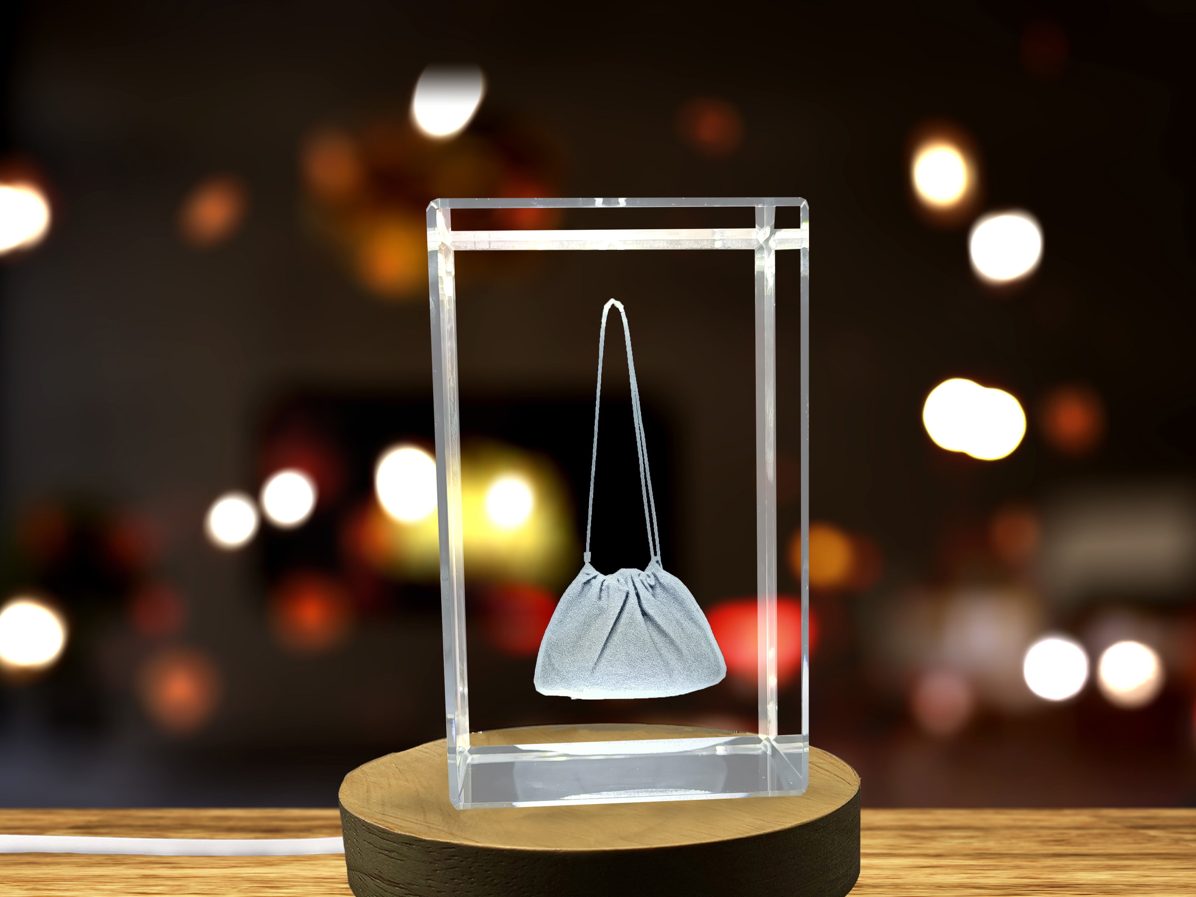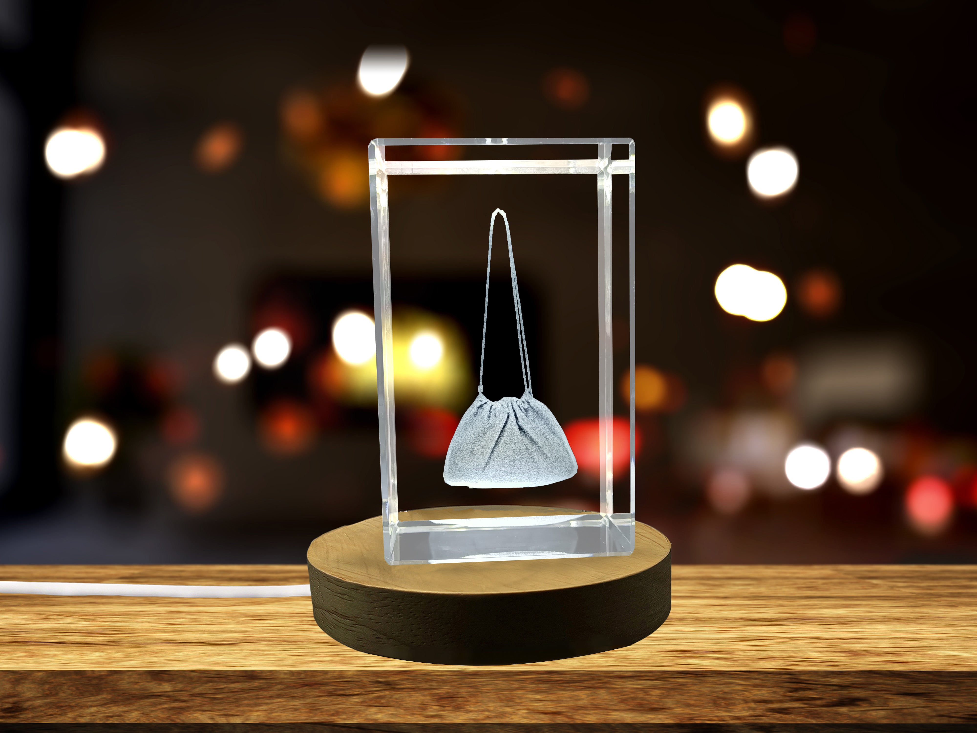 Recognition 3D Engraved Crystal Pouch Bag with LED Base Light - Elegant Storage Solution