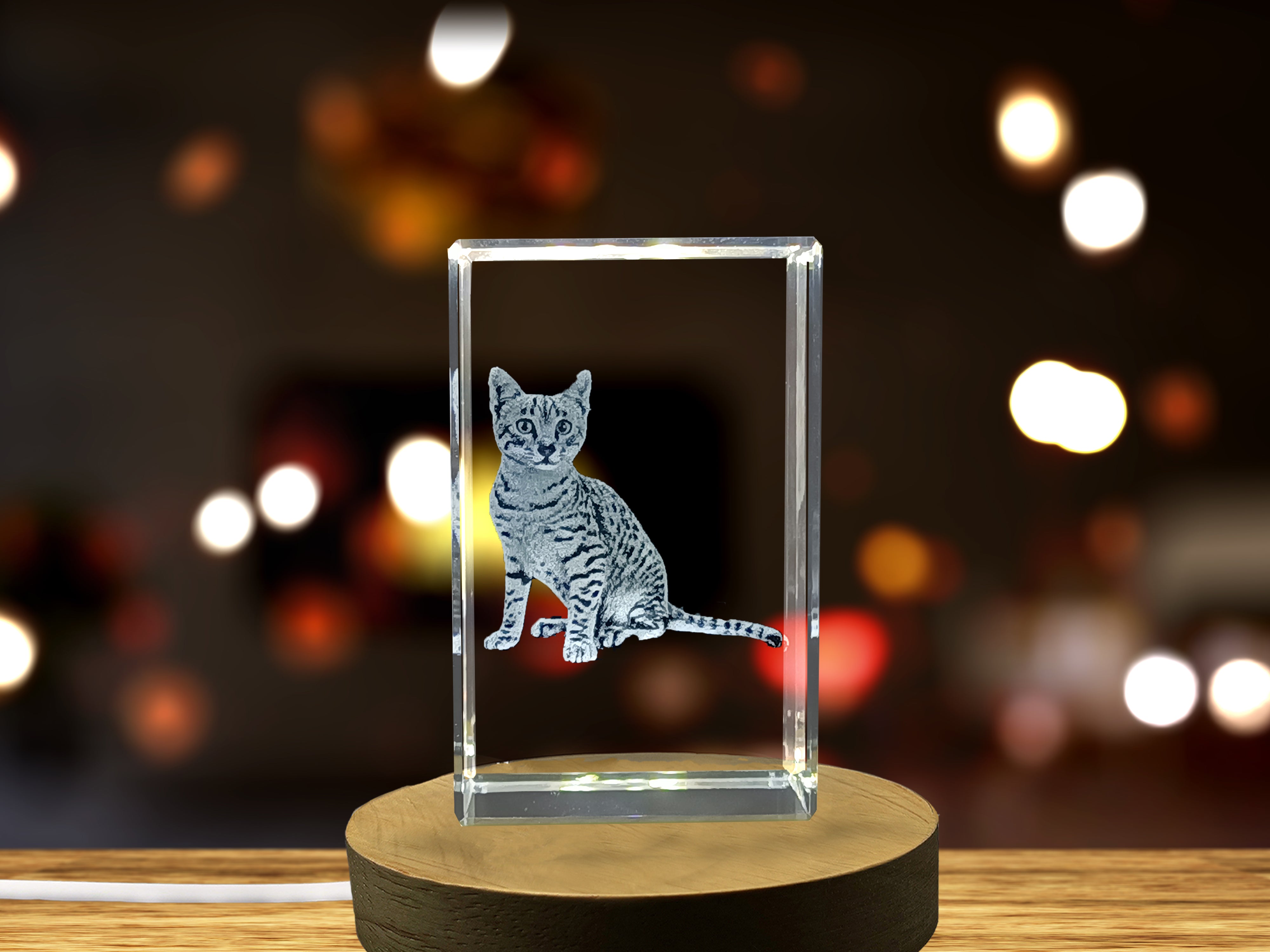 Elegant Egyptian Mau Cat 3D Crystal Trophy Award With Recognition - Ideal Gift for Cat Lovers