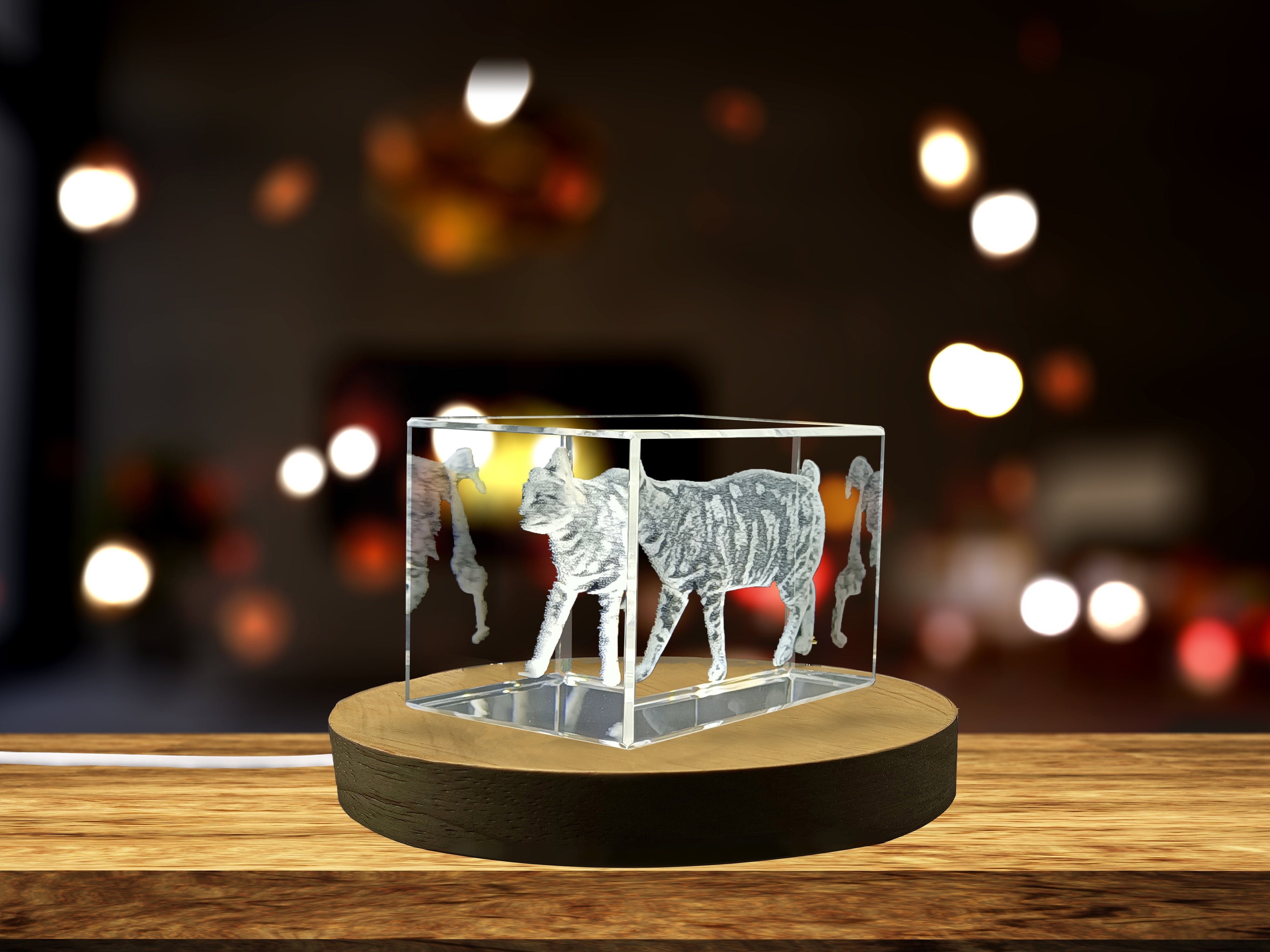 Manx Cat Recognition Trophy Award - 3D Engraved Crystal Sculpture With LED Base - A&B Crystal Collection