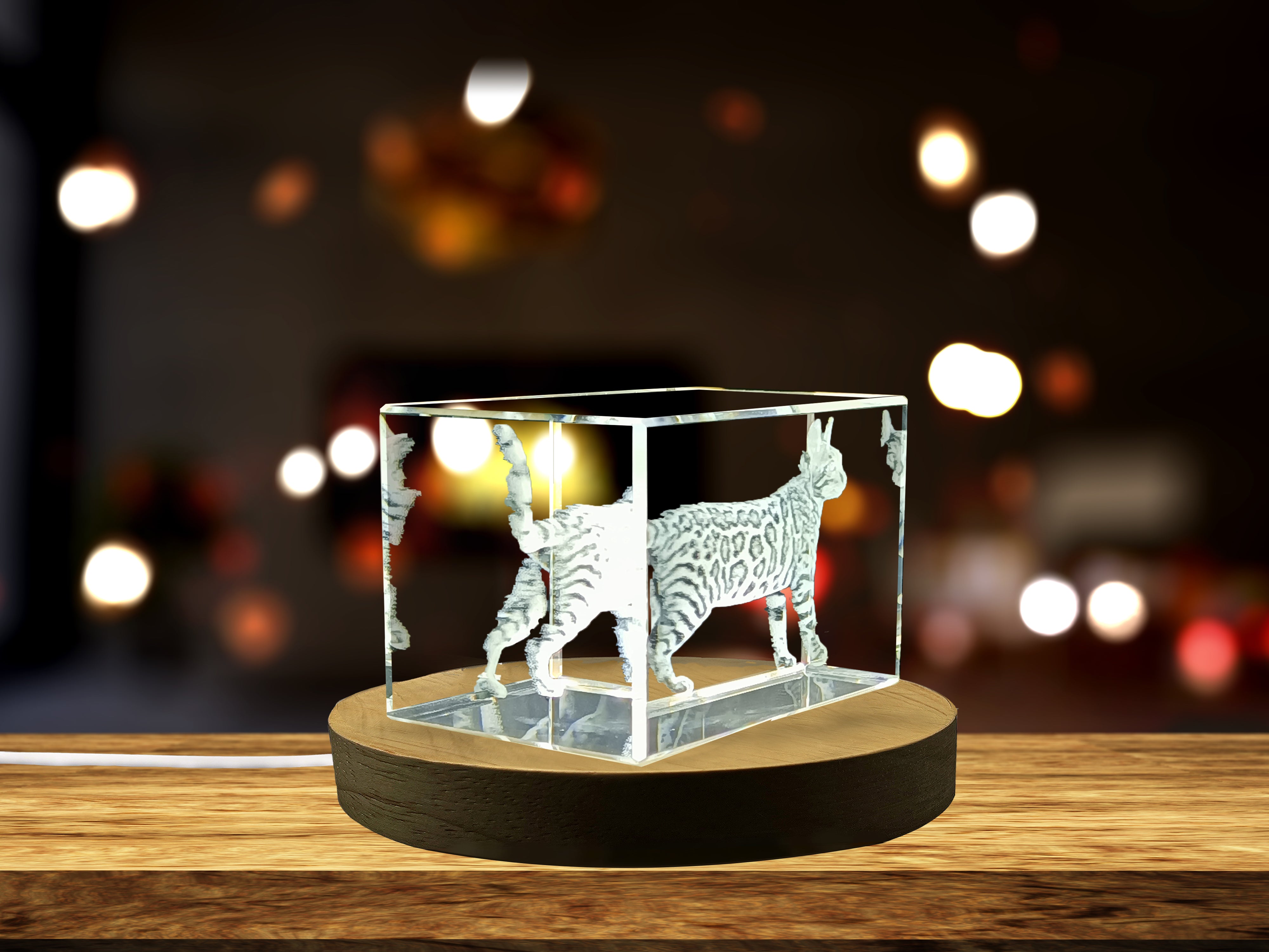 Bengal Cat 3D Engraved Crystal Trophy Award - Unique Pet Keepsake Recognition with LED Base