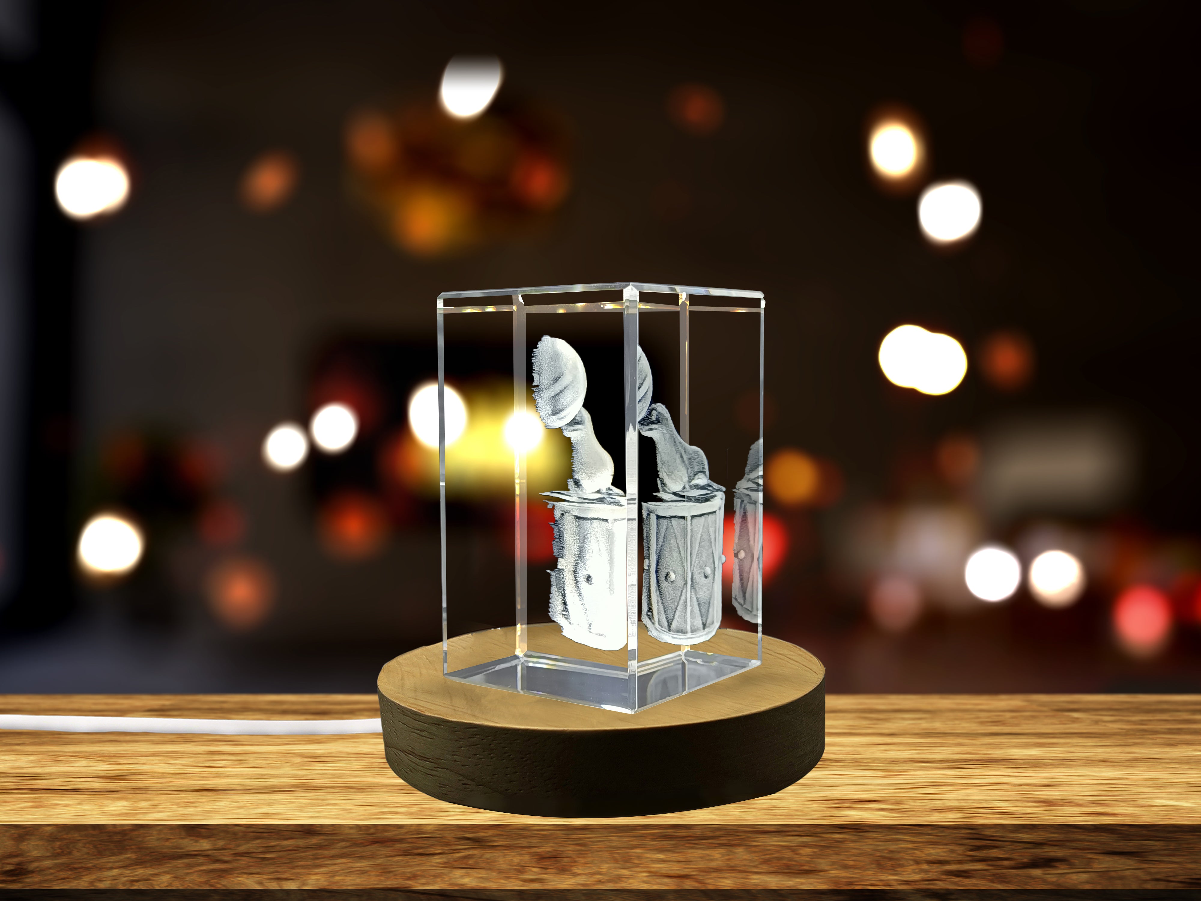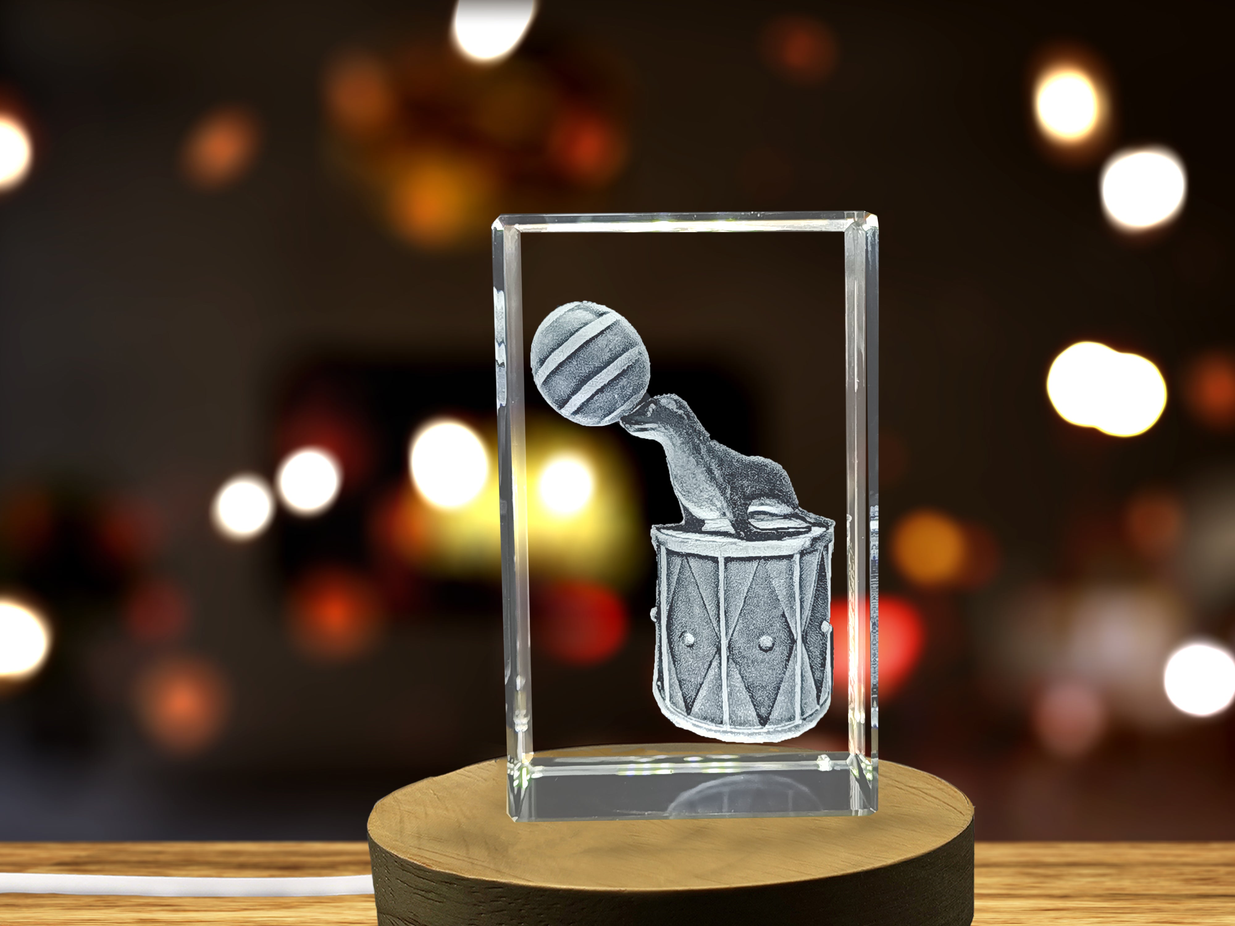 Whimsical Circus Seal Playing Drums Crystal Recognition Award with LED Base Light