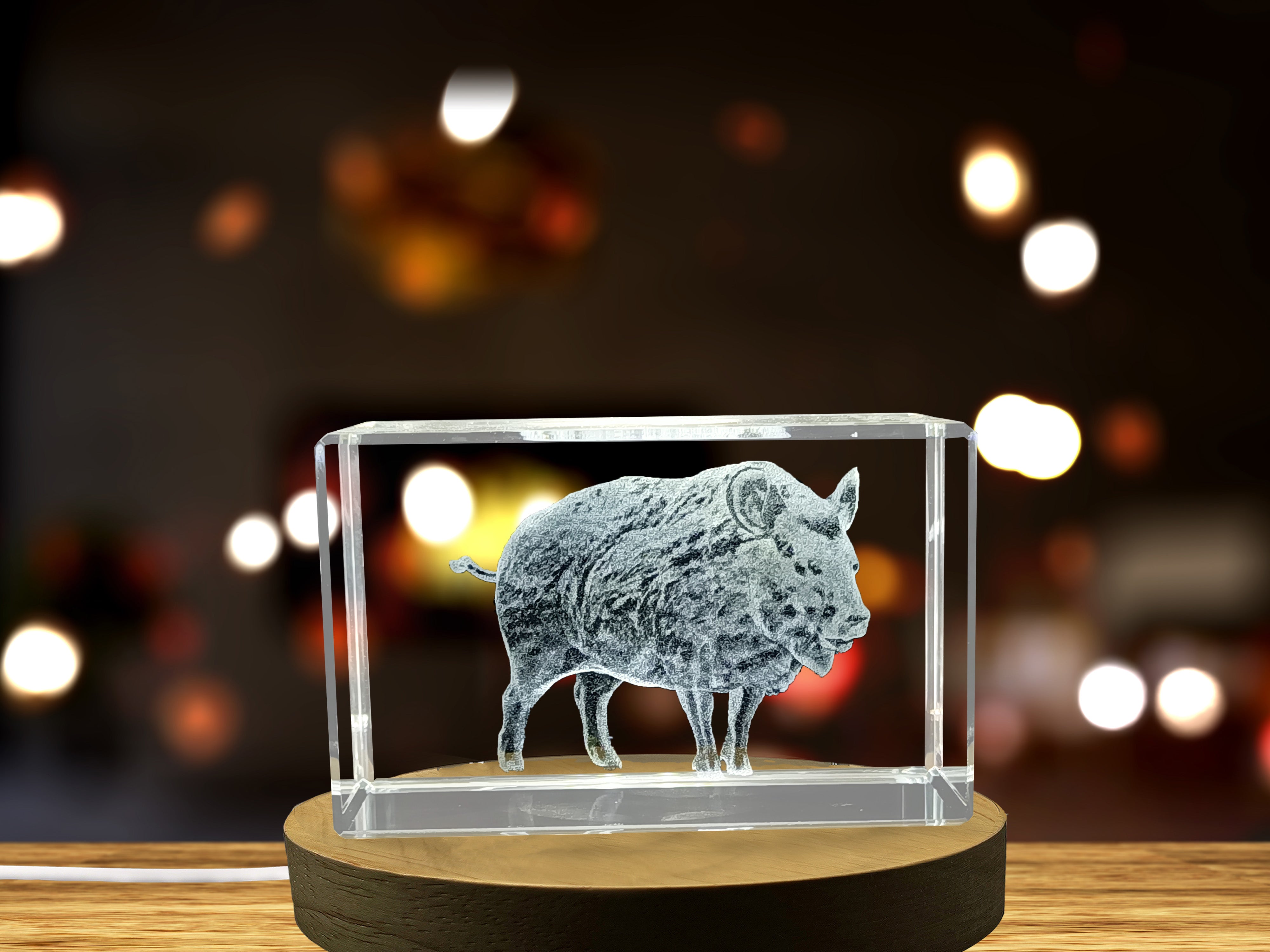 Recognition Untamed Spirit: 3D Engraved Crystal Wild Boar Sculpture with LED Base Light