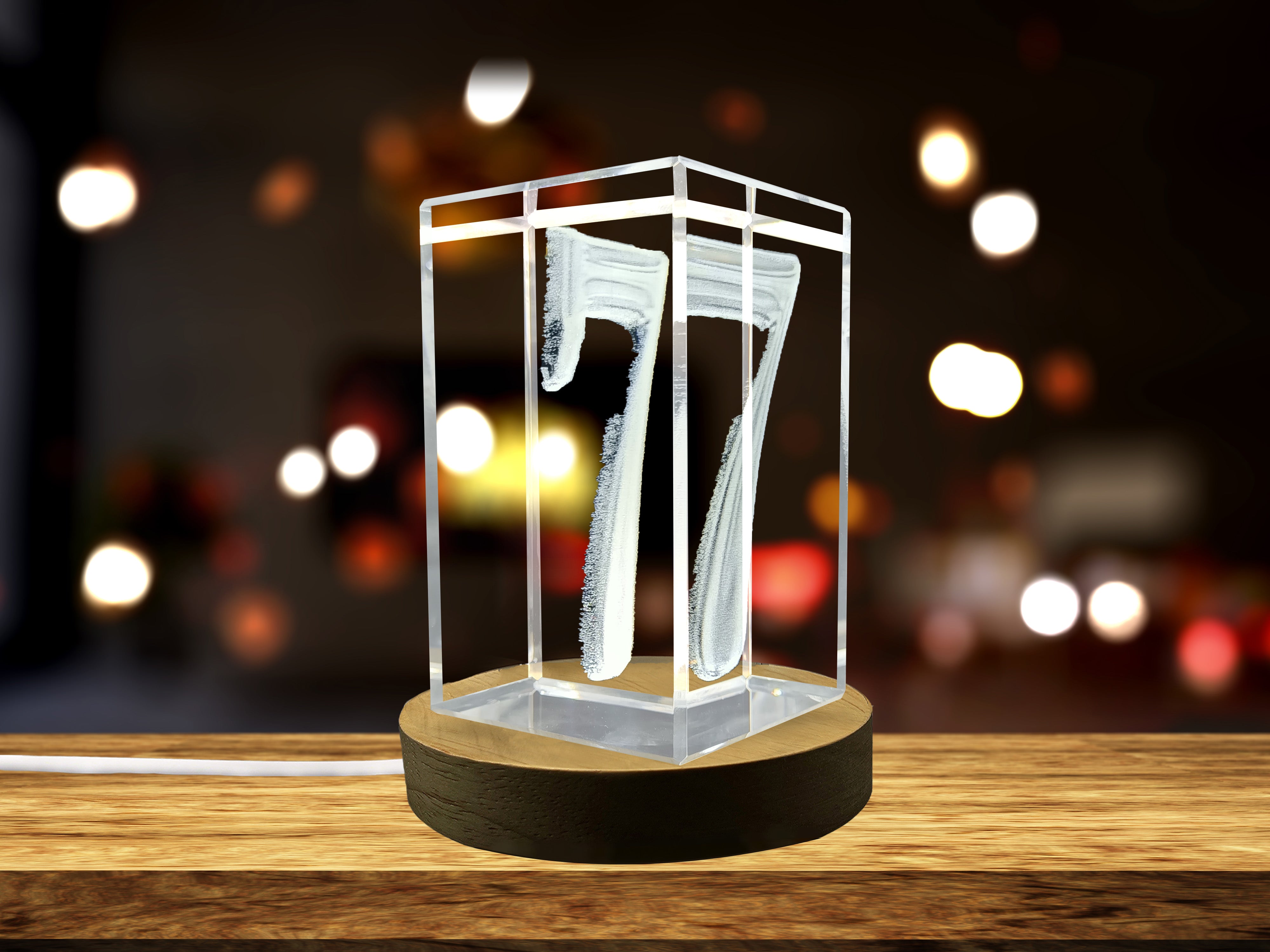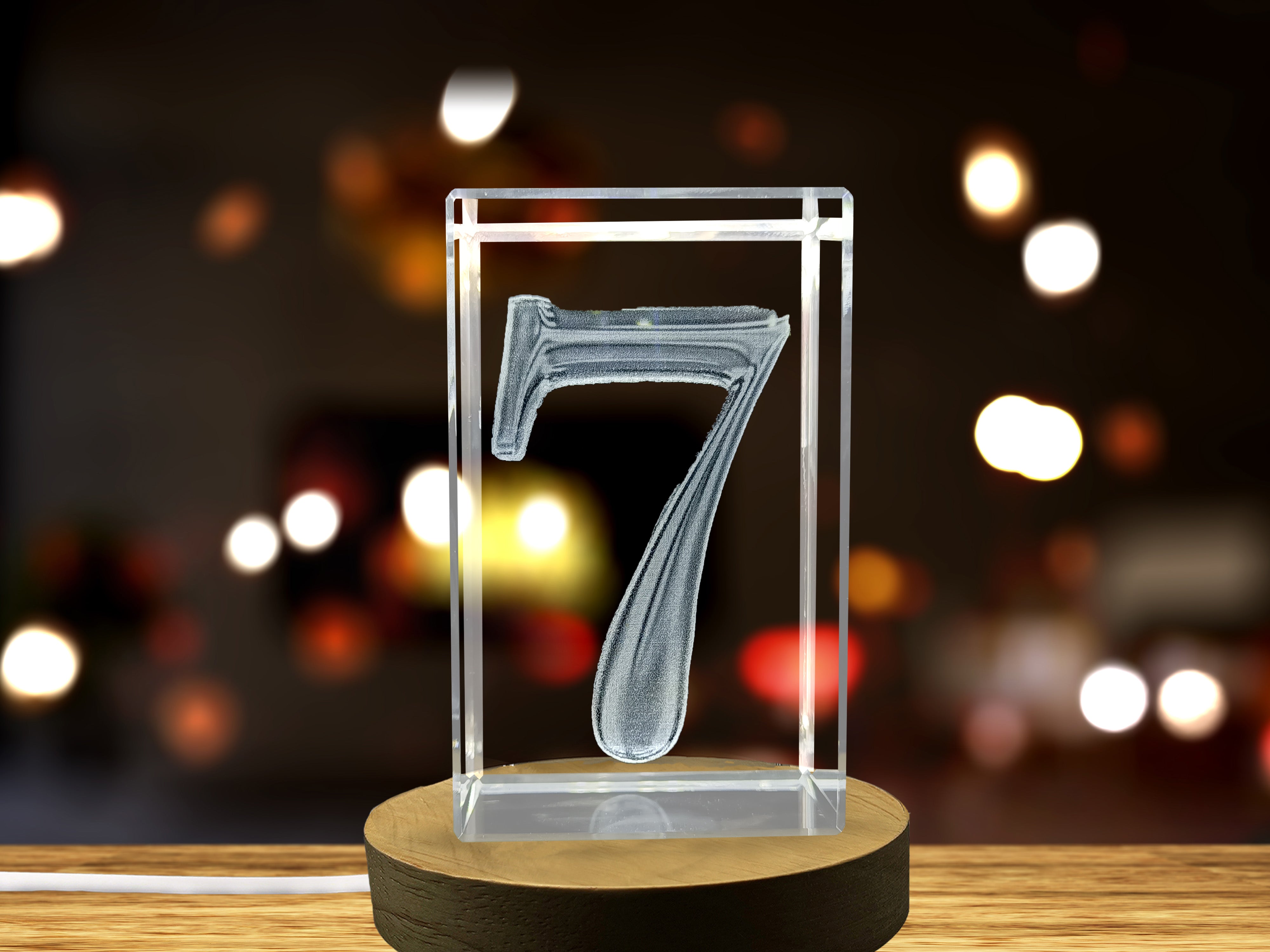 3D Engraved Crystal Charm - Lucky Number 7 Recognition Gift with LED Base Light