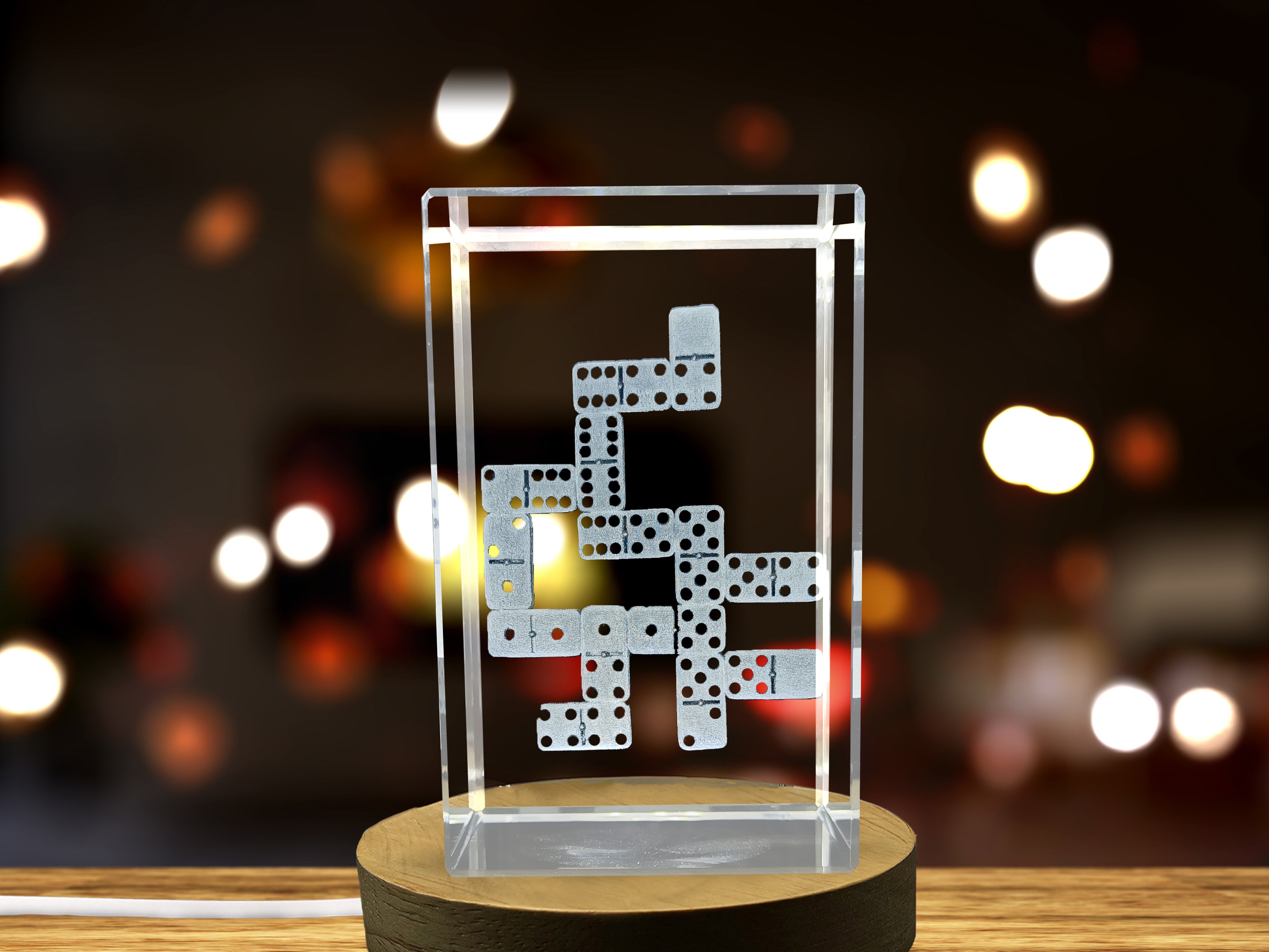 3D Engraved Crystal Dominoes Game With FREE LED Base Light - Exquisite Gift Set Recognition