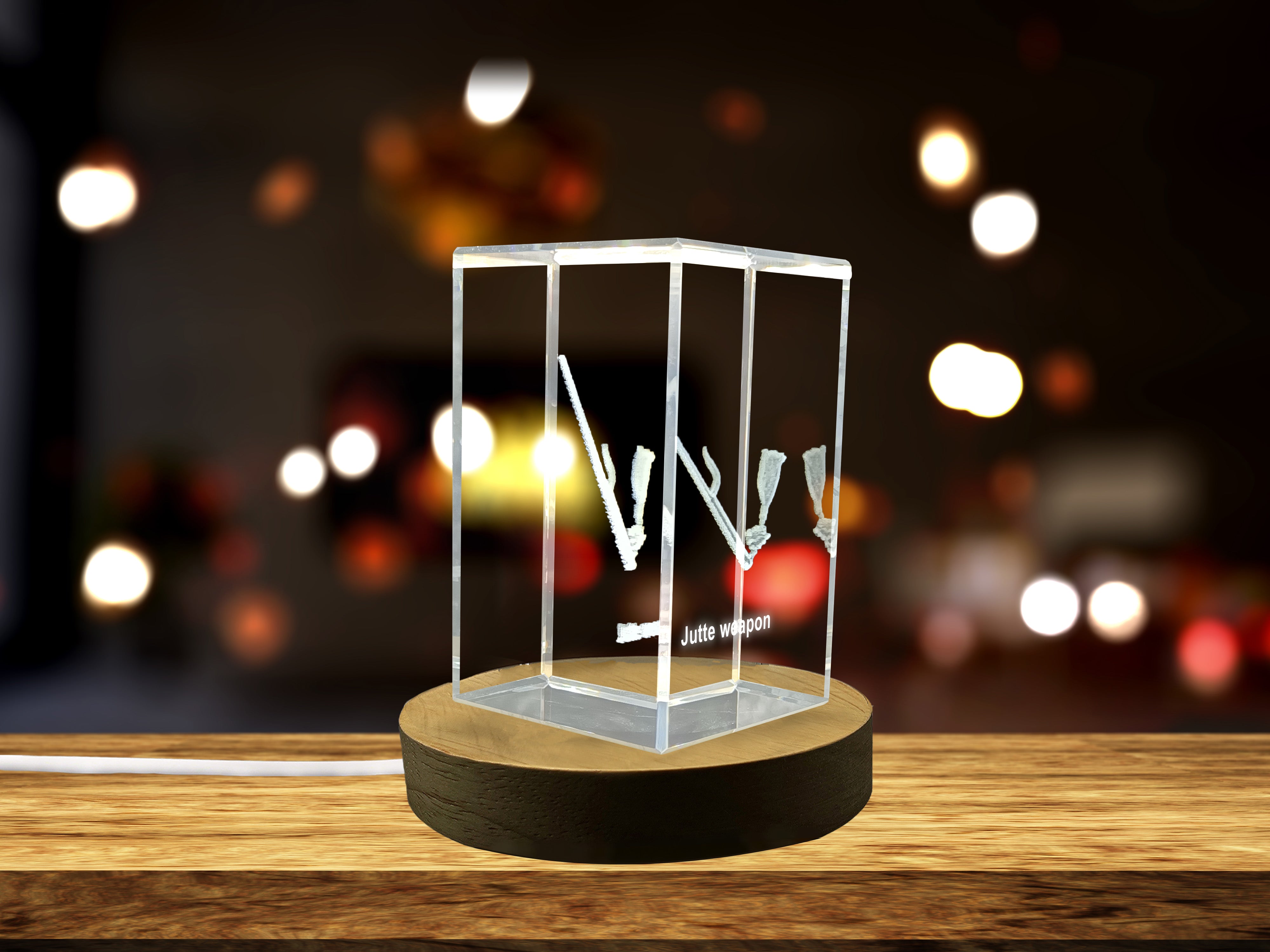 3D Engraved Crystal Jutte Recognition - Exquisite Martial Arts Weapon Display with LED Base Light