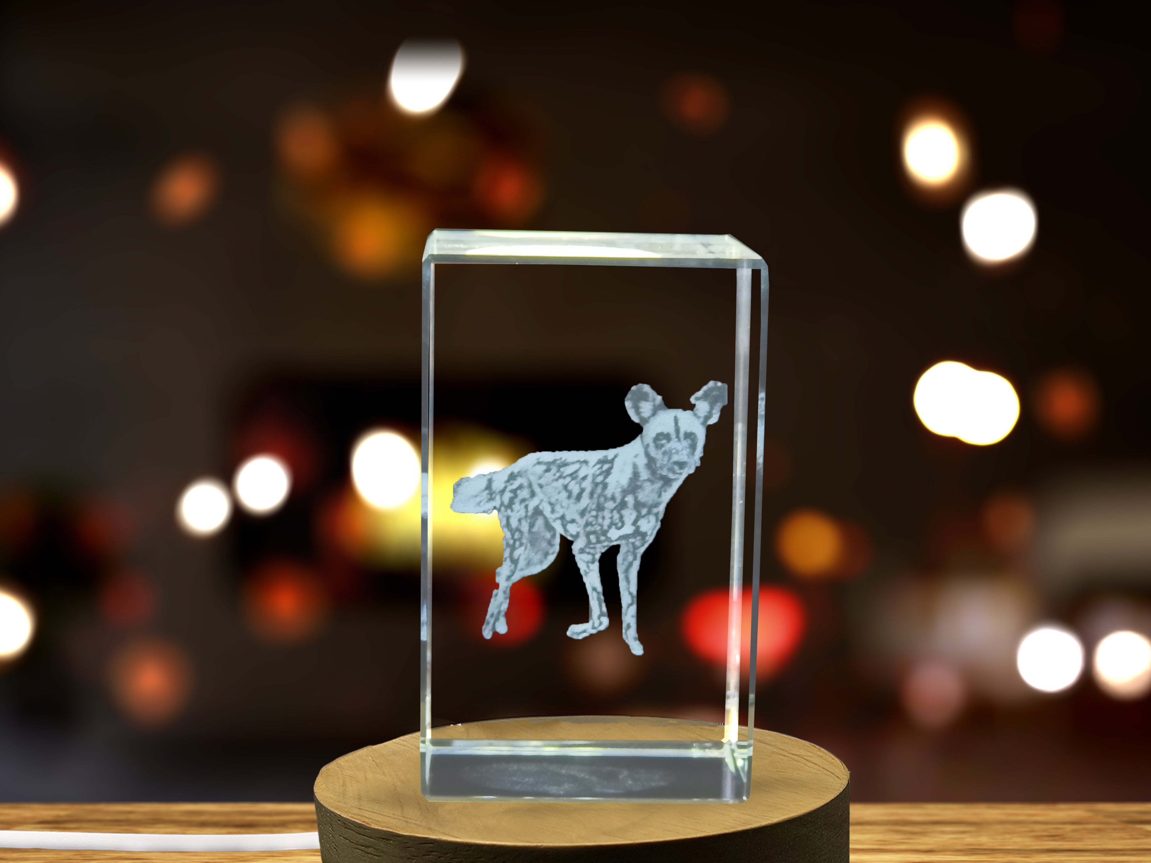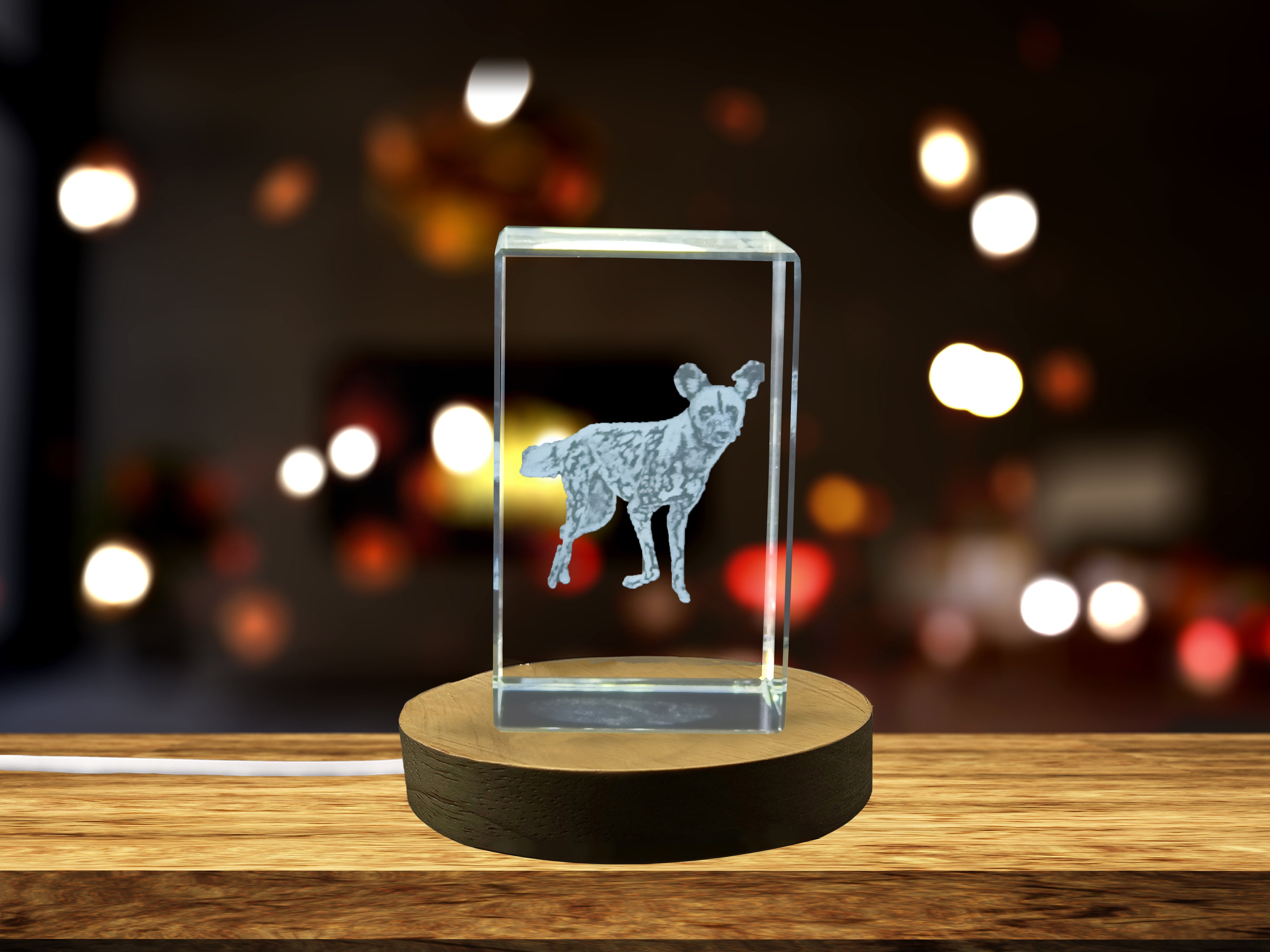 African Wild Dog 3D Engraved Crystal Trophy Gift with LED Base Light - Wildlife Recognition Sculpture