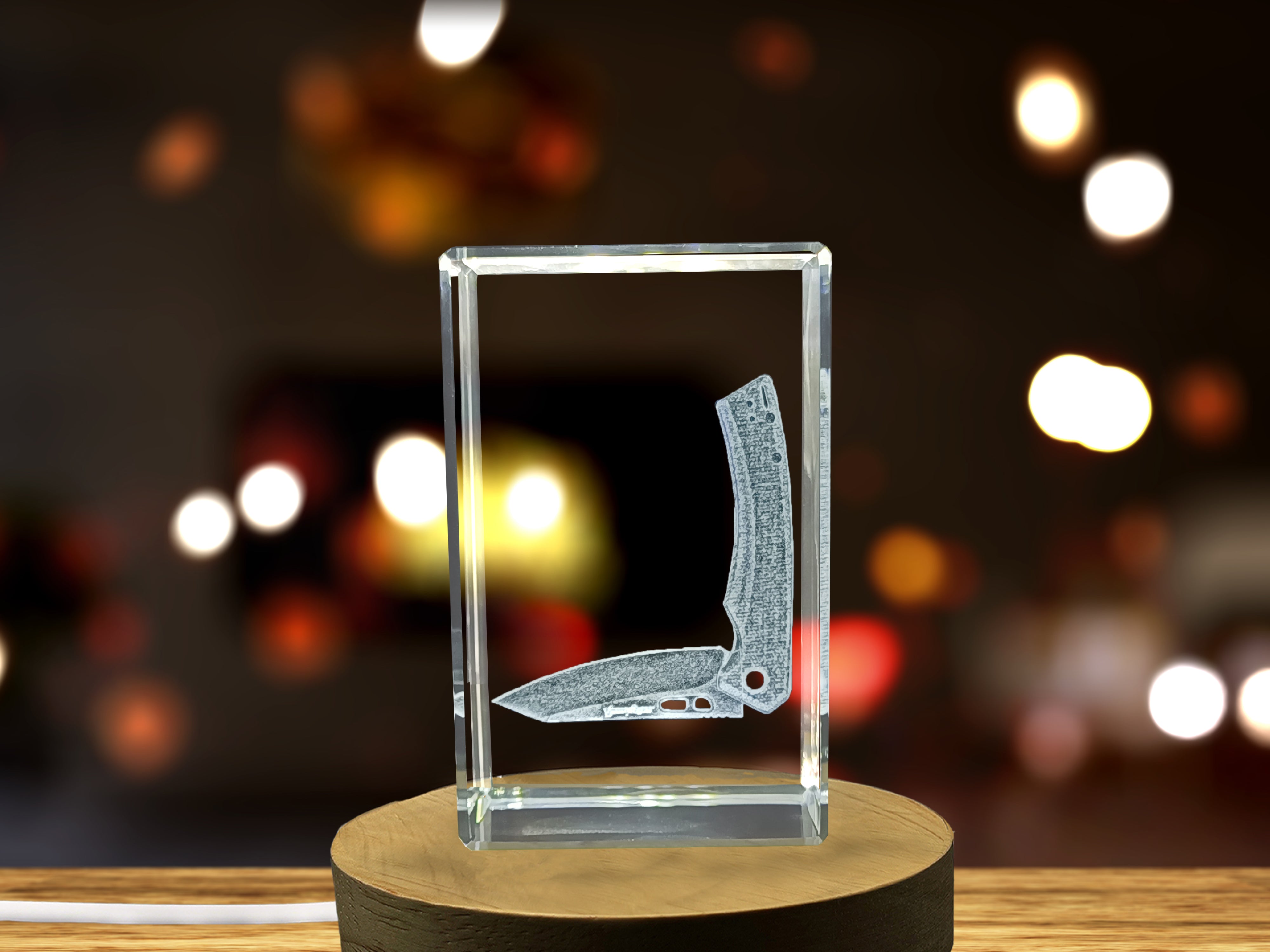 3D Engraved Crystal Coping Blade Knife With Recognition - Includes LED Base & Gift Box