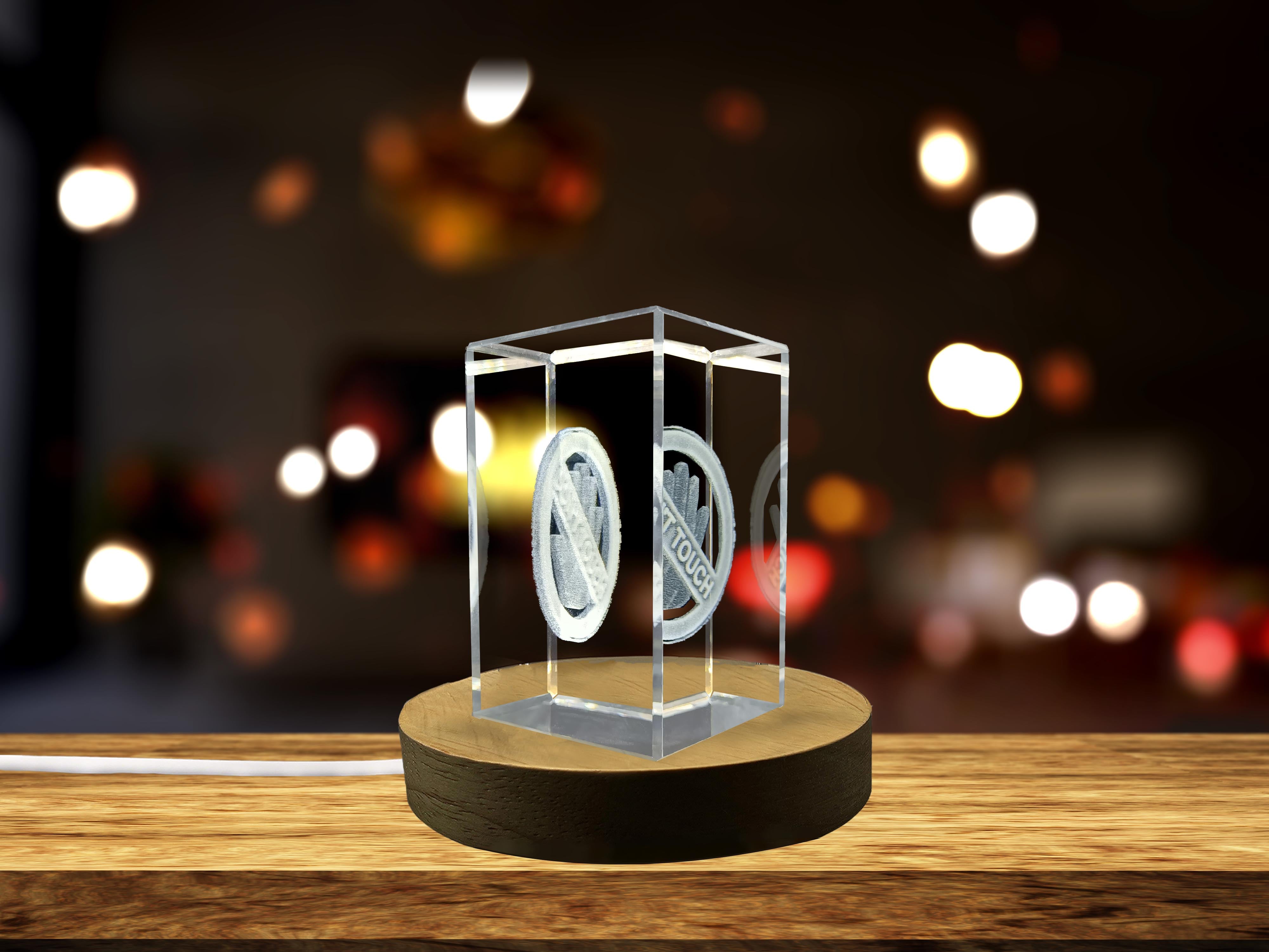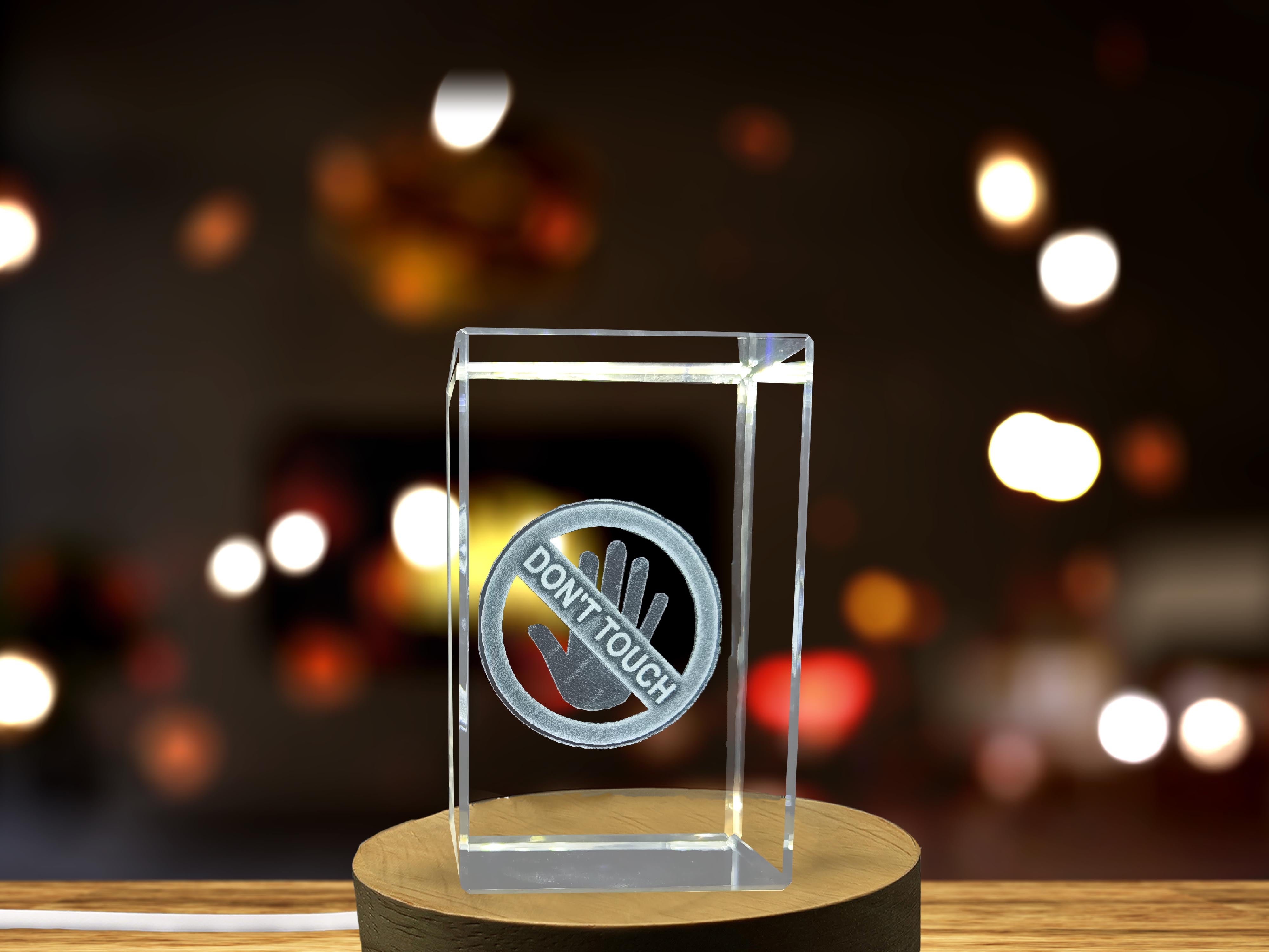 Introducing the exquisite "Don't Touch - Symbolic 3D Engraved Crystal Gift" from the A&B Crystal Collection, an eye-catching piece that encapsulates the importance of personal boundaries and respect for individual space. This captivating crystal sculpture is a unique blend of artistry and significance, perfect for home or office decor.