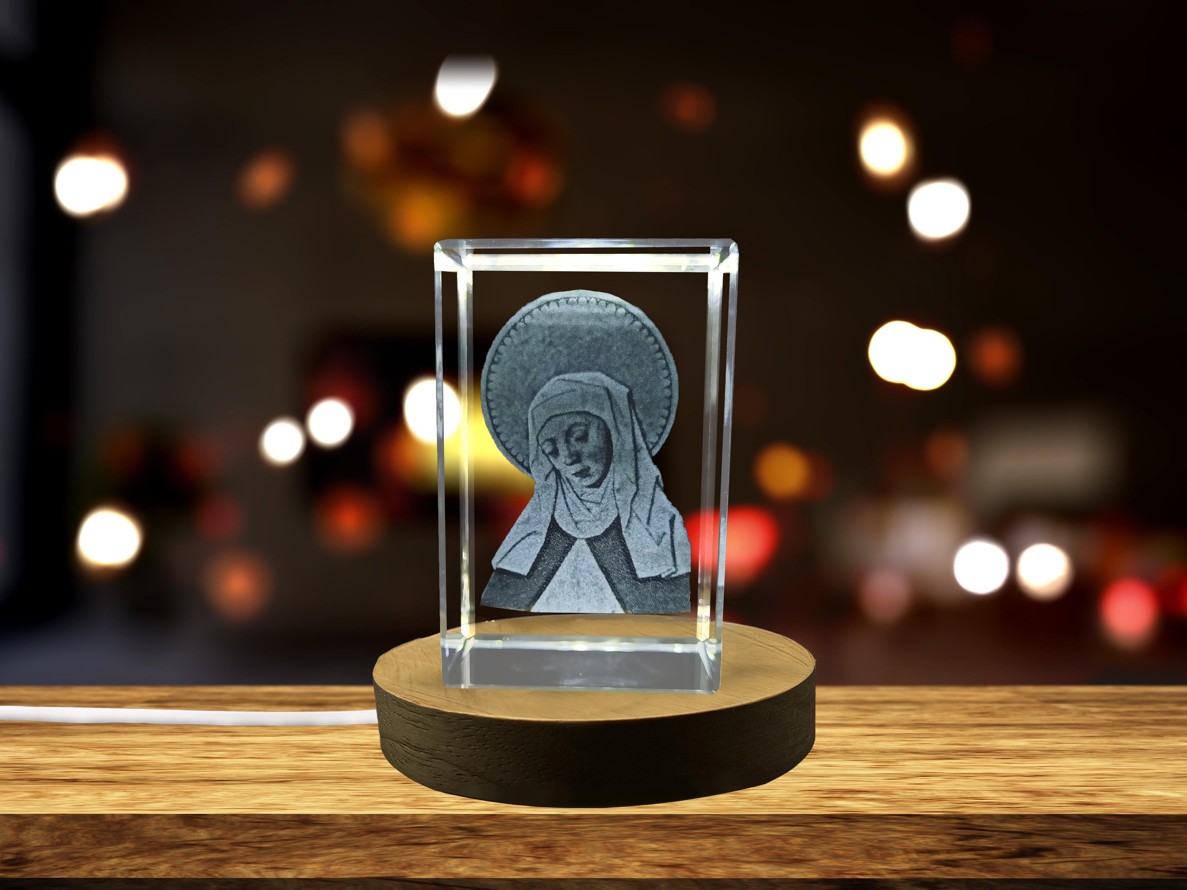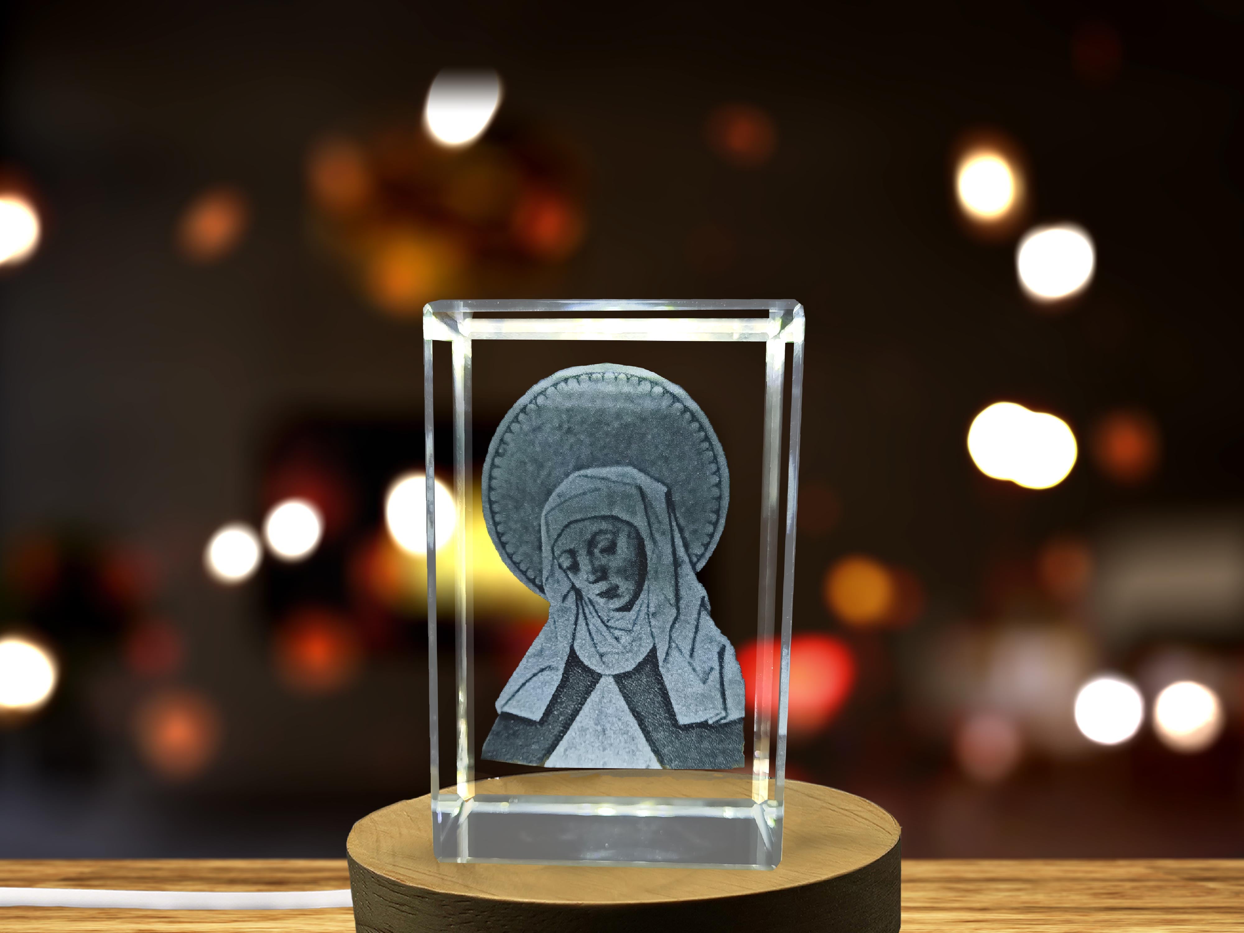 St. Bridget of Sweden 3D Engraved Crystal Recognition Trophy Award with LED Base - Handcrafted Elegance