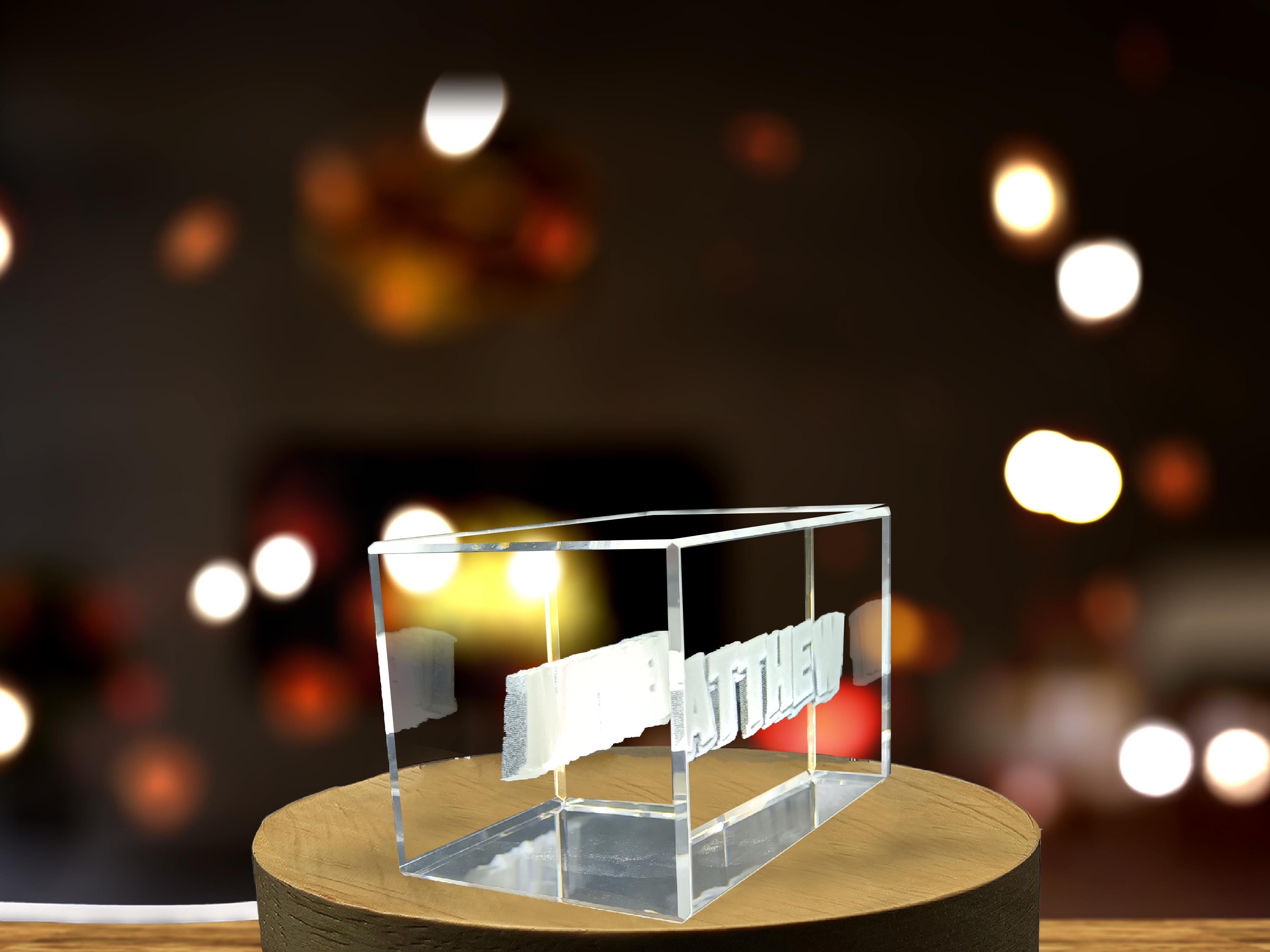 Matthew 3D Engraved Crystal Trophy Award With LED Base - Personalized Recognition Art For Home Décor