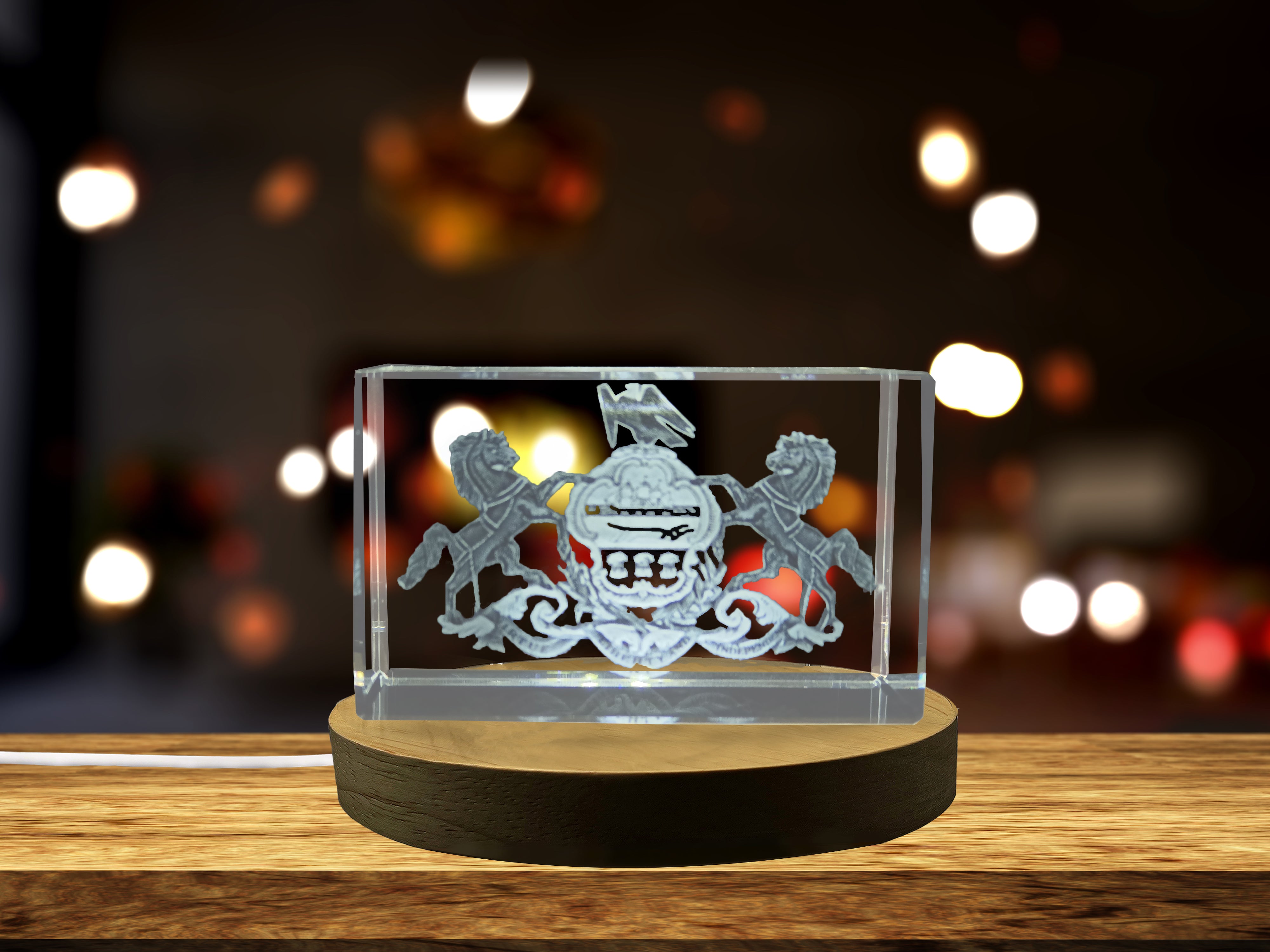 Pennsylvania Coat of Arms 3D Engraved Crystal Award Trophy with LED Base Light - Recognition Gift