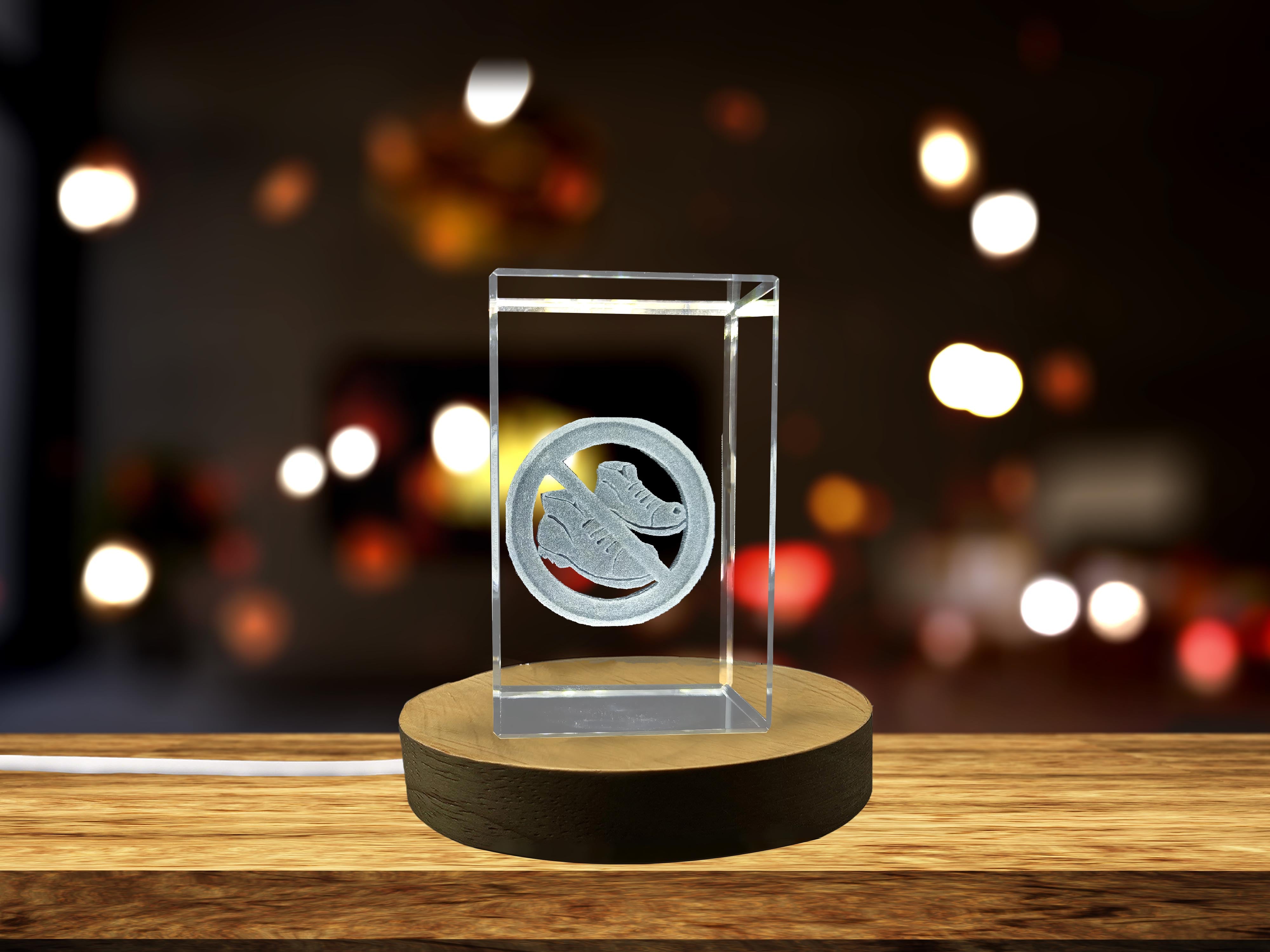 Recognition Shoes Prohibited 3D Engraved Crystal Trophy Award with LED Base - Exquisite Art Gift